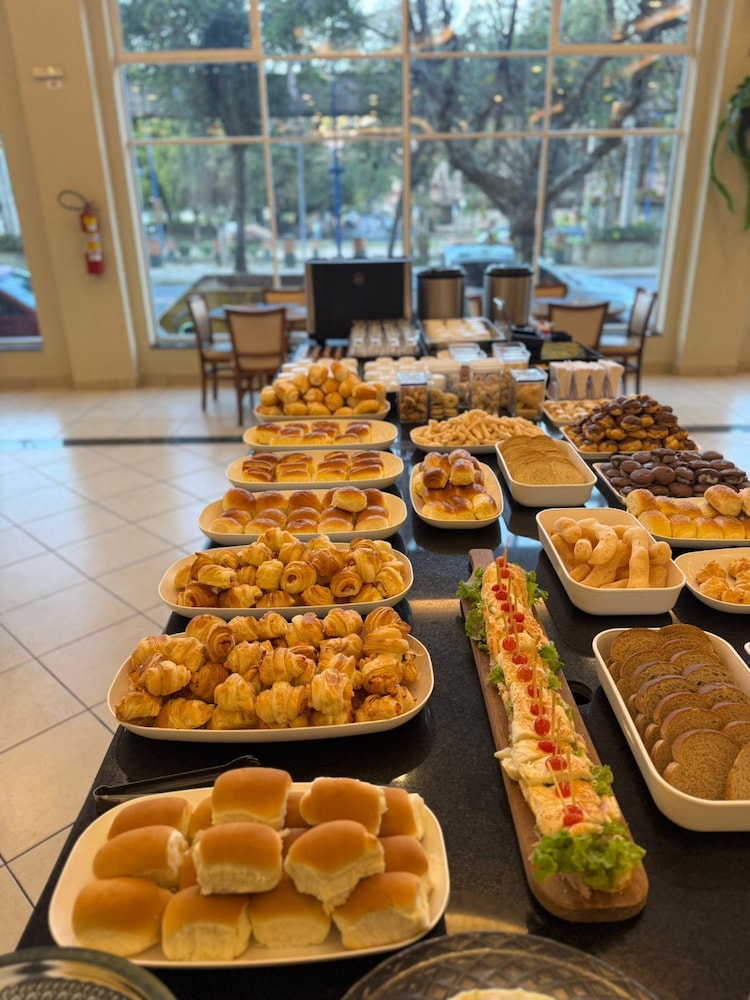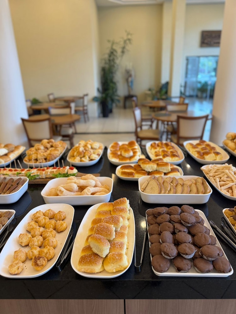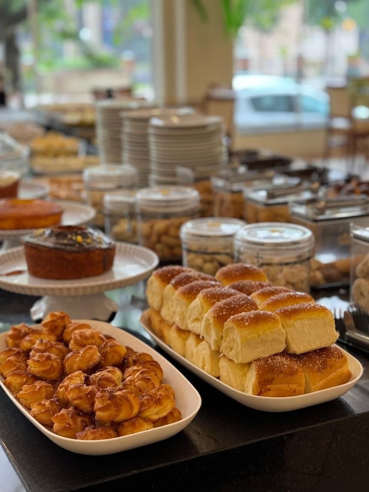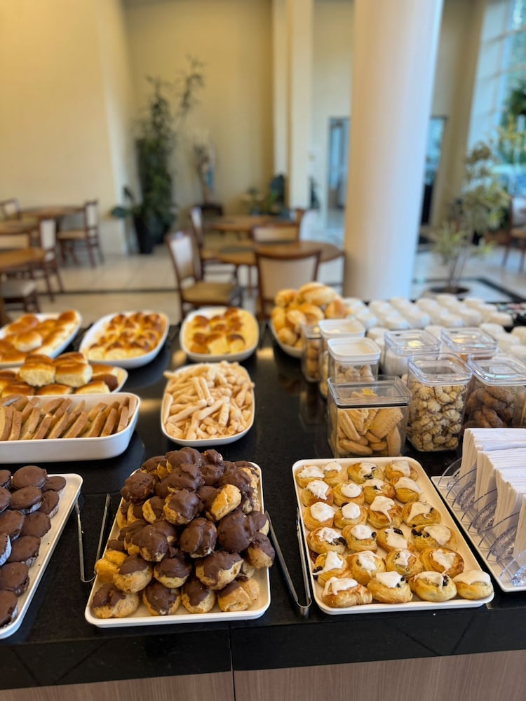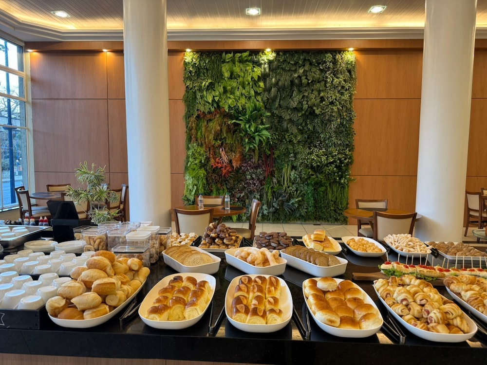 O cardapio do café da manha é variado com funcionarios preststivos. Alguns problemas: quarto sem um edredon ou manta leve; cama sem estabilidade; sem espelho de corpo inteiro; sem lixeira no quarto; telefone sem comunicacao com a portaria; sem servico de atendimento no quarto (agua, suco, etc.); tomada do banheiro sem funcionar; estacionamento fora do hotel (terceirizado). A impressao nao é de um hotel 4 estrelas como anunciado