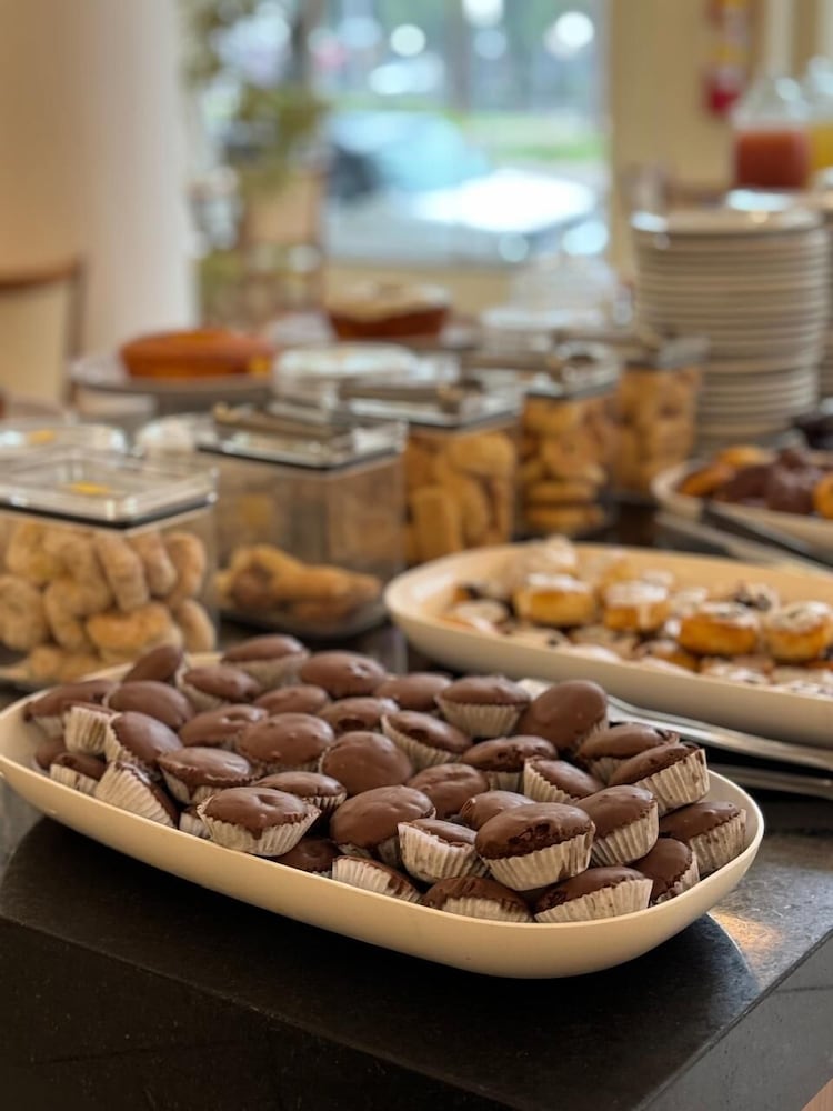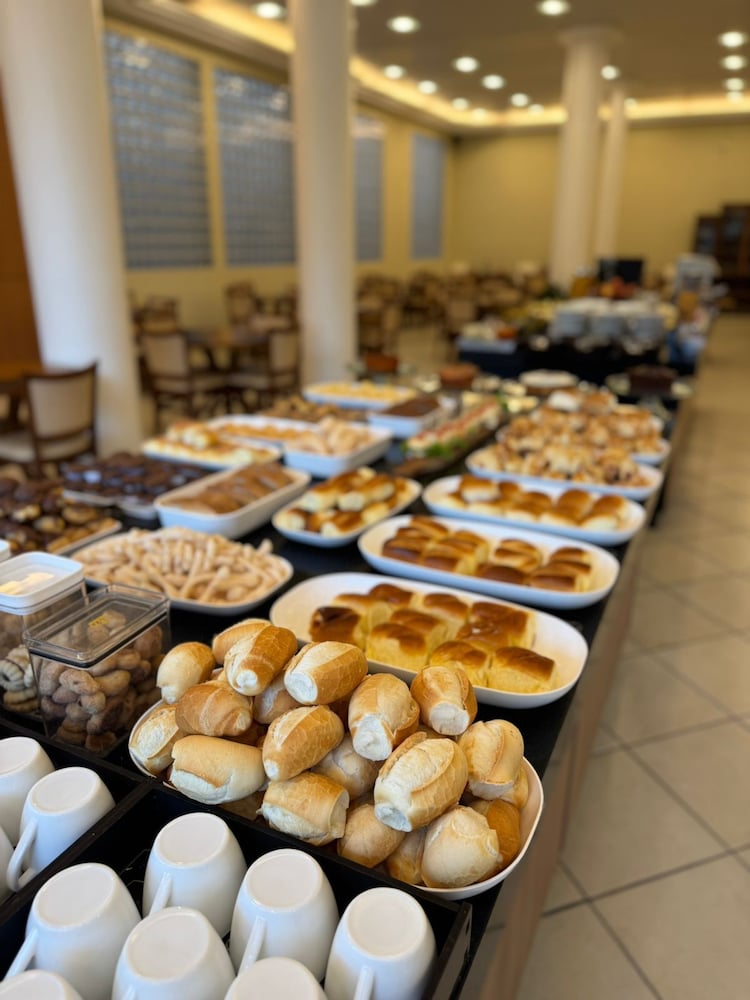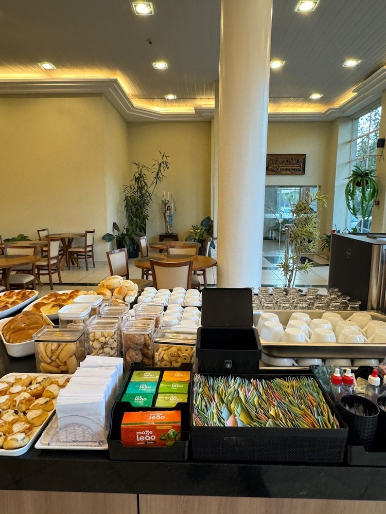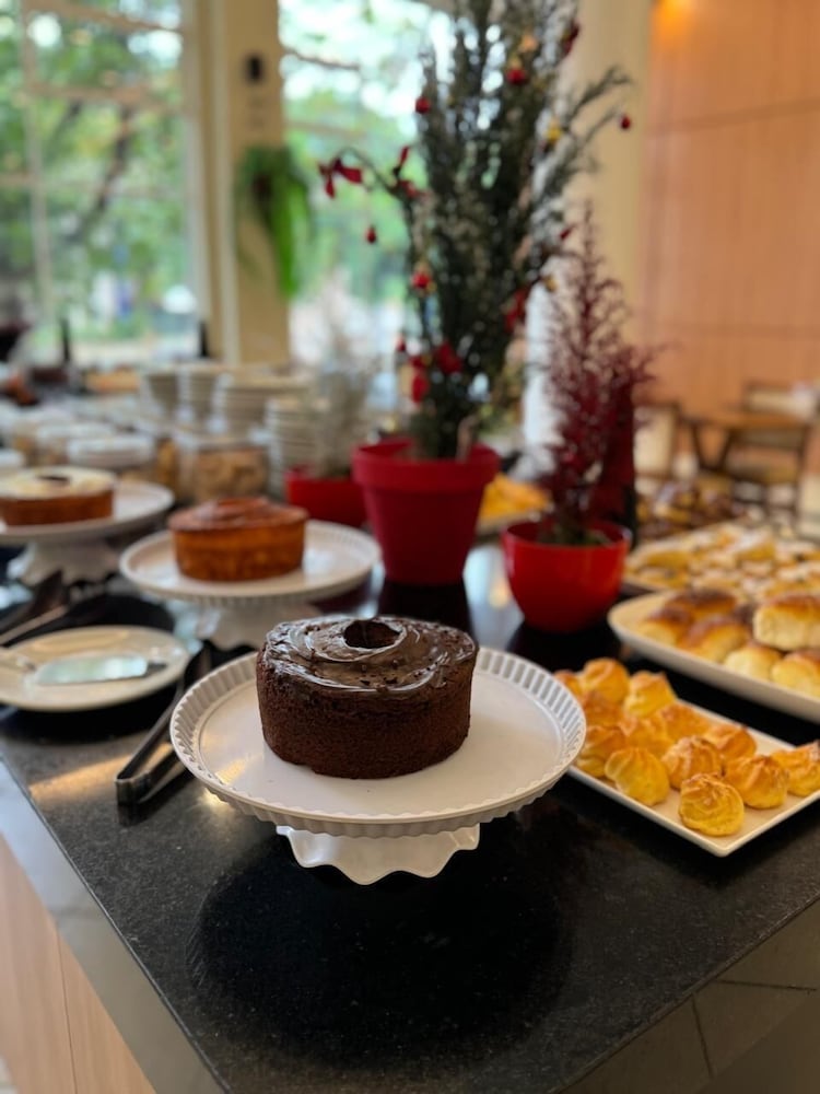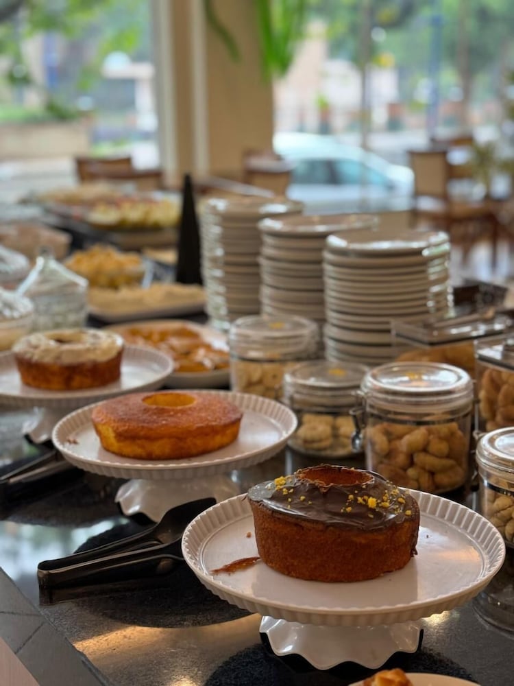 O cardapio do café da manha é variado com funcionarios preststivos. Alguns problemas: quarto sem um edredon ou manta leve; cama sem estabilidade; sem espelho de corpo inteiro; sem lixeira no quarto; telefone sem comunicacao com a portaria; sem servico de atendimento no quarto (agua, suco, etc.); tomada do banheiro sem funcionar; estacionamento fora do hotel (terceirizado). A impressao nao é de um hotel 4 estrelas como anunciado