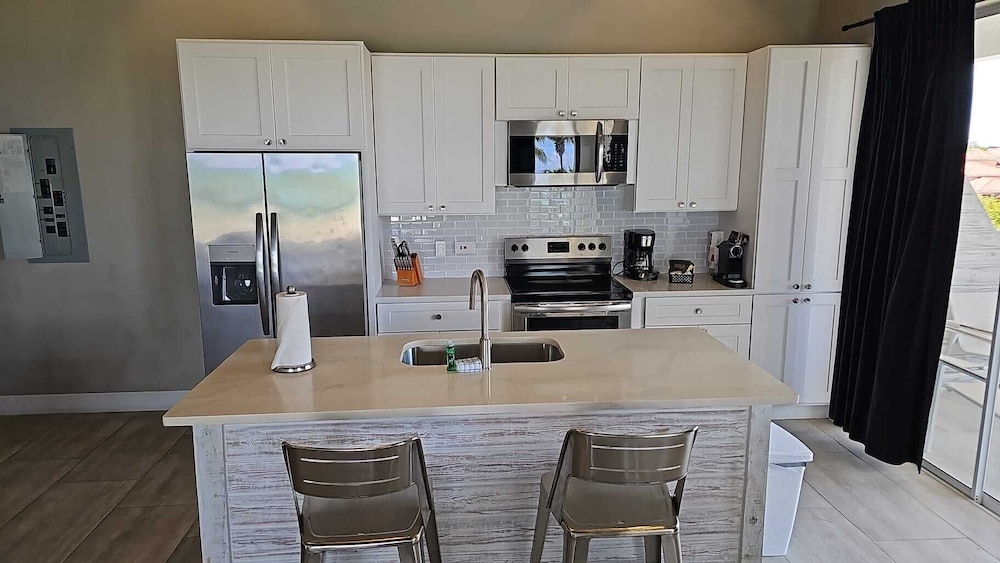 Spacious and clean room/apt, the bed was comfy. I had a room on the first flloor, the pool view at night was treat. The front desk clerk was a amazing she was so gracious (I’m terrible w/names)