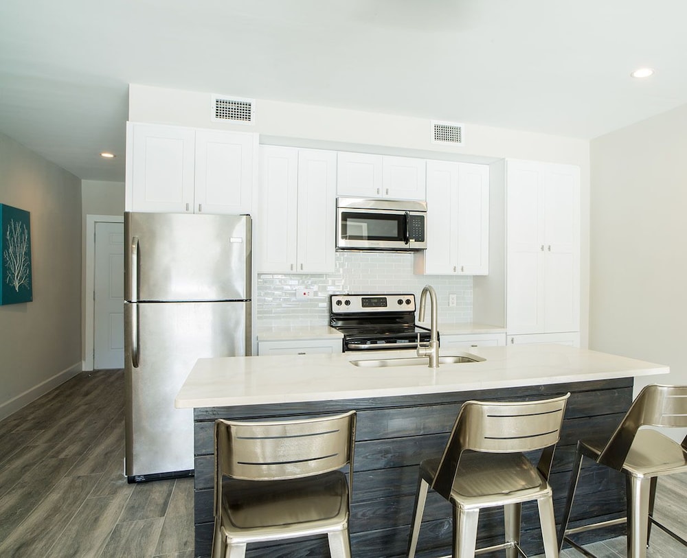 Experience comfort in one of our 12 spacious guestrooms, each equipped with a kitchen featuring full-sized refrigerators and ovens. Enjoy the luxury of your own private balcony or patio, perfect for savoring ocean breezes.