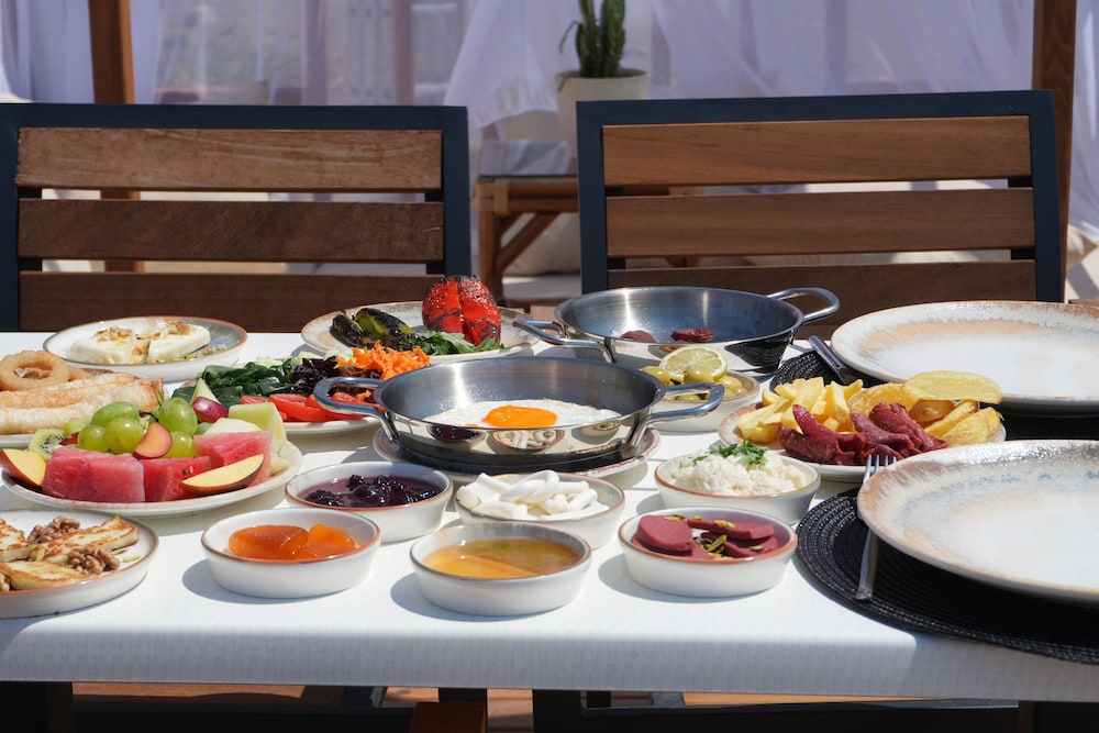 Ayağımın tozu ile yorum yapıyorum..güzel karşılandık oda temizliği ve düzeni gayet iyi kahvaltı bol çeşit memnun kaldık…biz akşam yemeklerimizi dışarıda yedik bununla ilgili fikrim olmadı denemek isterdim…genelde tavsiye ederim…havuz küçük fakat şirin benim için sorun olmadı..Deniz i çok taşlı mutlaka deniz ayakkabısı ile girmenizi tavsiye ederim…menülerde fiyatlar açıkça yazıyor neye ne kadar ödeyeceğinizi biliyorsunuz..bardaki arkadaşlar ve mutfaktaki arkadaşlar gayet anlayışlılar istekleriniz oldu bizi kırmadılar…canlı müzik var hemen yolun kenarında katılıp katılmamak keyfinize kalmış…plaj havlusu ve oda havluları gayet temiz…çevrede alışveriş imkanı market pazar vs var…biz genelde memnun kaldık herkese iyi tariller dilerim.