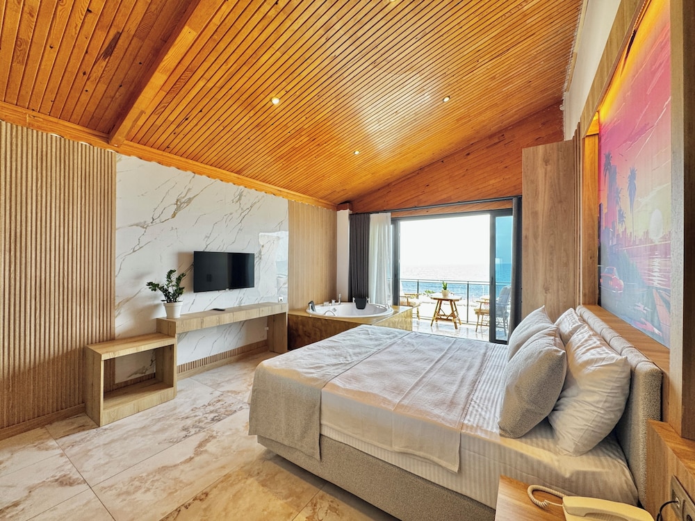 Odalar temizdi, çalışanlar gayet güler yüzlü (Restoran çalışanları hariç), Havuz küçük ama keyifliydi akşam 7 den sonra kapanıyor olması biraz iyi biraz kötü. Havuz başı odalar için yapılmış olsa gerek. Denizi taşlı yani yüzmek için farklı yerlere gitmemiz gerekti. Genel olarak güzel ve tercih edilebilir bir otel.