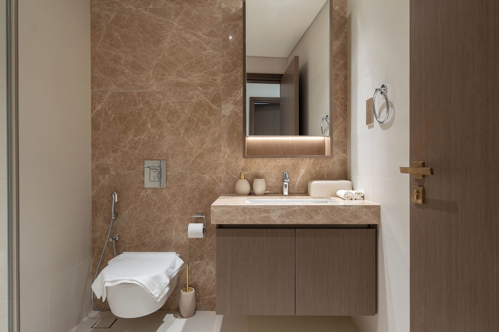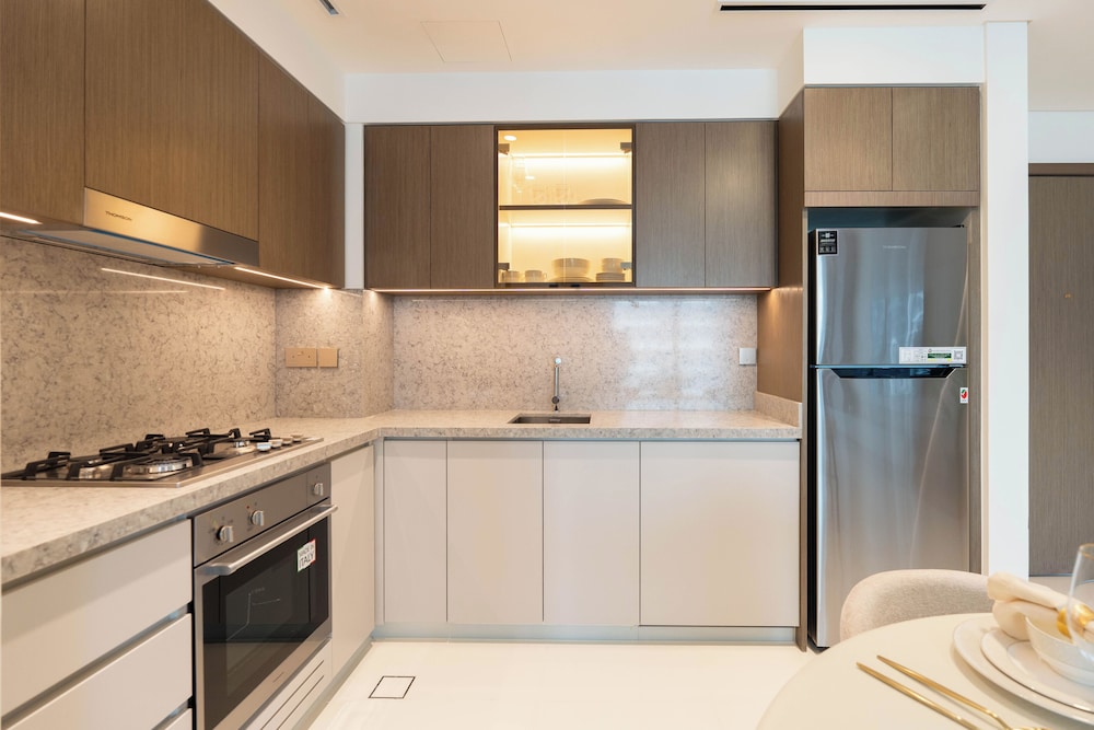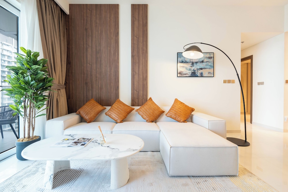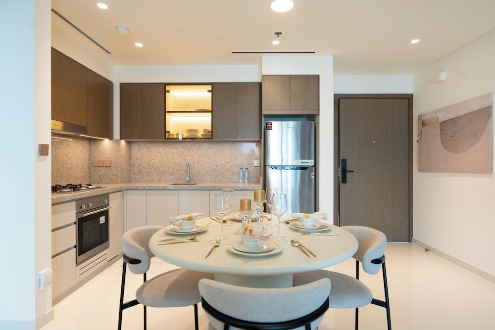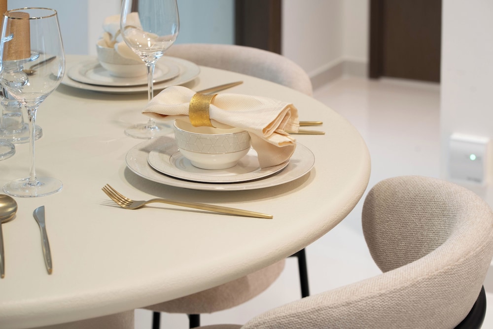Unwind in our elegantly appointed apartments featuring a memory foam bed and a private balcony, ensuring a restful night's sleep and spectacular views of the Dubai skyline.