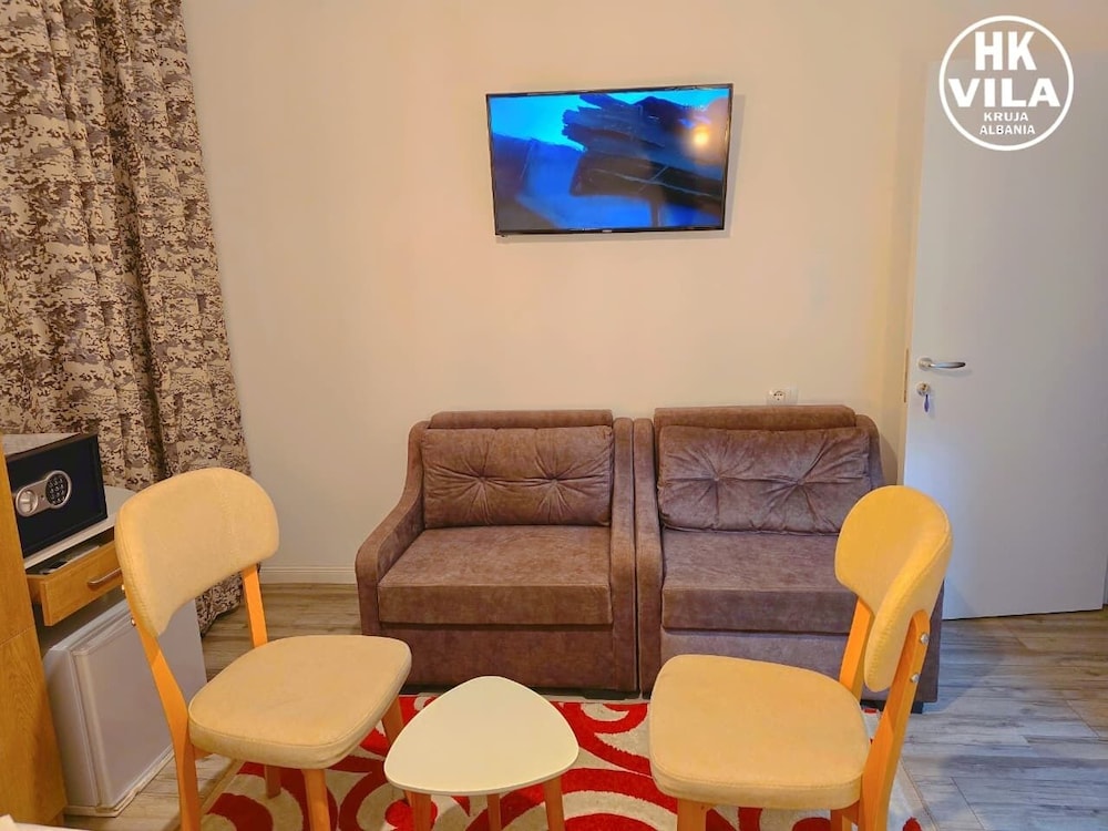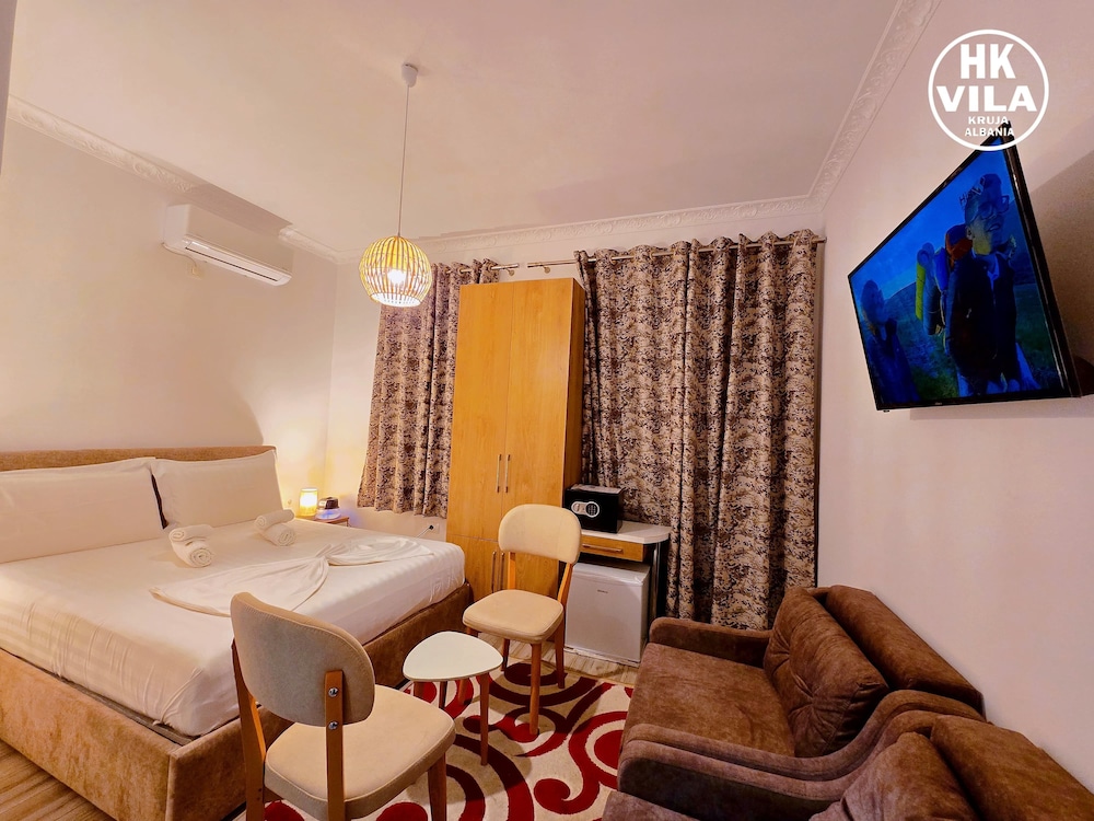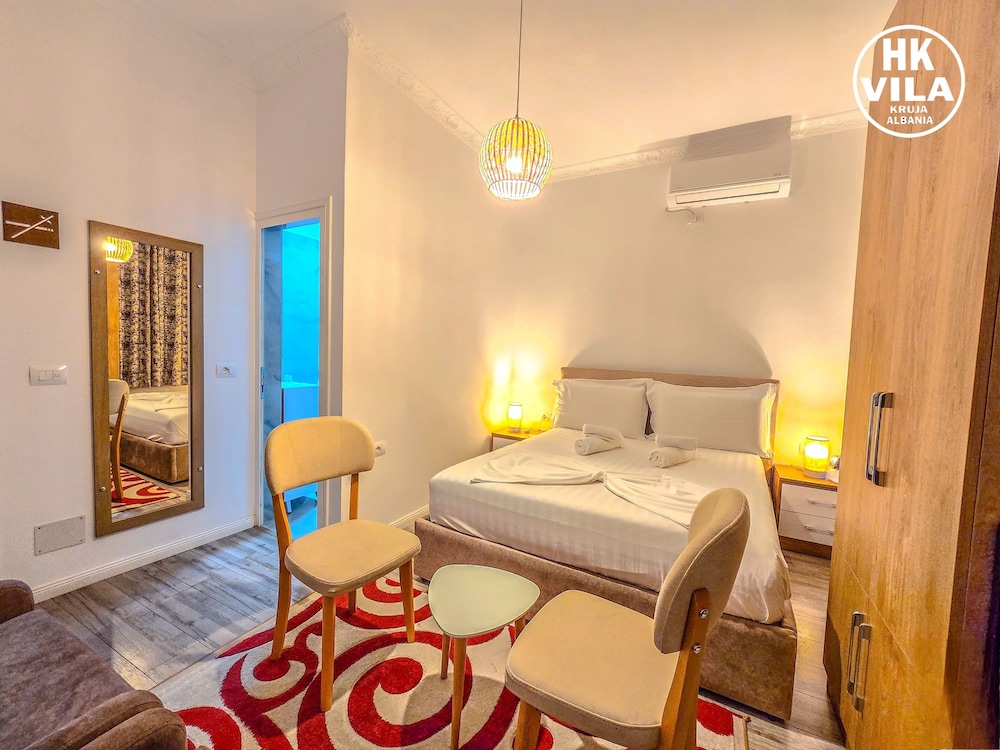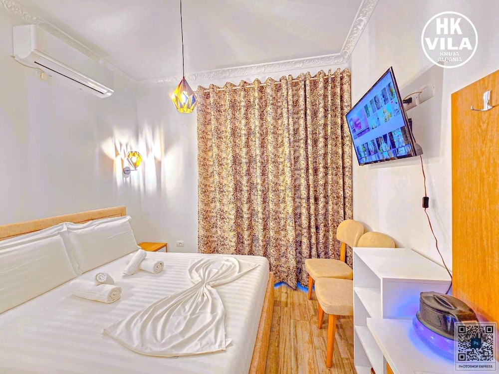 We have a great stay at Vila HK. Very nice clean rooms, comfortable beds. Delfinitely the best accomodation we had in Albania. Hotel is just in the center of Kruje, very near to bus stop, Old Bazar, castle, restaurants and shops. Excellent local breakfast. Soni was very helpful, recommended super inexpensive restaurant for dinner and arrange a trip to mountains for us. Thank you!