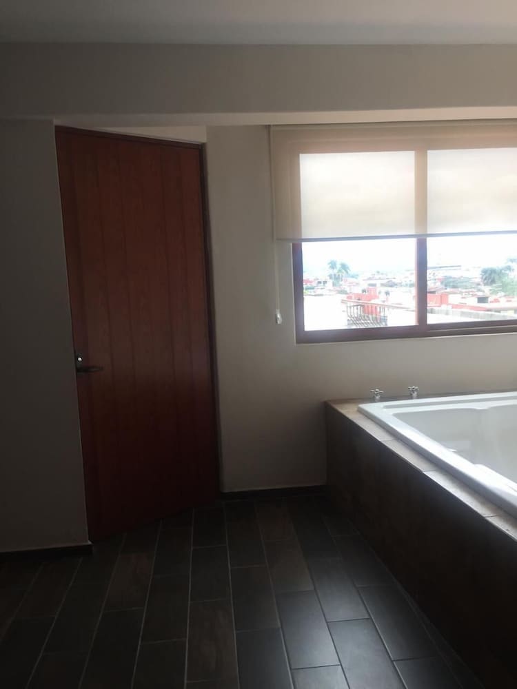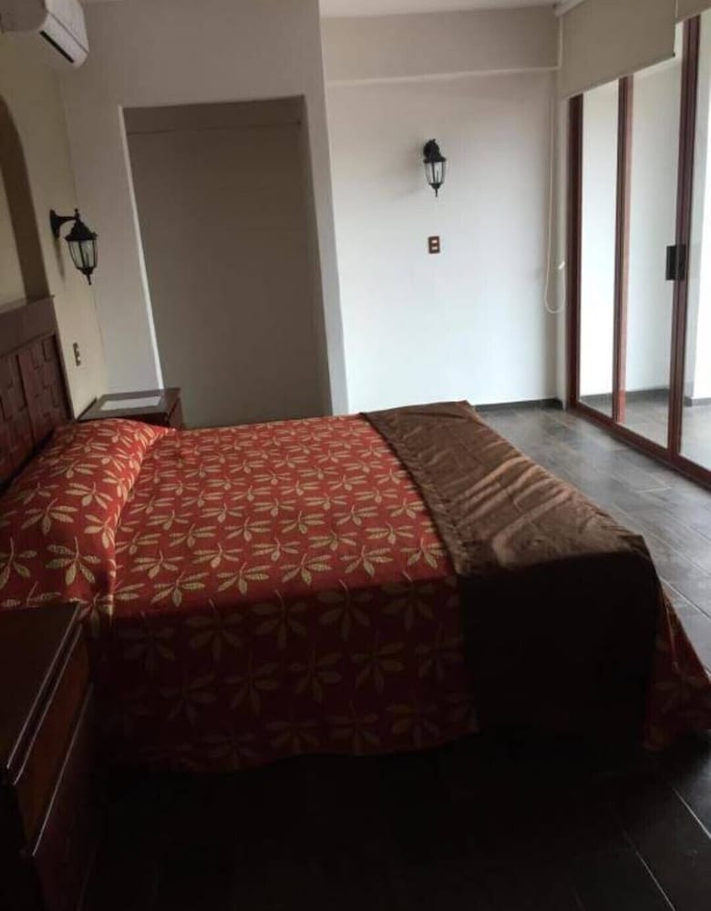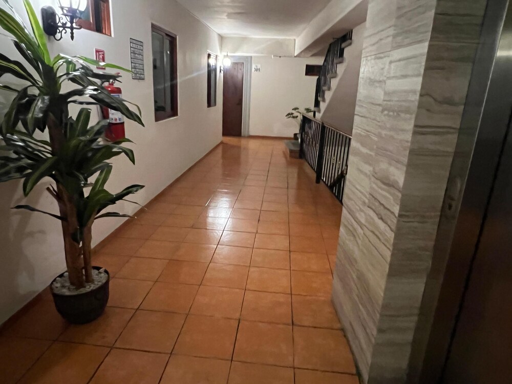 El hotel es viejo, sin mantenimiento. Las habitaciones con paredes llenas de humedad; los colchones viejos e incómodos; no hay en donde colocar tu ropa y el dizque clóset no tiene tubo; las almohadas horribles; el Internet falla todo el tiempo; el estacionamiento tan descuidado que lo adorna con un inodoro viejo aventado en una esquina; las toallas de baño tan ásperas como lijas; iluminación precaria en las habitaciones y nula en las escaleras; elevador viejo y lento, da miedo que falle. La fotos de la fachada no concuerda con la realidad, es publicidad engañosa, las chapas se atoran y el gerente dice que es culpa de los clientes. Lo rescatable, el baño, la presión en la regadera y temperatura excelente y la cocinera amable y guisa muy rico.