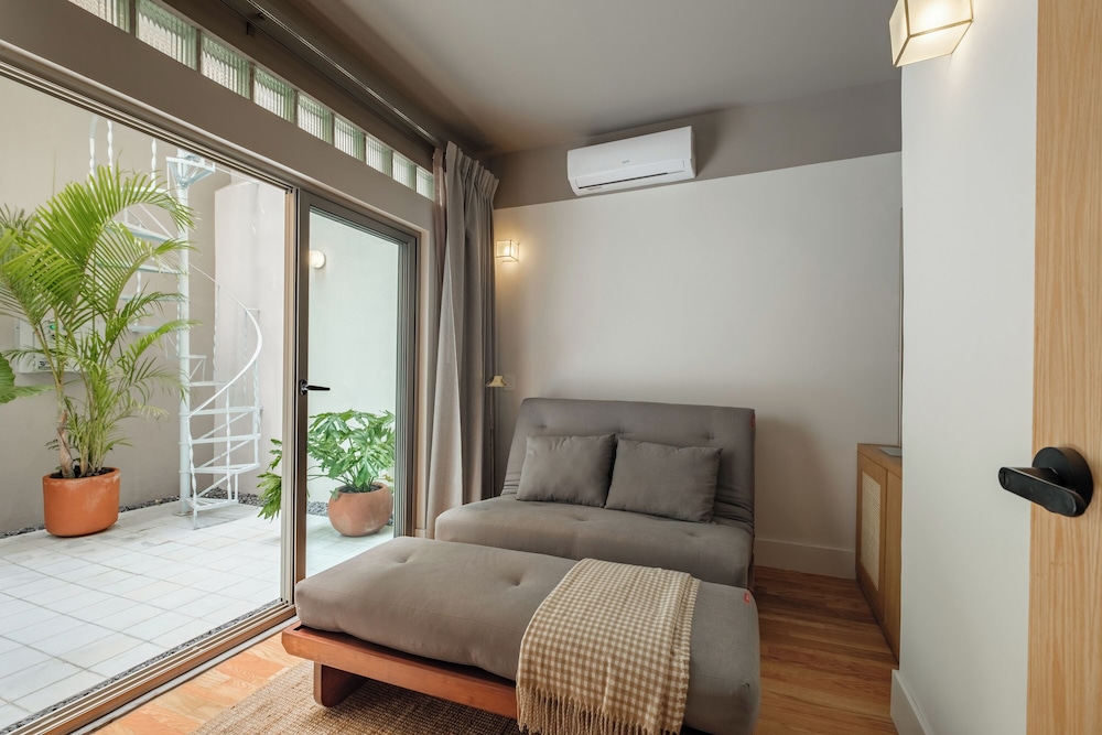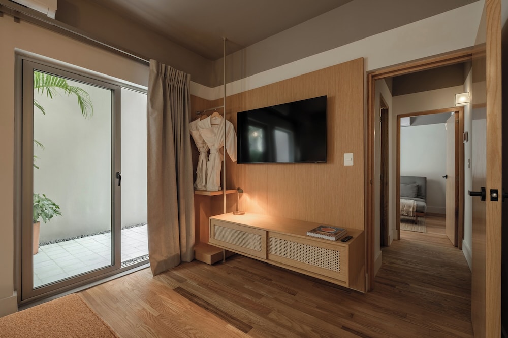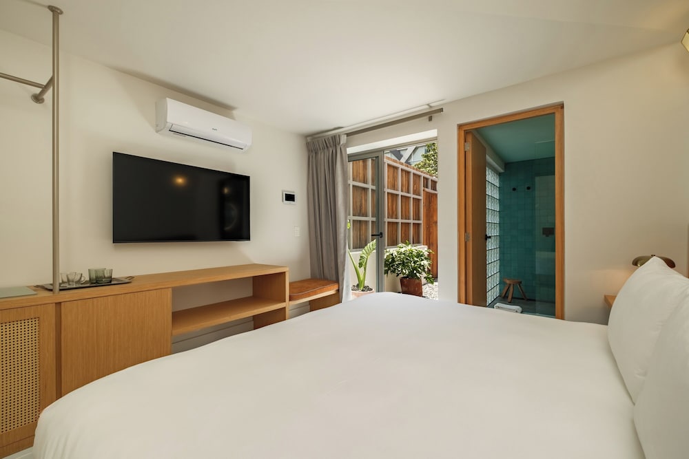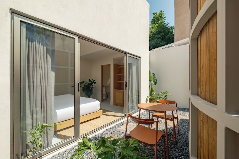 New hotel! Rooms and property are beautiful. Staff is incredibly kind and helpful. I found the ability to communicate via WhatsApp very convenient for questions. Hotel is gated and has cameras - felt secure. Location is amazing - near restaurants and shops but also on a more quiet street. My only critique is for the bathroom. There's only one small window for ventilation - no fan. Our room got very humid - to the point that the sheets and our clothes felt damp. Dehumidier function on A/C did not help. I also would have liked a lock on the patio door. It's not necessary - but better for peace of mind. Other than that - great stay!