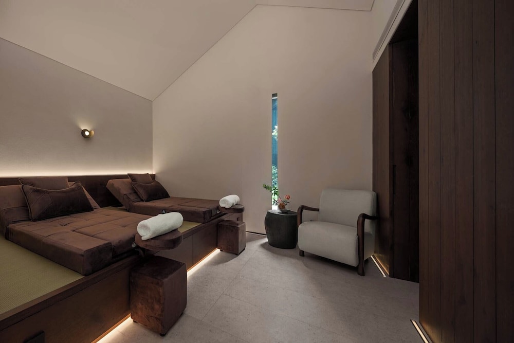 Indulgent Spa & Recreation: Unwind at our full-service spa offering revitalizing body treatments, a sauna, and a 24-hour fitness center. Splash into our seasonal outdoor pool, or take advantage of our concierge services for the ultimate pampering experience.