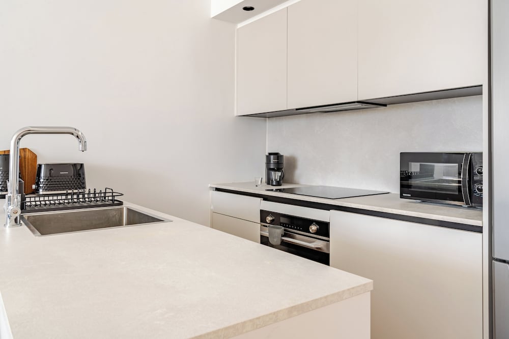 Our spacious guestrooms feature modern kitchens equipped with full-sized refrigerators and ovens, allowing you to prepare your meals while enjoying a private balcony with stunning views.