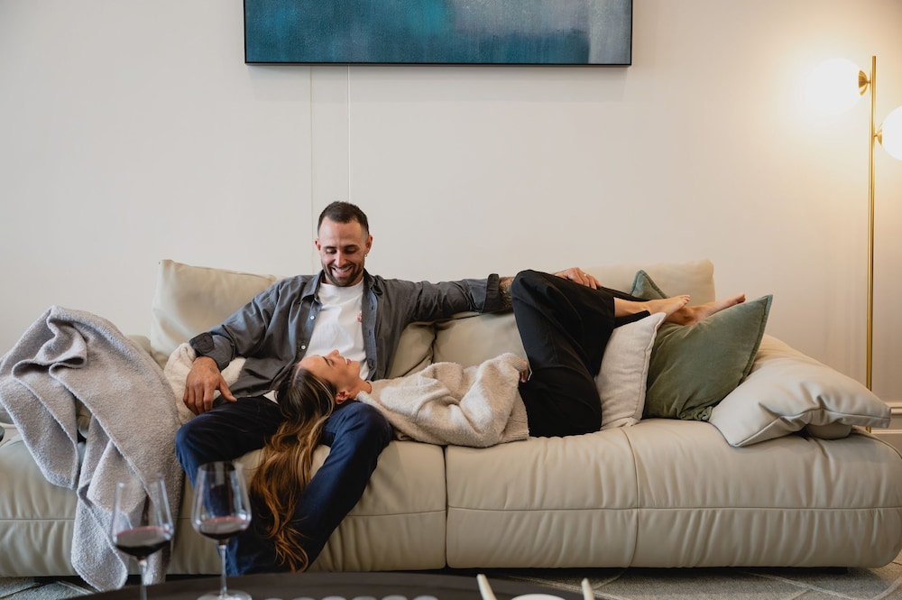 Relax in your air-conditioned apartment featuring plush Tempur-Pedic beds draped in Egyptian cotton sheets. Enjoy expansive amenities such as a minibar, Smart TV, and complimentary Wi-Fi for a seamless stay.
