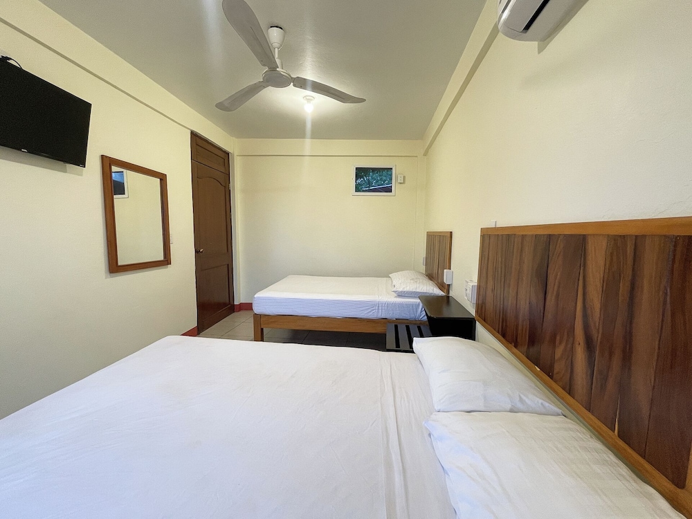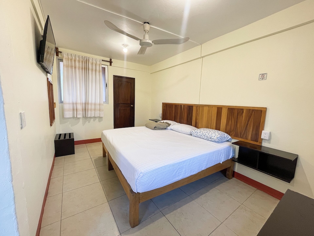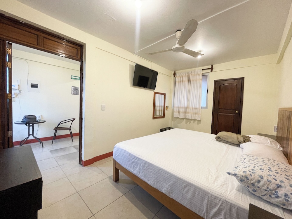 The room was clean and it was on the main strip. The street was busy when we stayed, it was a fiesta. The bathroom was very small, the toilet was washed when you showered. The price was right.