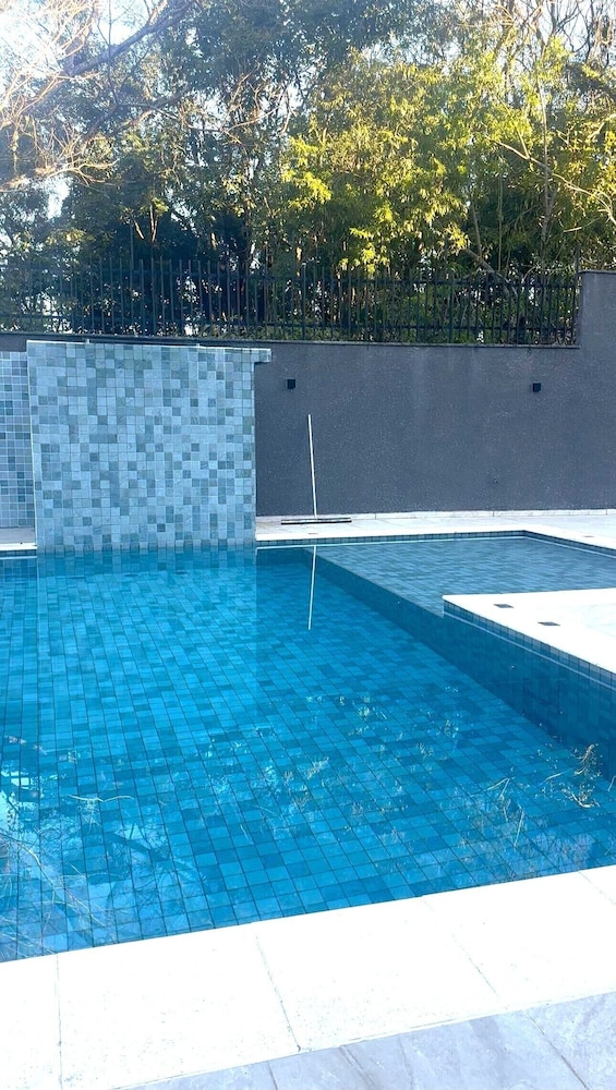 A piscina estava ótima, faltou somente ligar a cascata e passar a rede devido aos mosquitos.