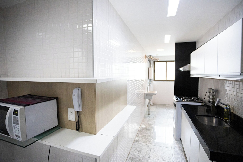 Excelente!!! Apto grande, arejado, bem equipado. Atendimento muito bom do pessoal de staff do Flat. Vaga de garagem coberta (um pouco apertada, mas funciona bem). Localização excelente é uma bela vista para o mar.. recomendo!