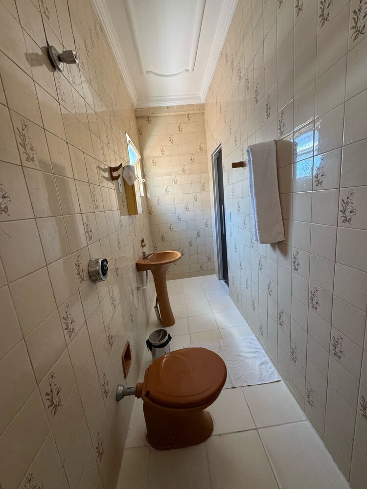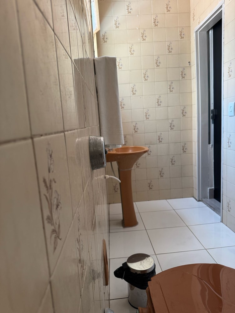 Banheiro ruim, sem box, mas limpo.