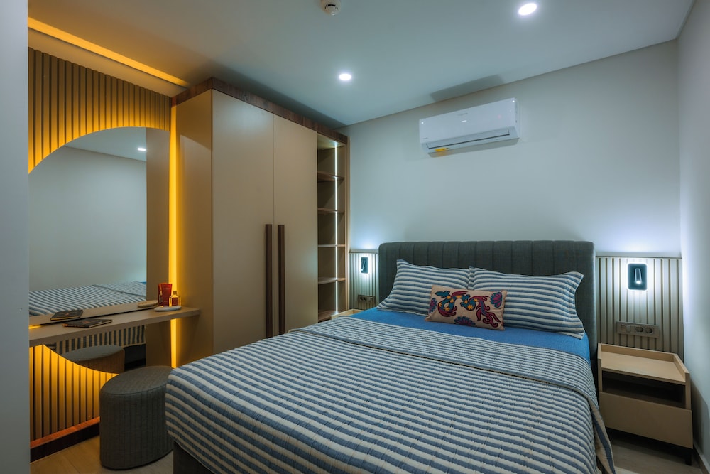 Stay in one of our 45 uniquely designed guestrooms, featuring private balconies, minibars, and espresso makers for your comfort. Each room is equipped with a 55-inch Smart TV for your entertainment and complimentary Wi-Fi to keep you connected during your stay.