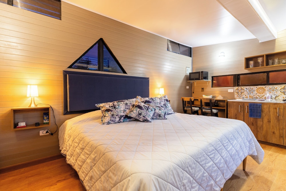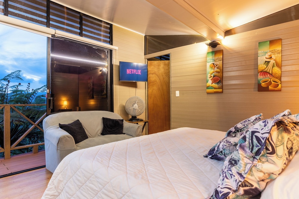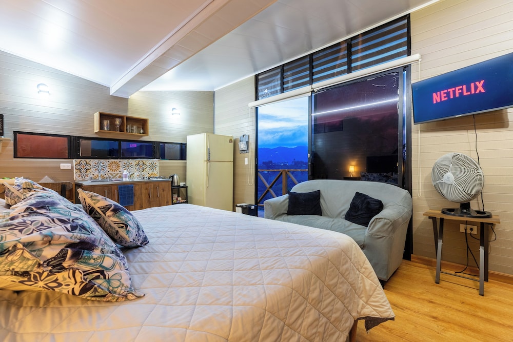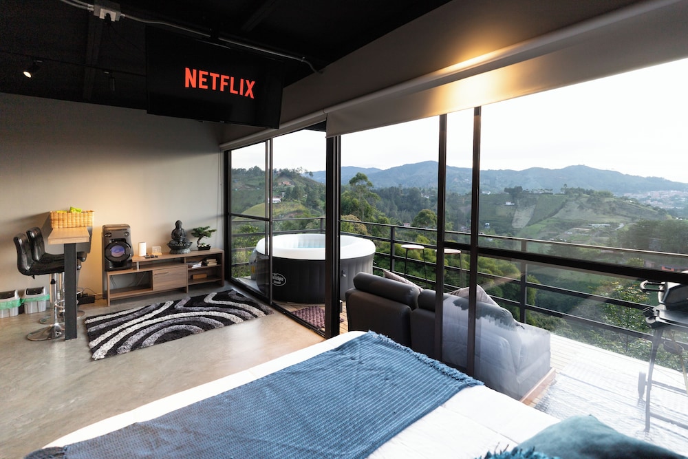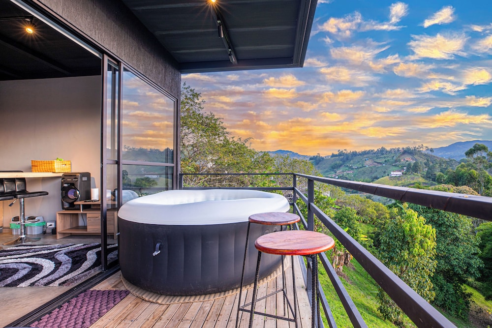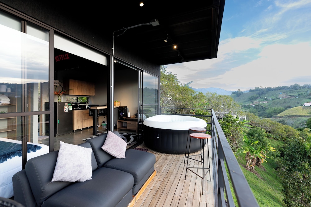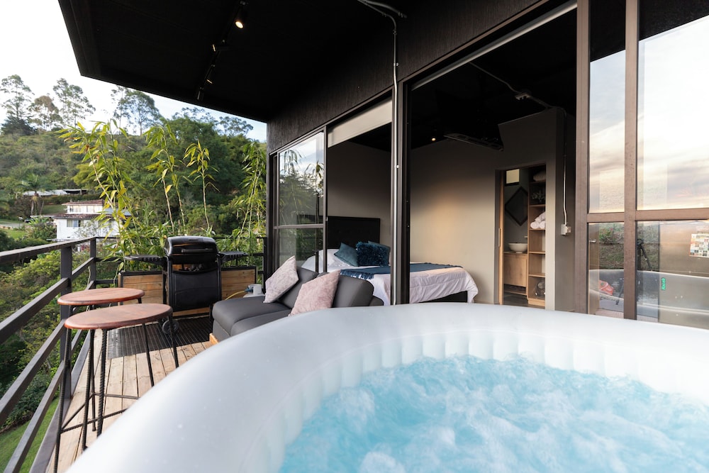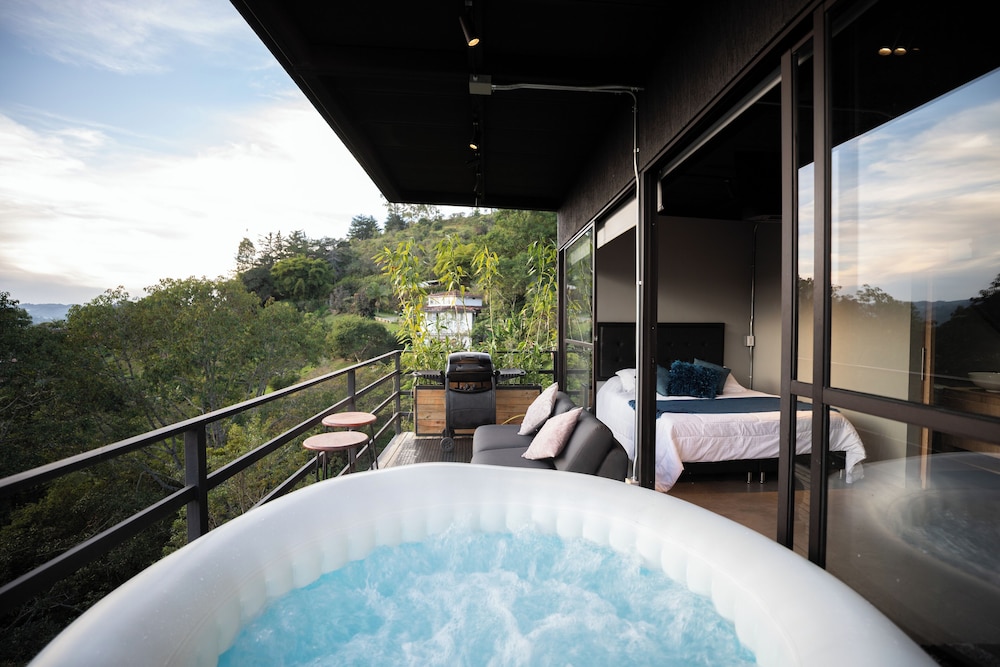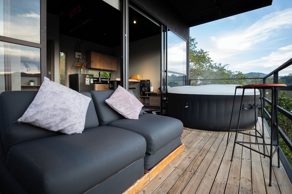 Experience the charm of our four thoughtfully designed guest rooms, each featuring private hot tubs and Smart TVs. Enjoy your morning coffee on spacious furnished balconies or patios, with views that inspire relaxation.