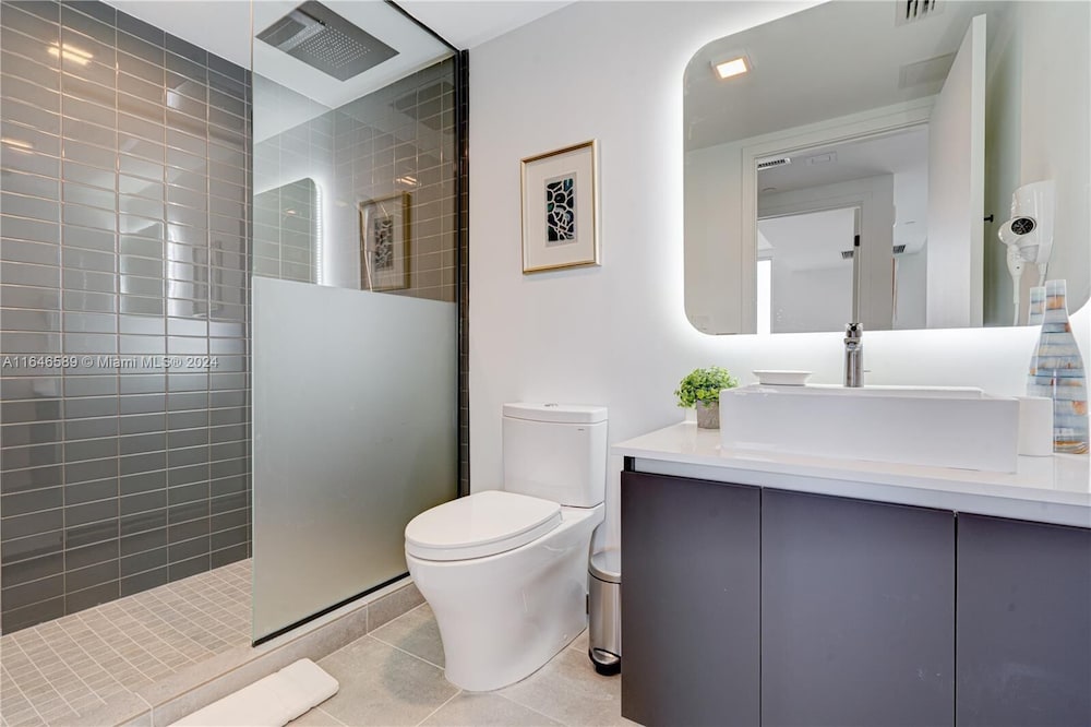 Property is just about 7 minutes walk to bayside marketplace and 10 minutes walk from Brightline train station. Easy walk, flat surface. Manageable even for seniors