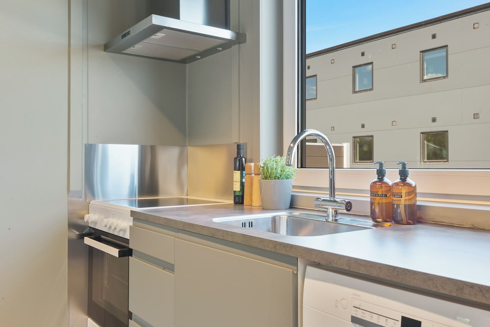 Meget nem selv-tjekind med kode. Ingen personale på stedet. Både værelse og fasciliteter er meget pæne og rene.