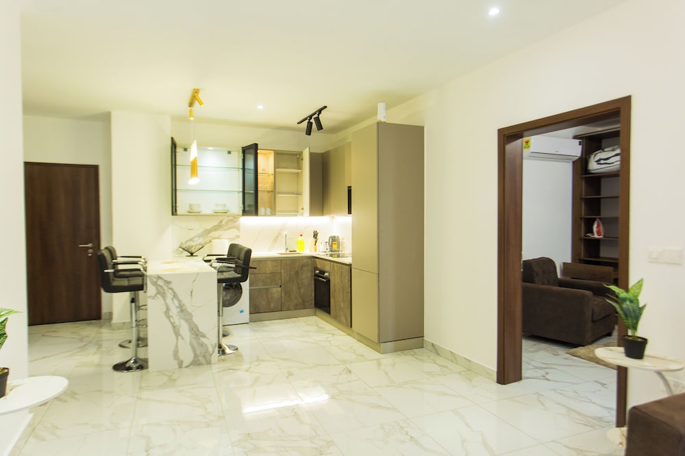 Choose from 50 elegantly designed air-conditioned rooms, each featuring kitchenette facilities with full-sized refrigerators and stovetops. Relax on your private balcony while indulging in entertainment on your 55-inch Smart television.