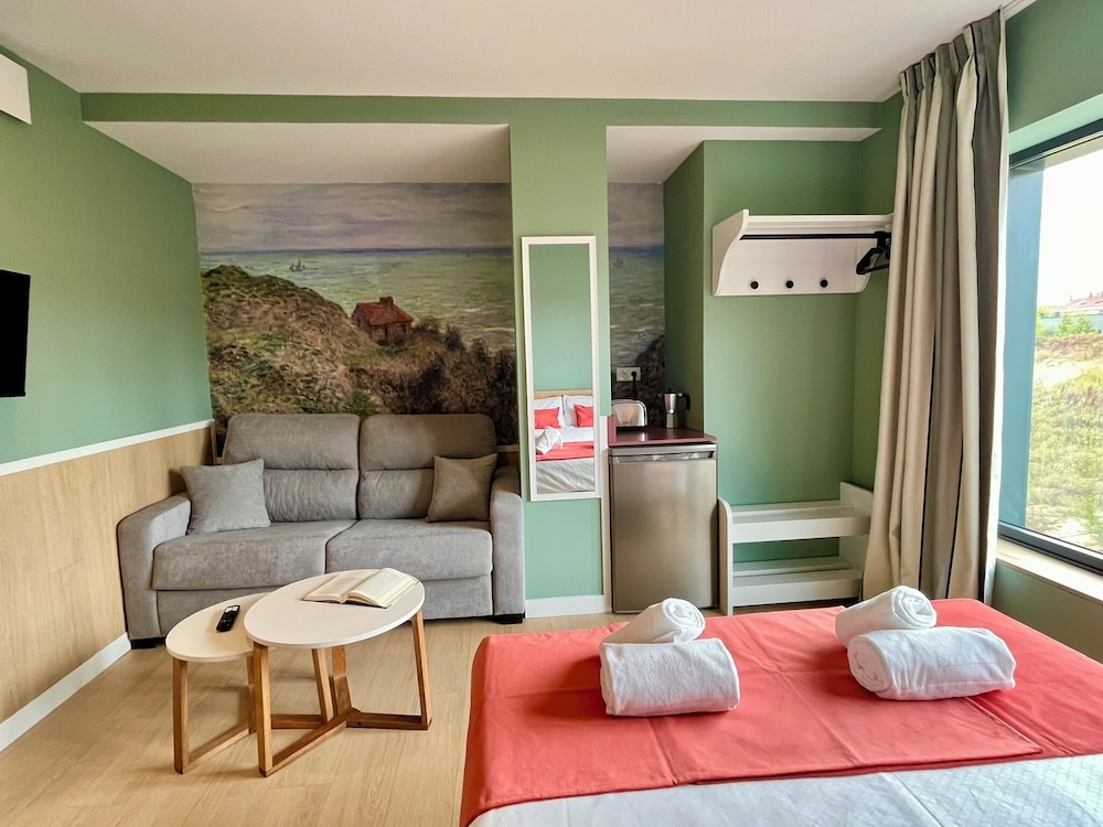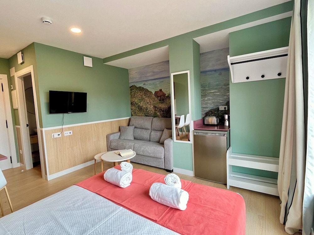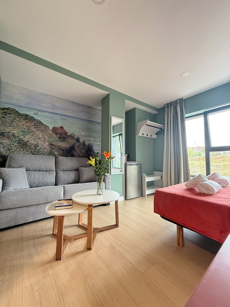 Escape to the tranquil Luxury Singular Pensión Estudios Blue, where comfort meets convenience just a stone's throw from Parque para Cans do Milladoiro.