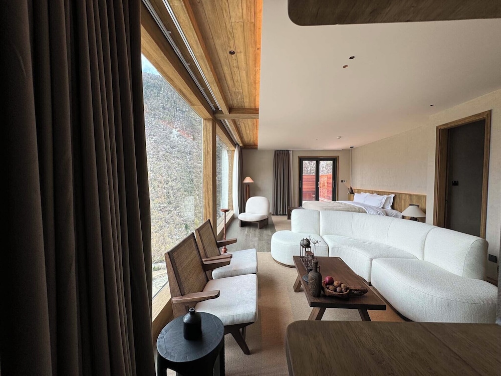 Escape to the serene setting of Siguniang Mountain Star Moon Cliff Hotel, nestled within a breathtaking national park.