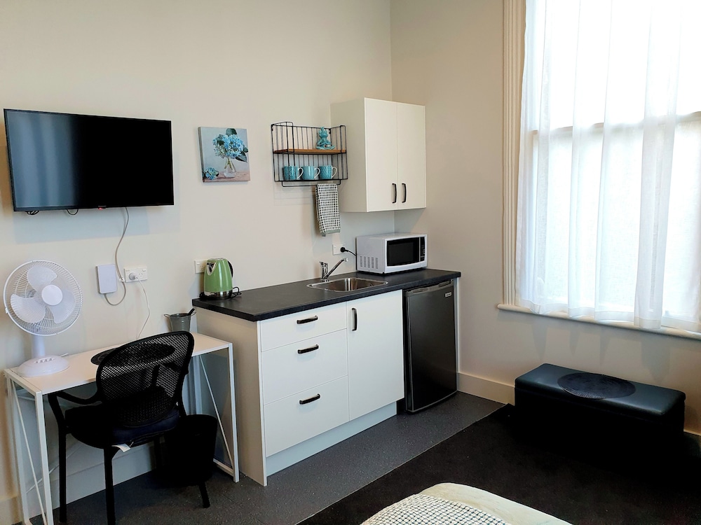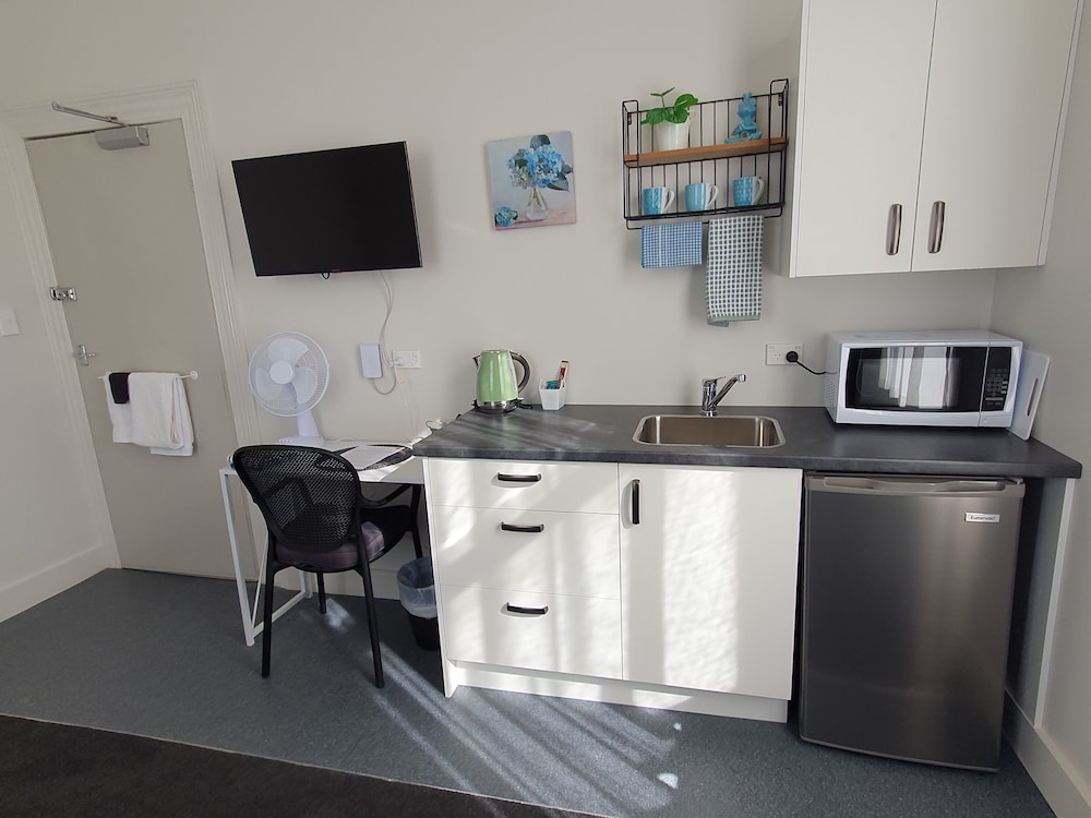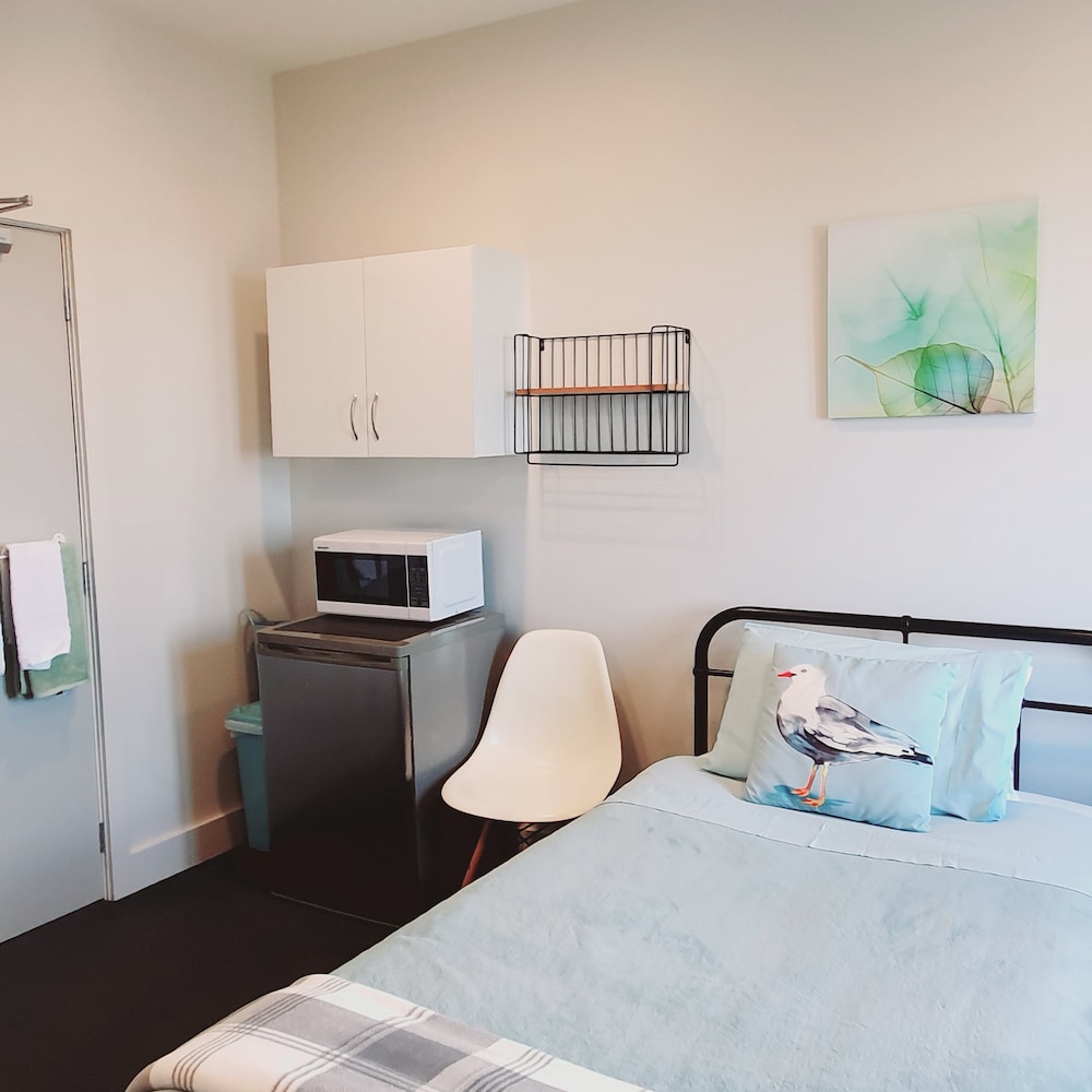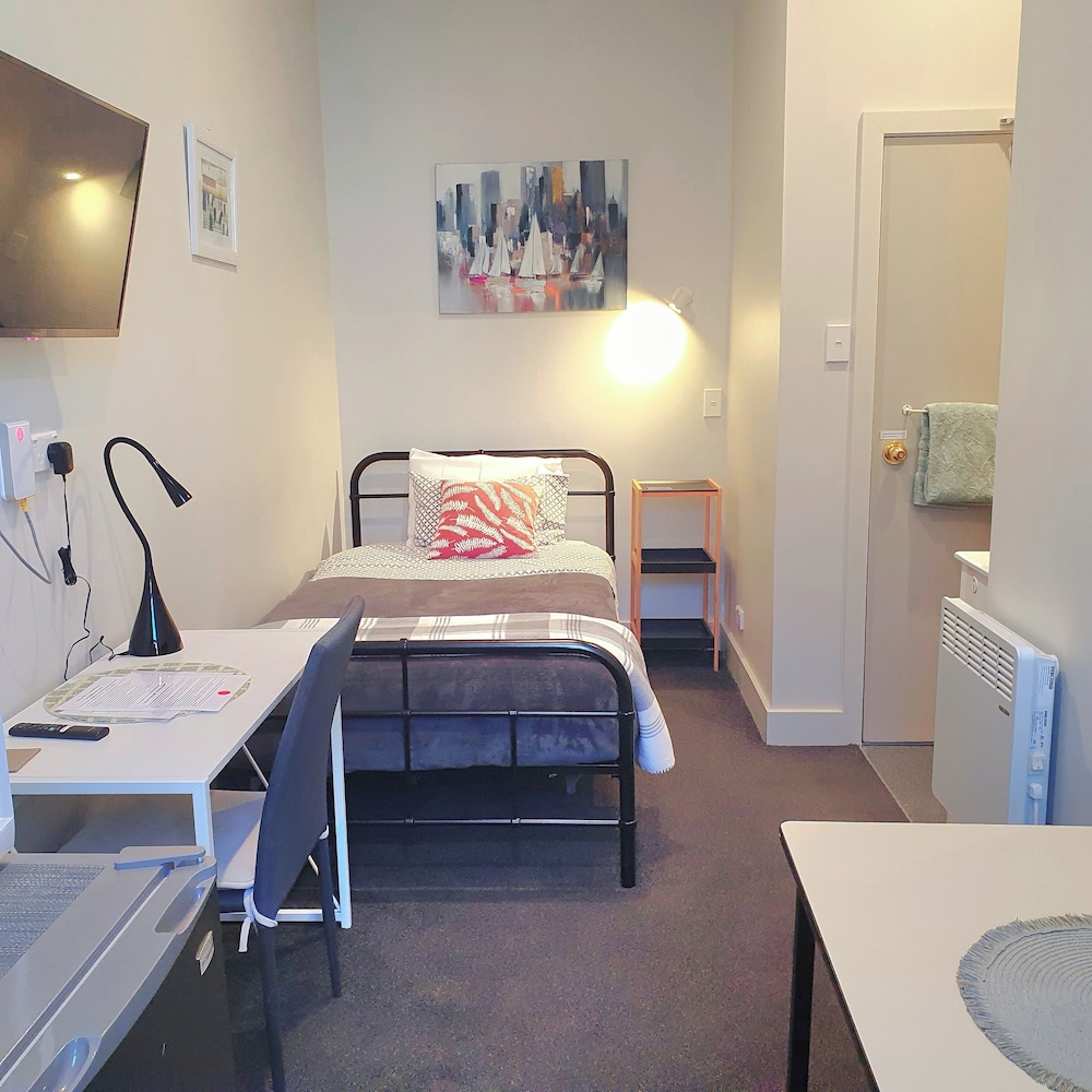 Large single room. Very comfy bed. Lovely sunny lounge with view over central city. Self help kitchen with basic food and drinks supplied was great. Practical and enjoyable. Will book again
