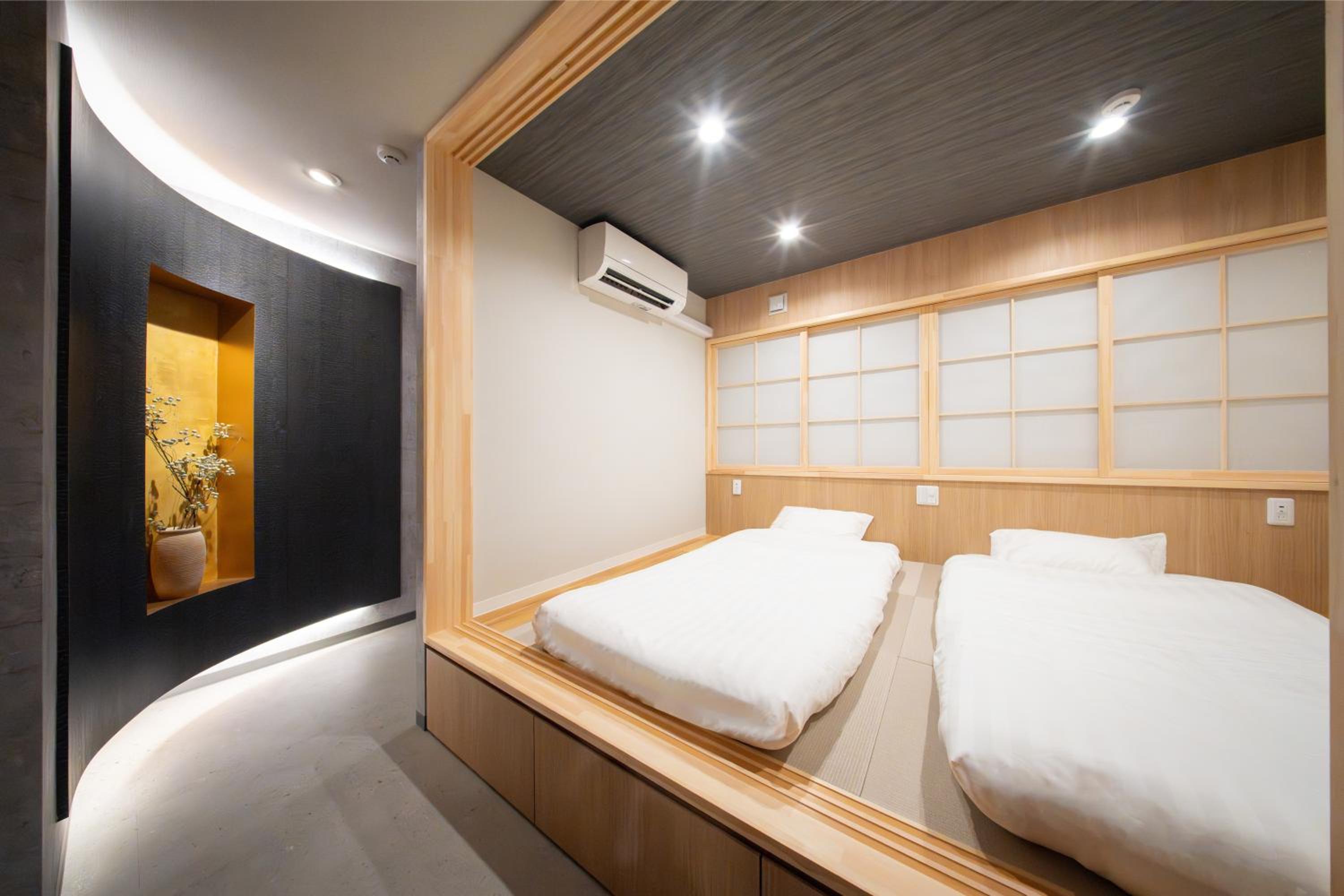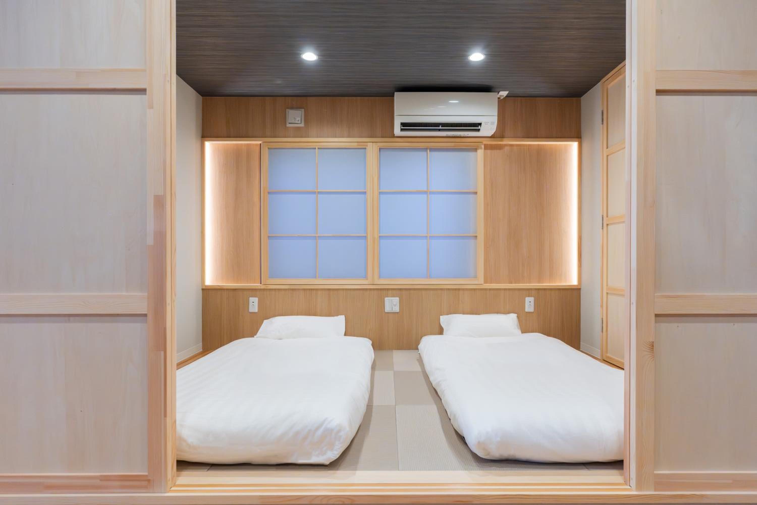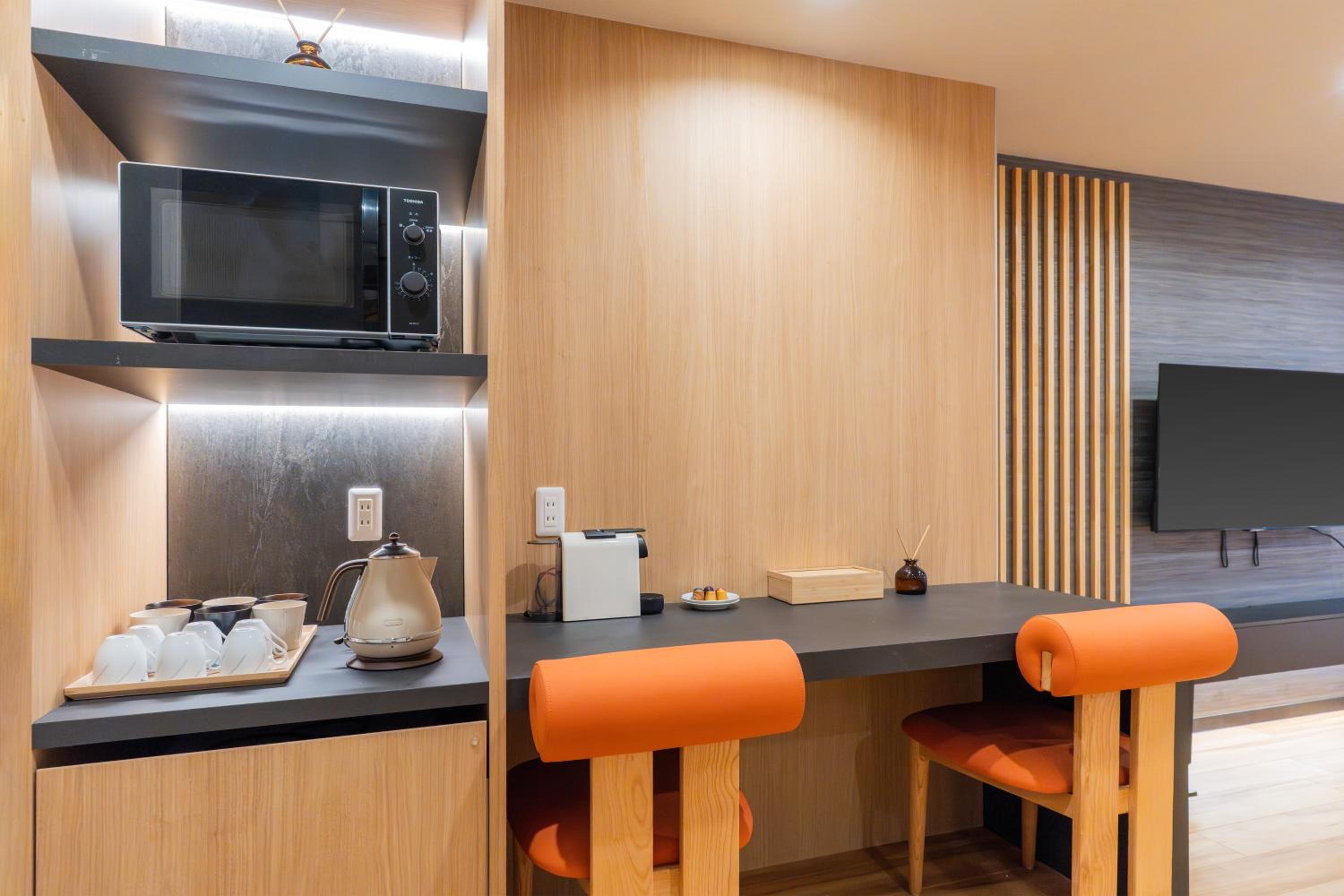 Comfort & Convenience: Each air-conditioned room features traditional tatami mats, a flat-screen TV, and a private bathroom, complemented by essential amenities like a fridge, microwave, and coffee machine for your convenience.