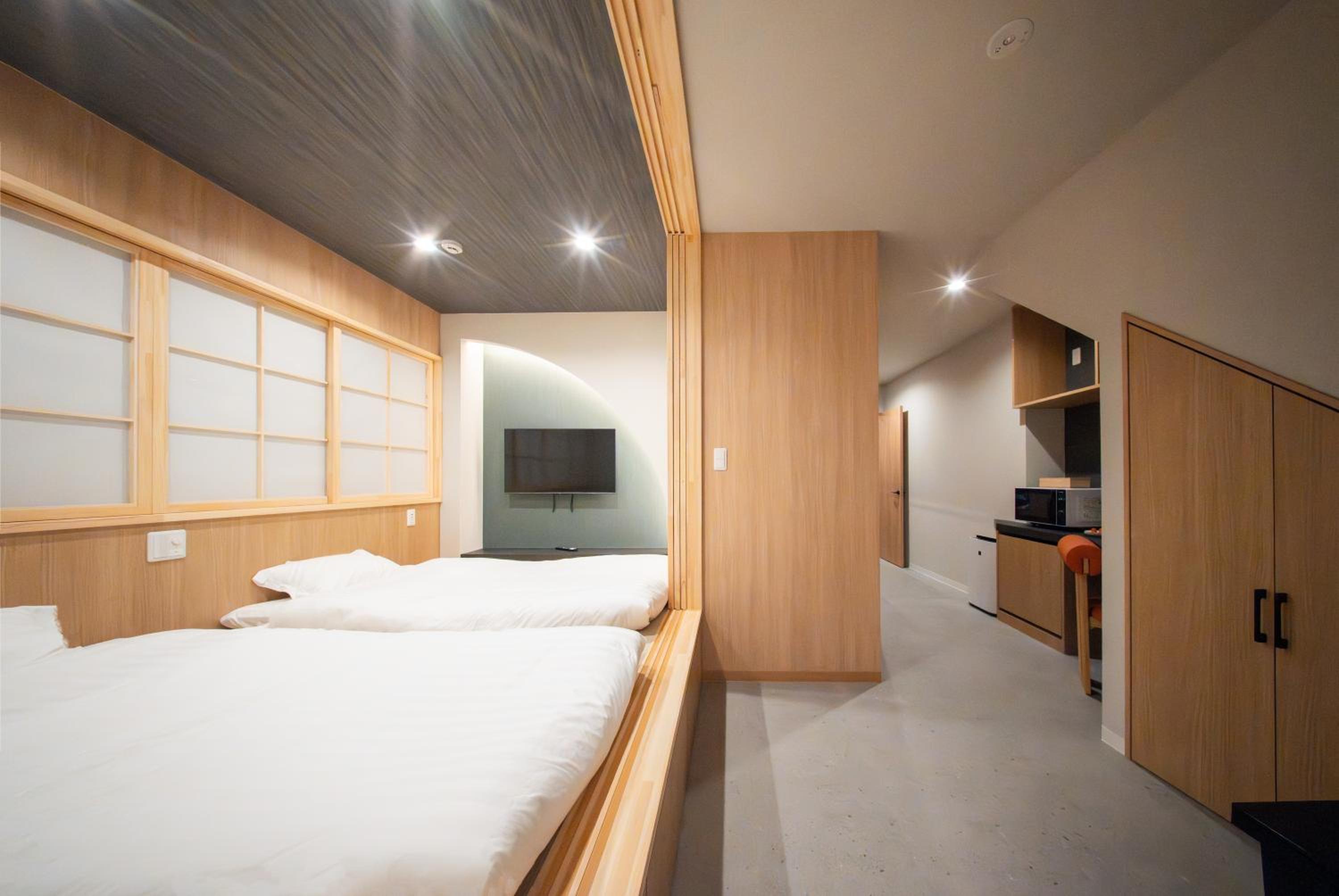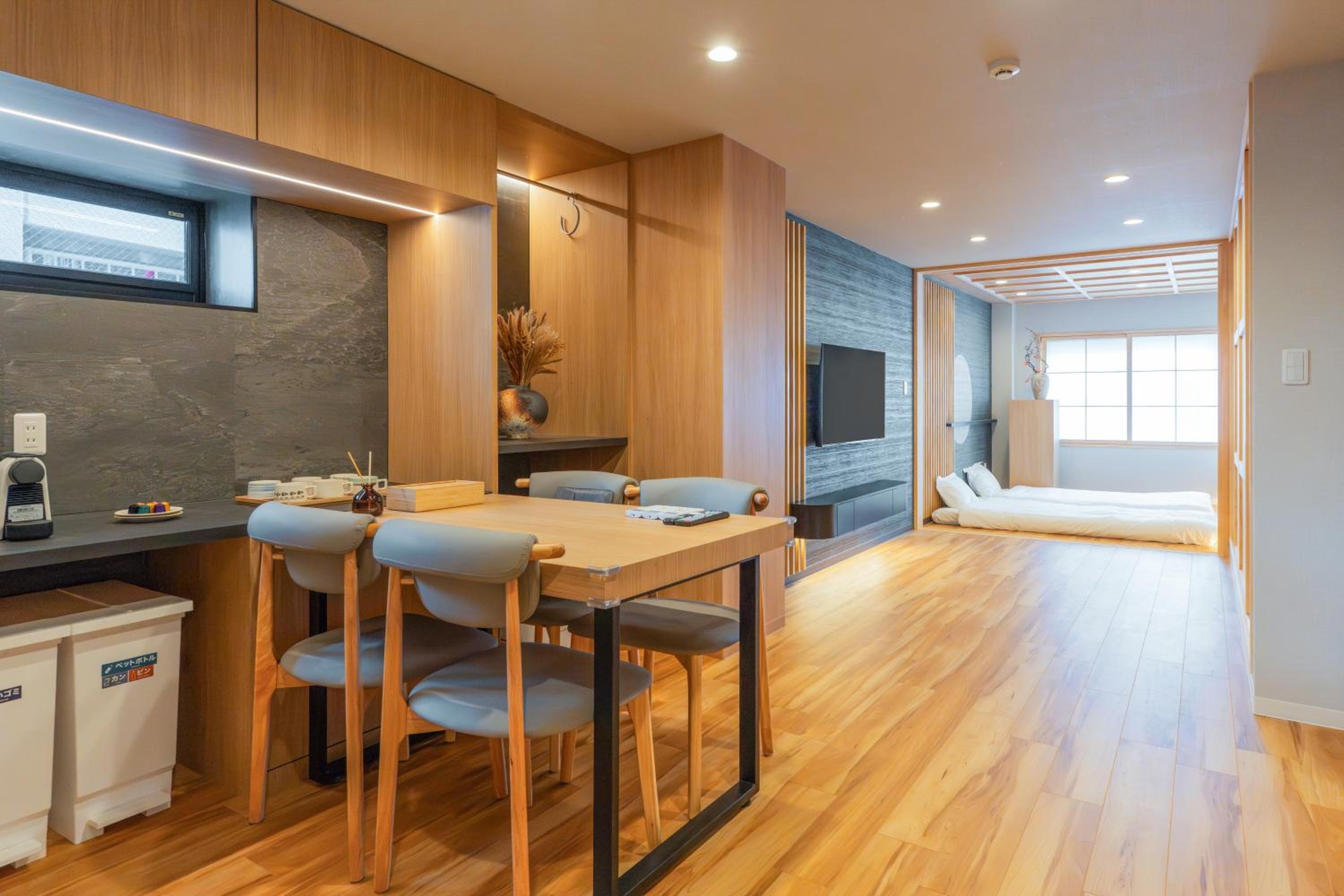 Modern minimalist design, great location, and comfy. We enjoyed having a washer/dryer in the room and the location to the JR and subway stations were convenient.