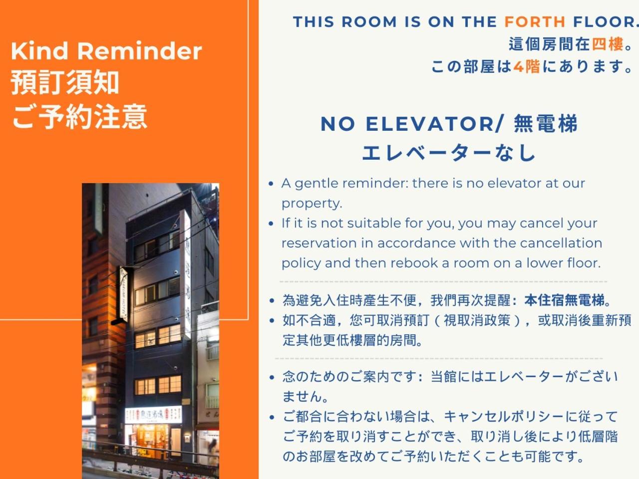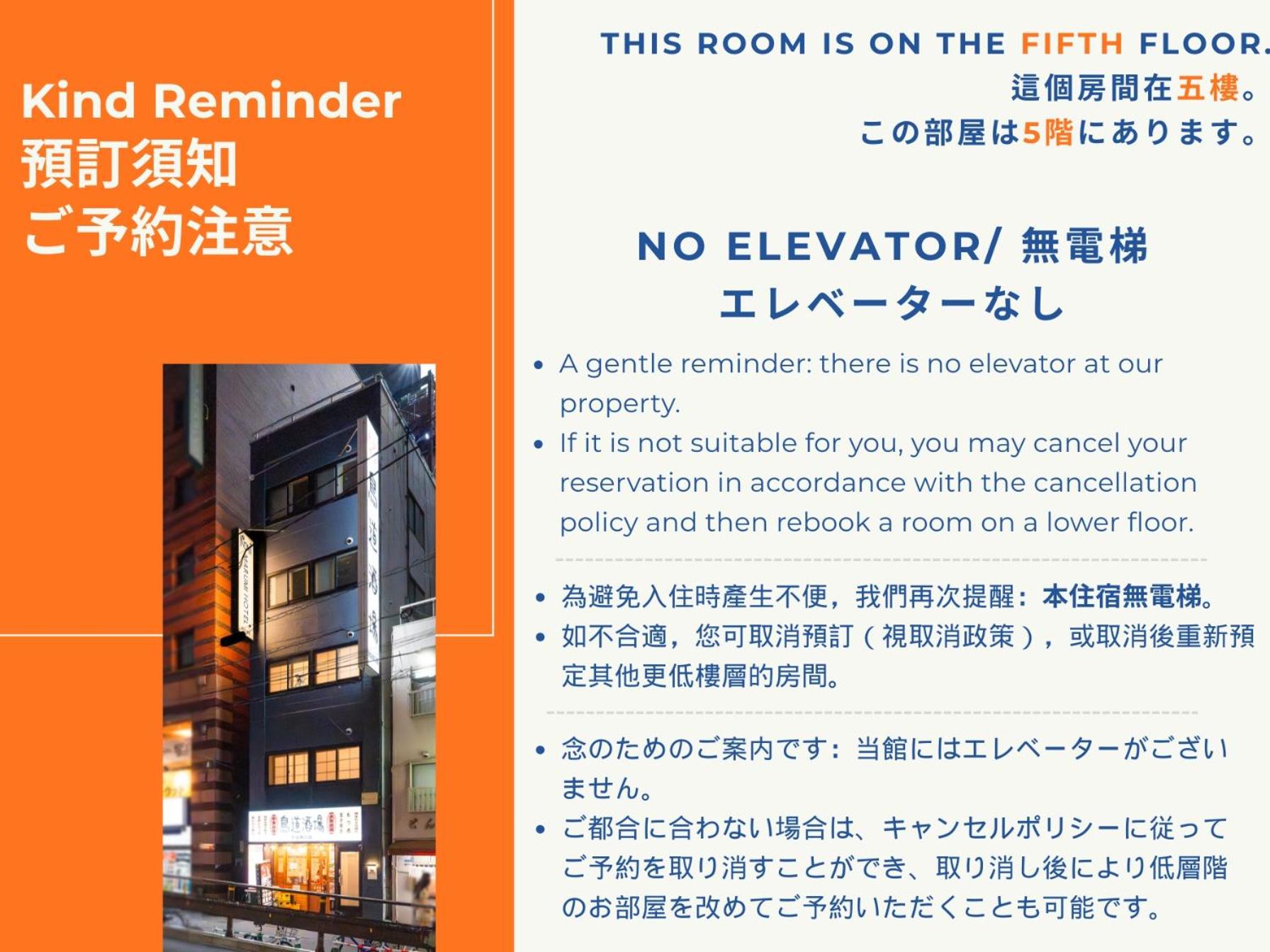 Please note that there is no elevator in this hotel.This property does not accommodate bachelor(ette) or similar parties.