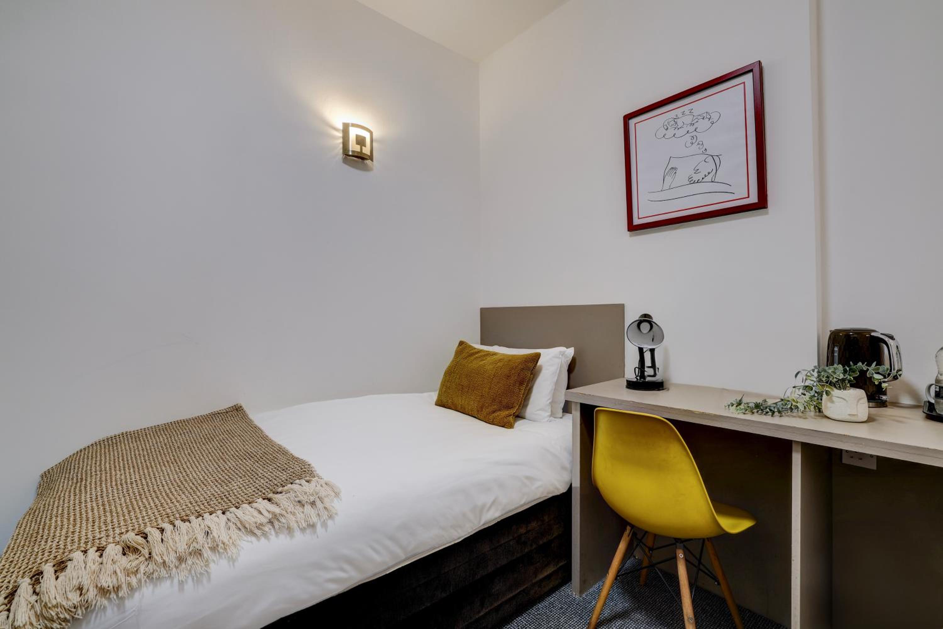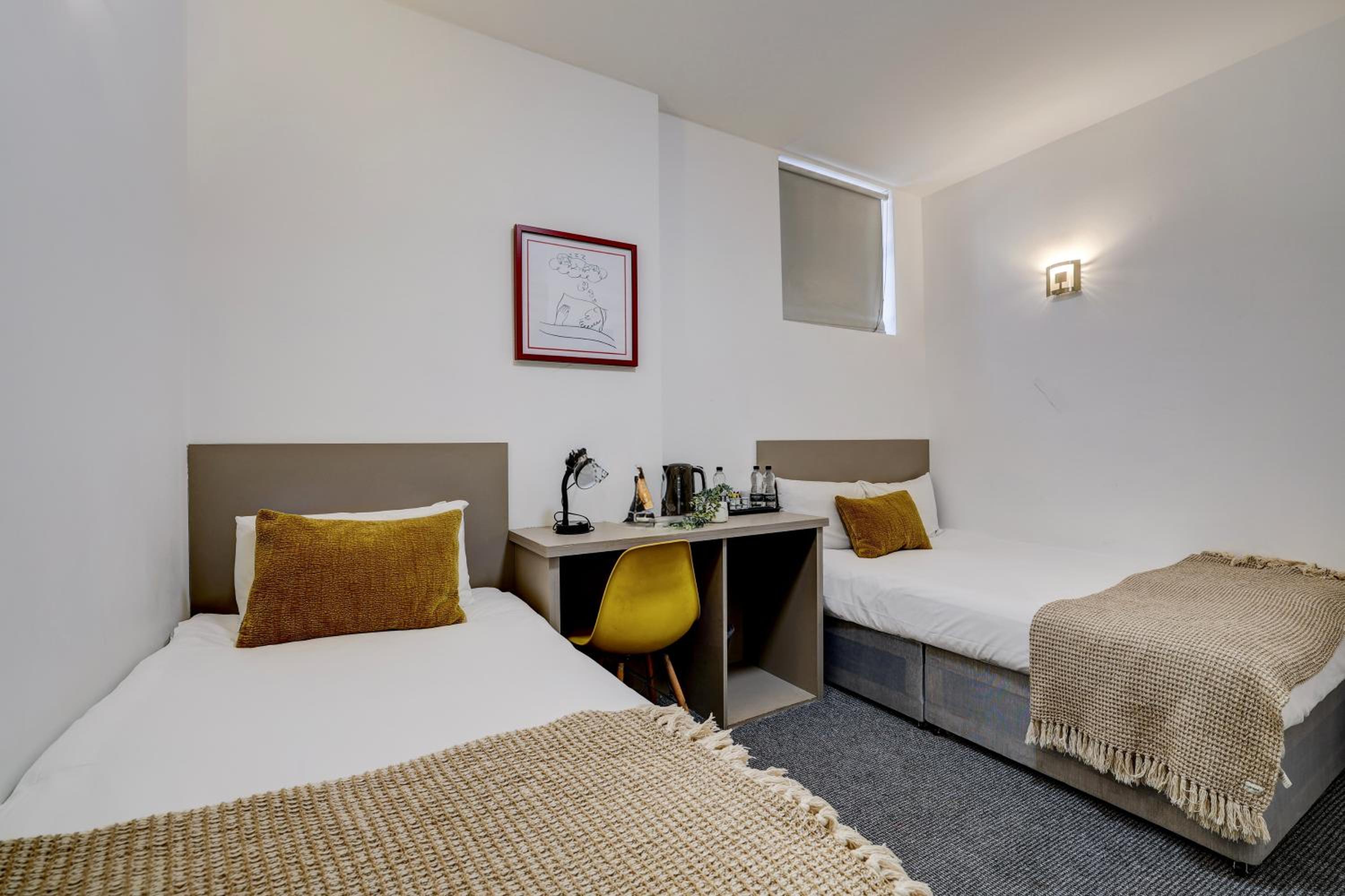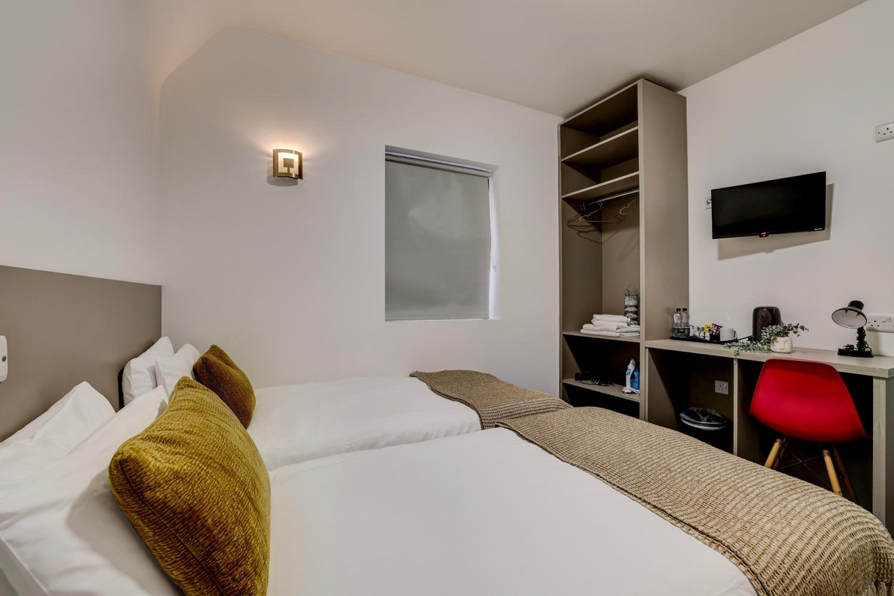 Carpets throughout the building & room were dirty, not vacuumed at all, many parks present, aged dust on top & chucks of debris. It felt like Trainspotting movie. The walls had extensive marks, windows and woodwork hasn’t been cleaned in months, bathroom was wiped but not cleaned, watermarks and limescale present everywhere. No mirror in bathroom as you’re brushing your teeth. The room itself had stale cigarette smell in it. Furniture needs maintenance. Kettle had stale water in it. Teas were herbal only and decaf coffee only. I checked in at around 9:30pm and by 10pm I’m too tired to discuss what is obviously had had many hours to check on the room for the guests to make sure it is up to expected standard. I’ve taken photos of my stay I’ll submit but I would recommend to stay in nearby Signature hotel for the same price. This is the worst in the area perhaps that looks pretty on marketing but failed in every way. The mattress to add is past its lifespan as it caves in middle. Too tired to notice all night. This is not a standard you’d live in your house either especially running it as a business!