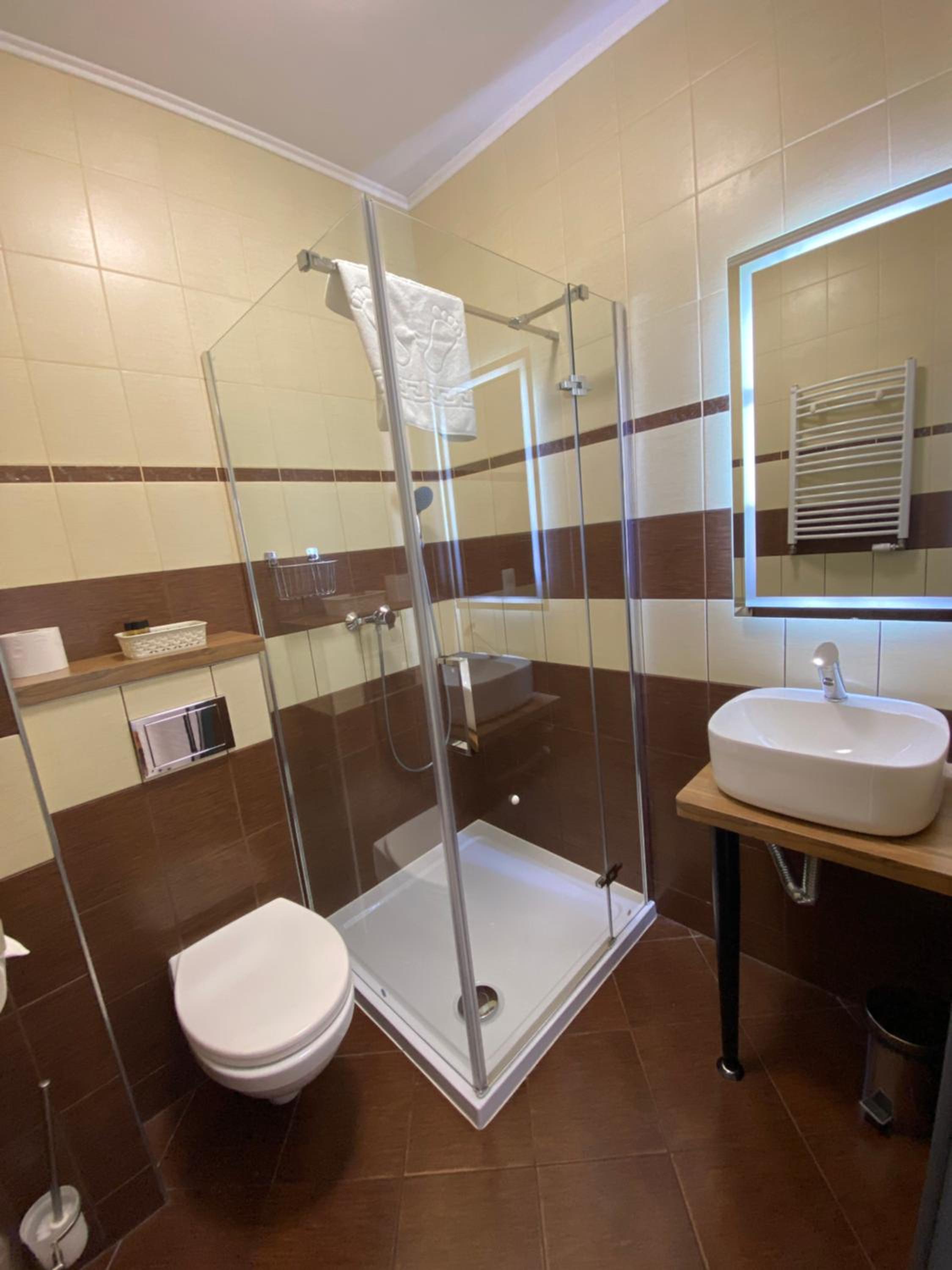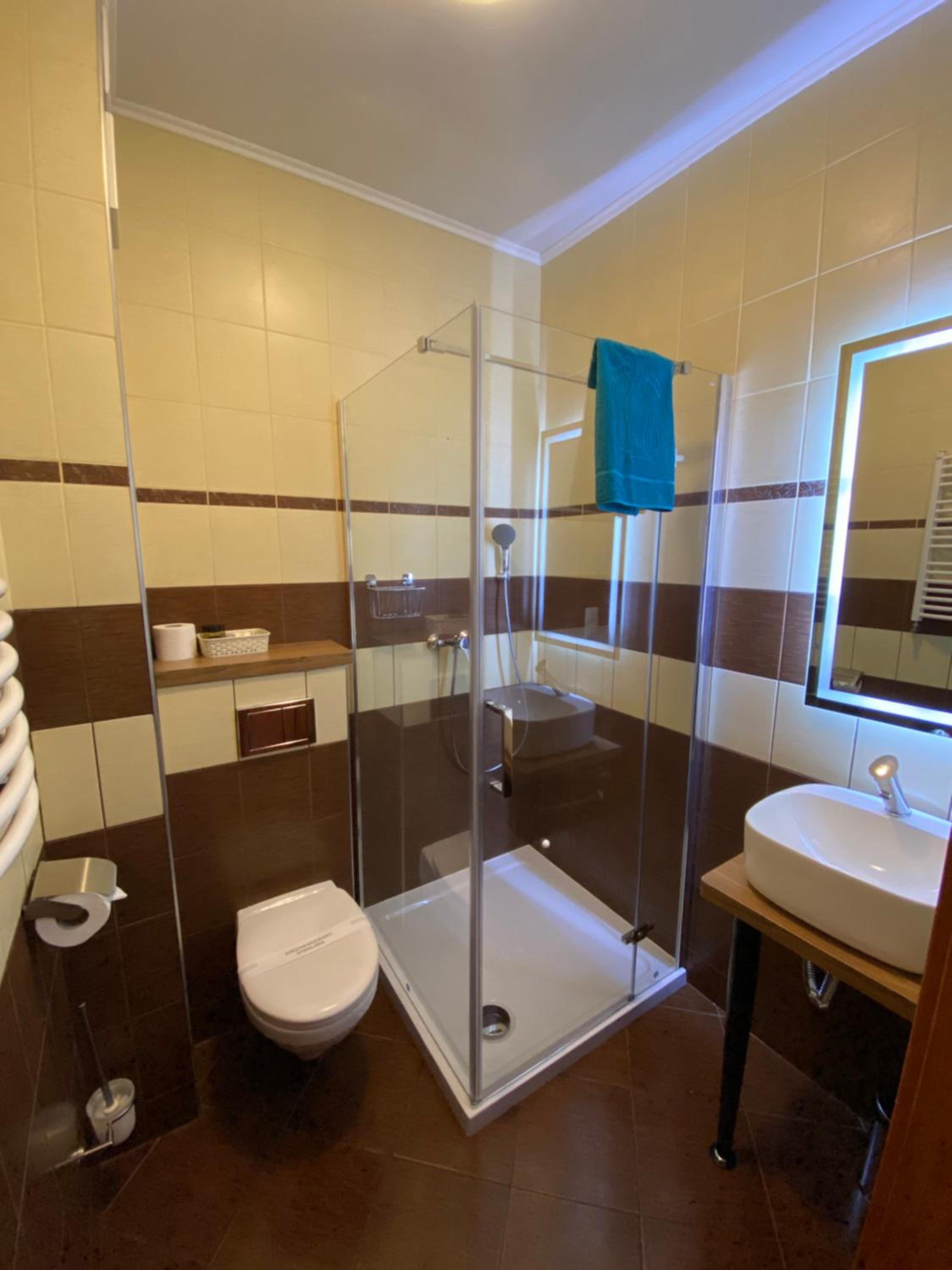 Pensjonat pięknie zadbany, czysto zarówno na zewnątrz jak i w środku. Dużym atutem był balkon w pokoju. Na duży plus kuchnia do ogólnego użytku. Personel dostępny w każdej potrzebie, bardzo pomocny i uprzejmy. No i możliwości przyjazdu z psem, ogromny plus.