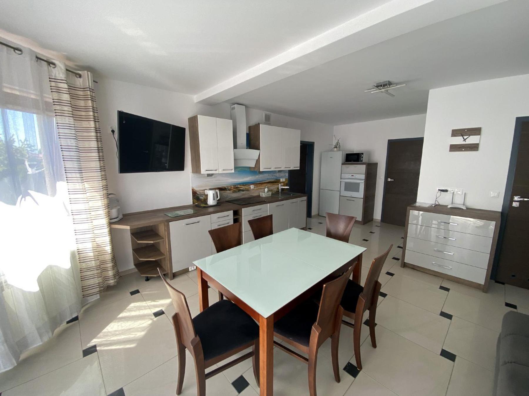 Very nice accommodation. There is a playroom for children. The shared kitchen is a very good solution. We liked it very much...