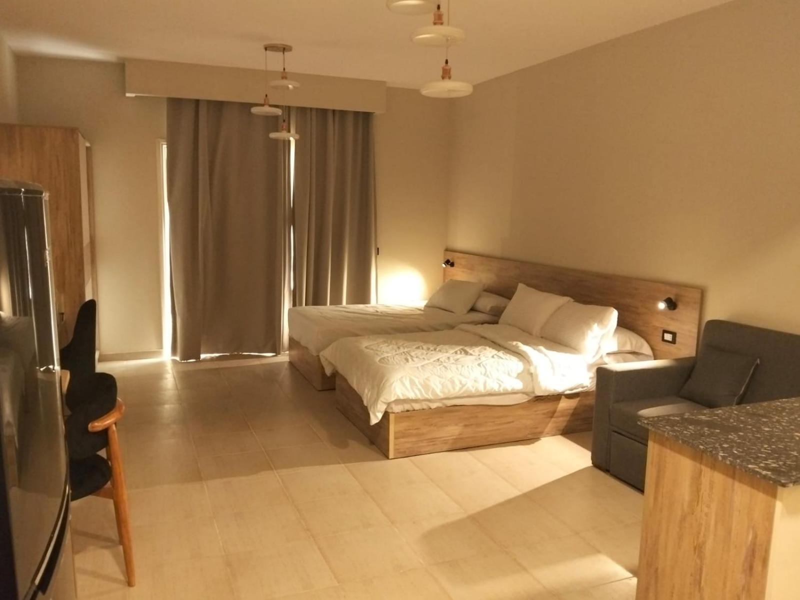 L’appartement n’était pas propre. Le lit était fait mais les draps pas changé, tâchés avec des chèvres et des poils. La salle pas nettoyé, pas de papier toilette, un savon usagé sur le lavabo. J’ai dû demander le nettoyage le lendemain. J’ai réservé une activité, je devais payer en rentrant. À 18h45 je préviens que je suis rentrée, on toque à ma porte à 23h alors que je dormais pour me demander le règlement qui aurait pu attendre la veille. L’activité était à 20€, on m’a réclamé 30€. Le lendemain matin on m’a remboursé après avoir dû envoyer les photos du sites et d’activité similaires. Je demande le check-out à 11h15, on me dit être là dans moins de 30 minutes, au final j’ai attendu jusqu’à 12h20 en recevant un simple audio pour me dire de laisser la clé à la sécurité. C’est ma première mauvaise expérience de logement en Égypte. Avec un manque de considération certain. Le salon de coiffure, une pure escroquerie, 35€ pour deux tresses collées que j’ai défait la veille et que vous pouvez faire mieux en ville pour 10€. Le spa hors de prix, plus cher qu’en France pour une qualité vraiment inférieure.