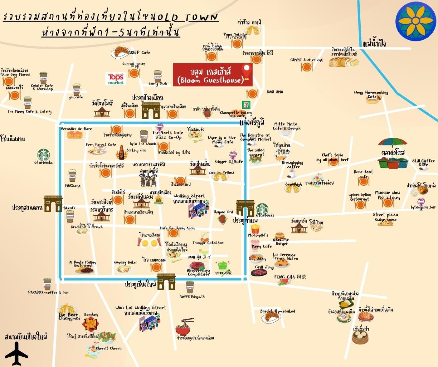Prime Location: Situated just a 17-minute walk from Tha Pae Gate and near popular attractions like Chang Puak Gate and Three Kings Monument, Bloom Guesthouse places you right in the heart of Chiang Mai's vibrant culture.