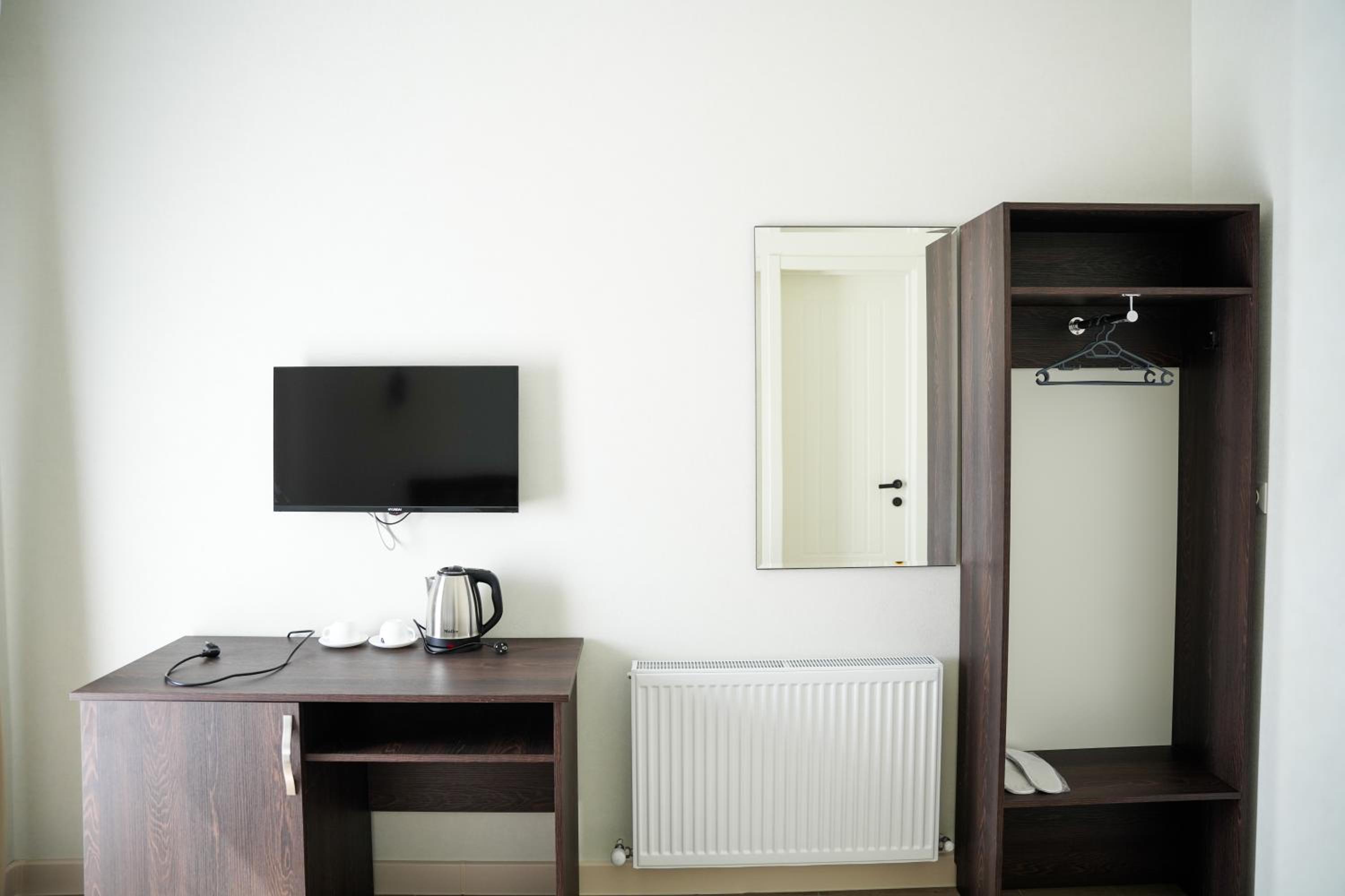 Не очень удобное прикроватное освещение, от него мало света, читать не очень удобно. Нет дополнительной полочки в ванной, чтобы поставить необходимое. В шкафу только вешалки, полочек нет, нет их и в прикроватной тумбочке.
