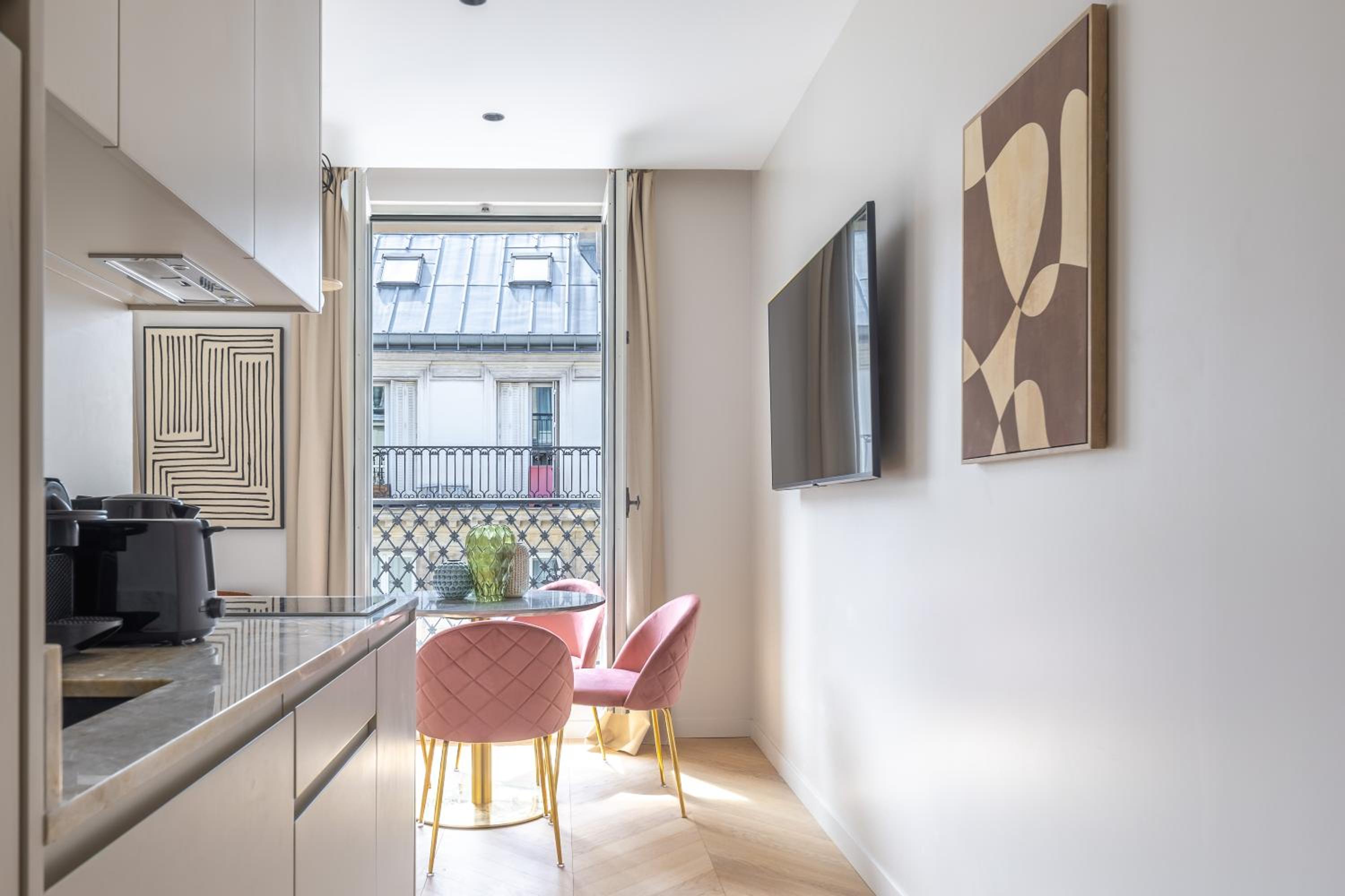 Nestled in the heart of Paris, just an 8-minute stroll from the iconic Pompidou Center and a short ride from the Louvre Museum, you're perfectly situated to explore the city's rich culture and vibrant atmosphere.