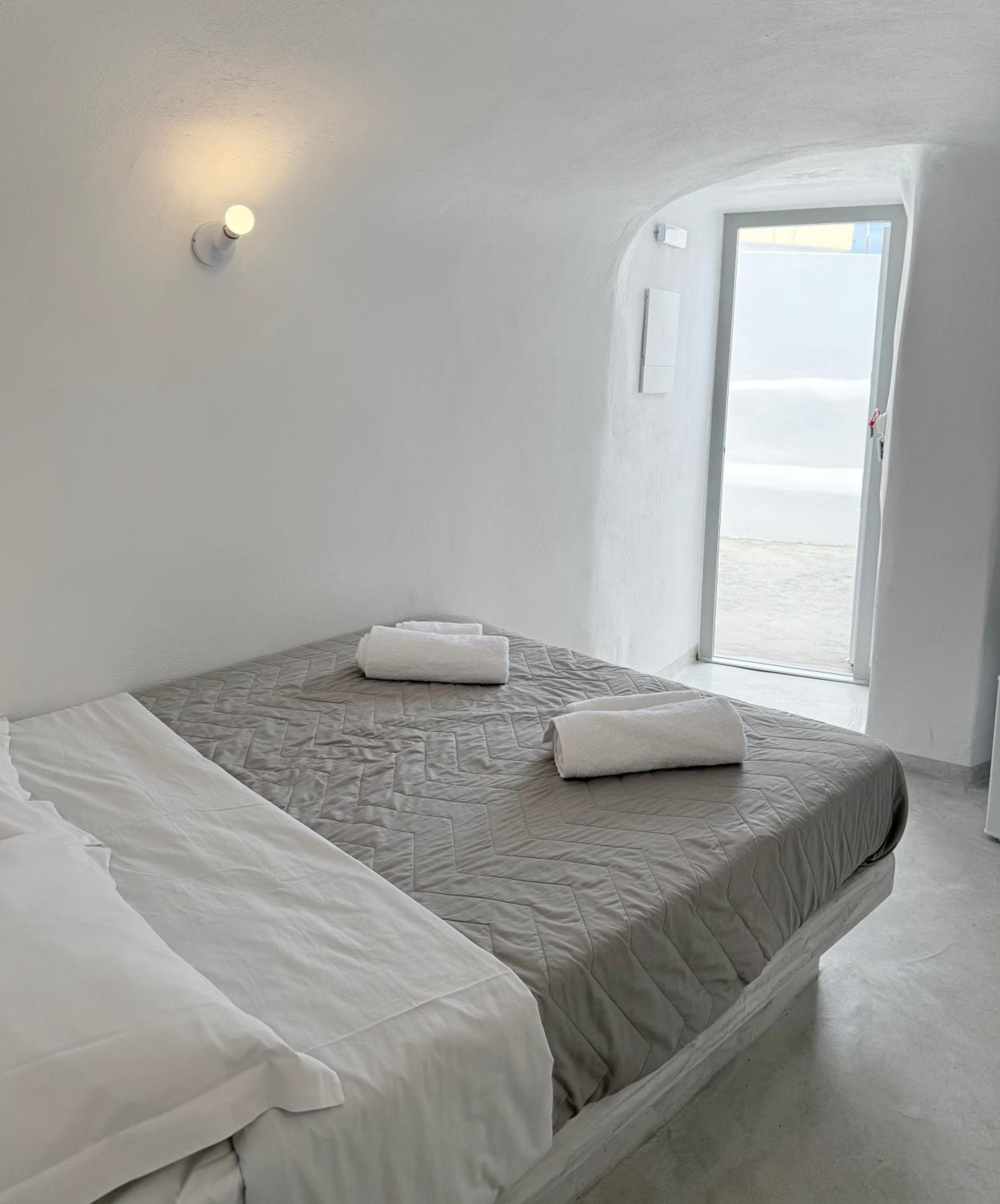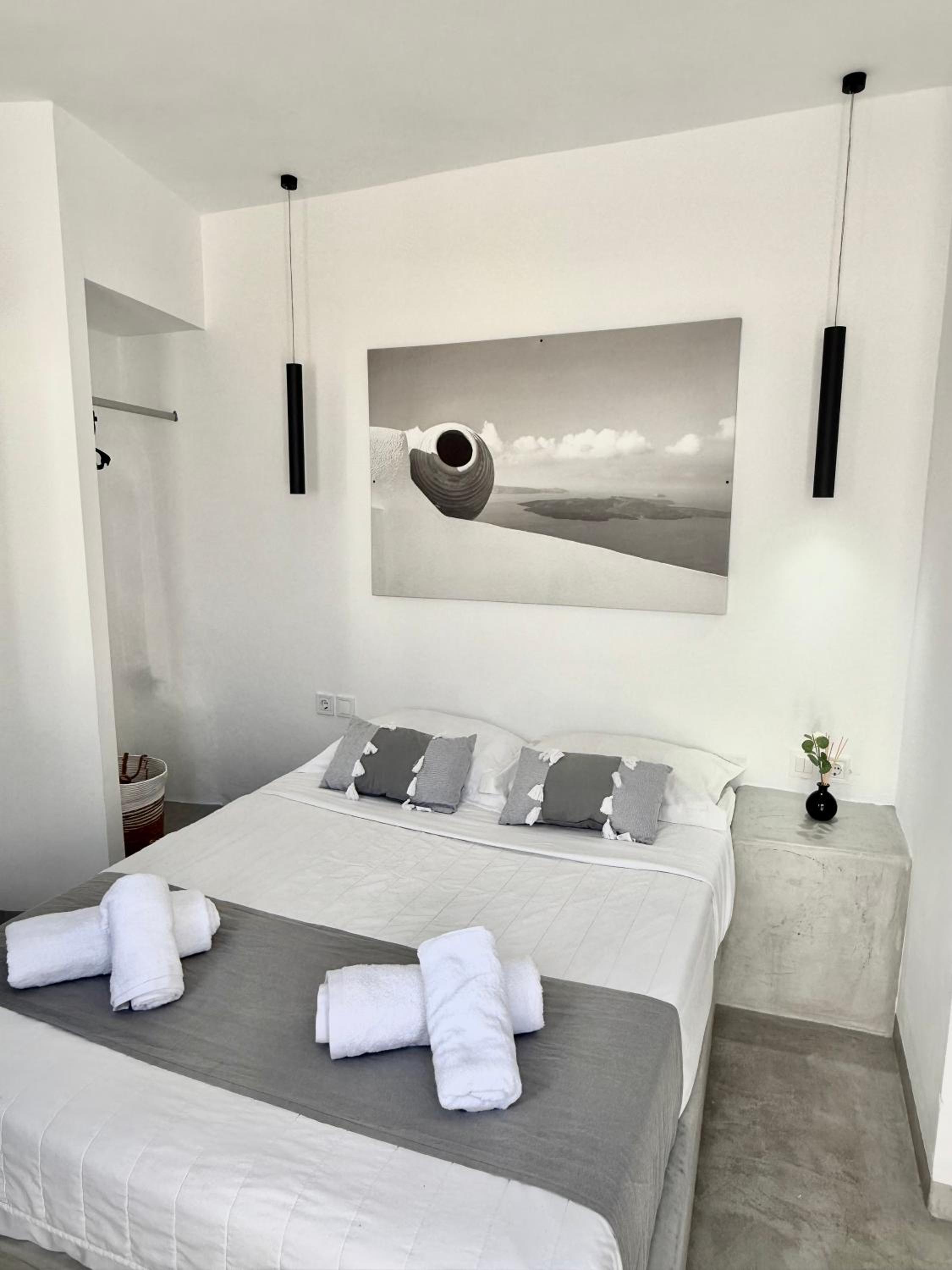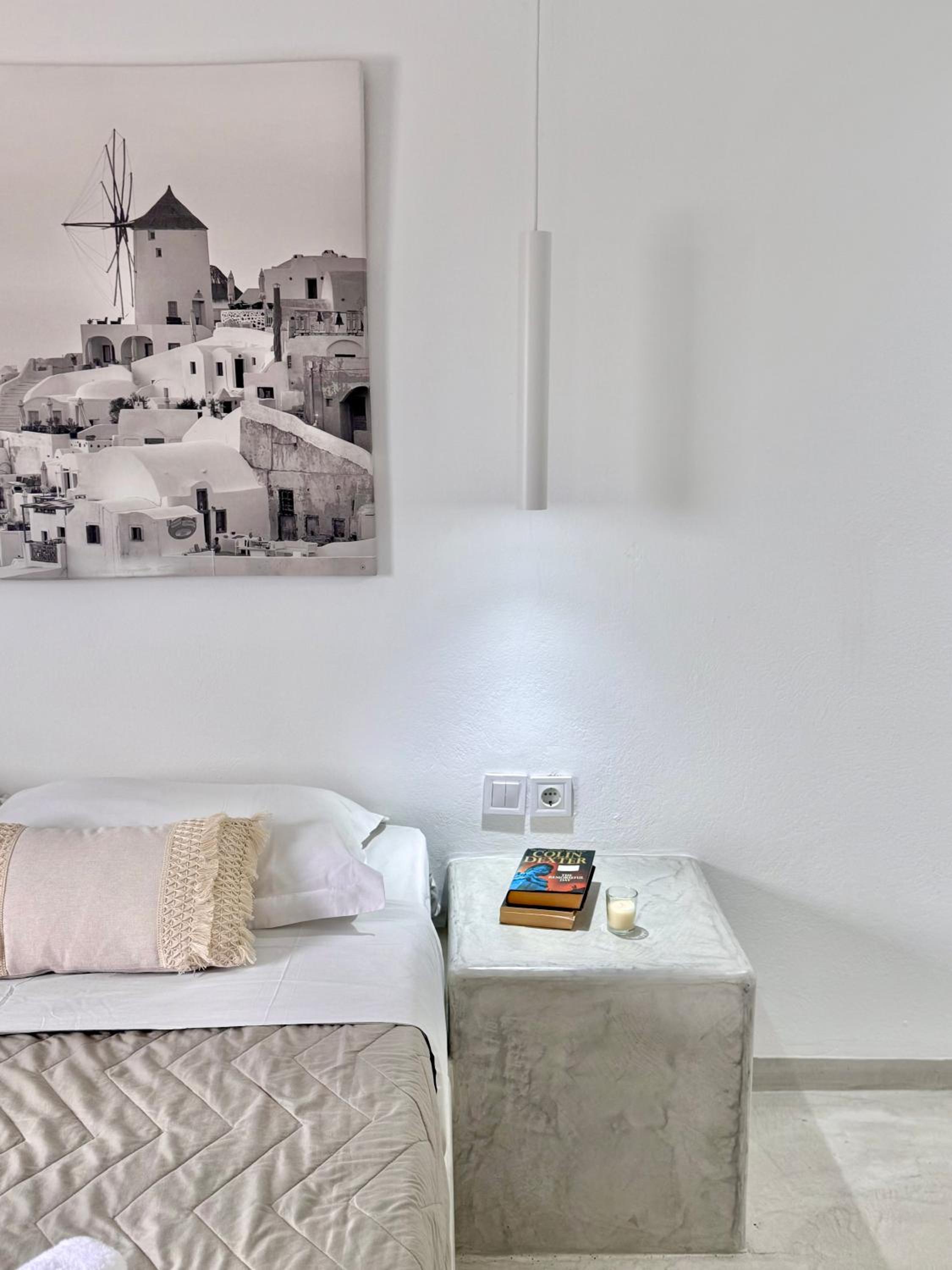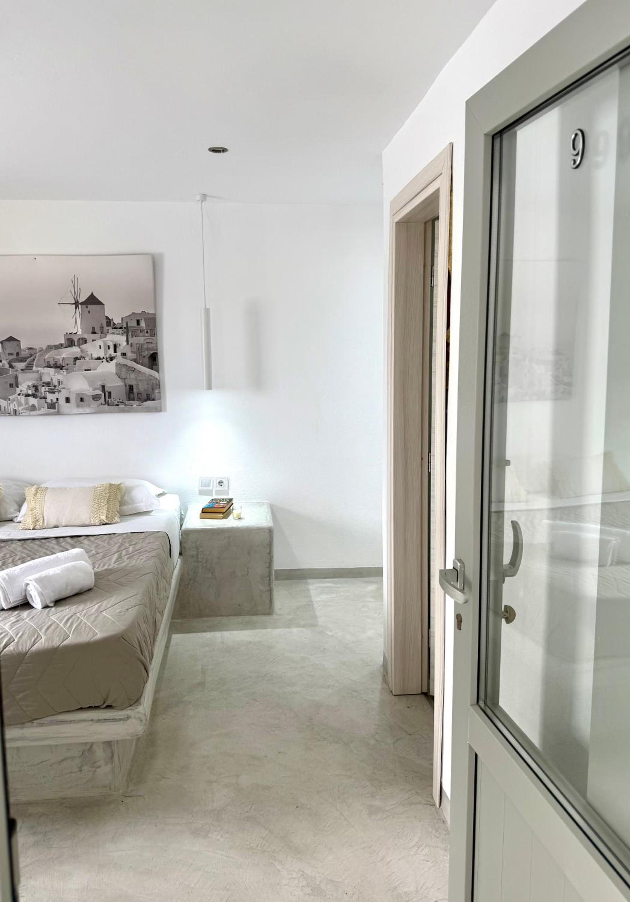 The room itself was clean and the bed is comfortable. The location is good- only 5–10 minutes from the center of Fira, shops, and services, on a quiet street.
