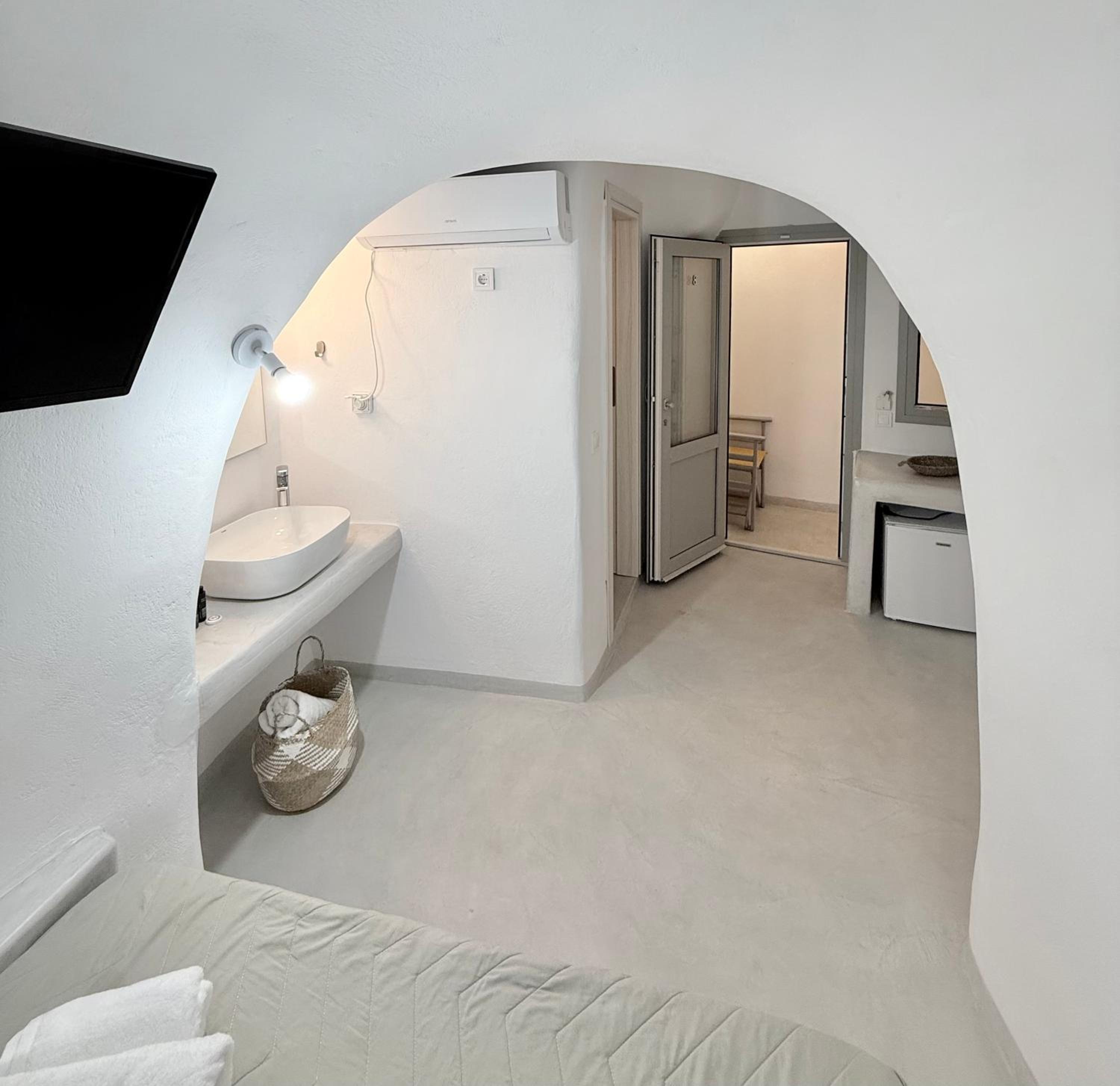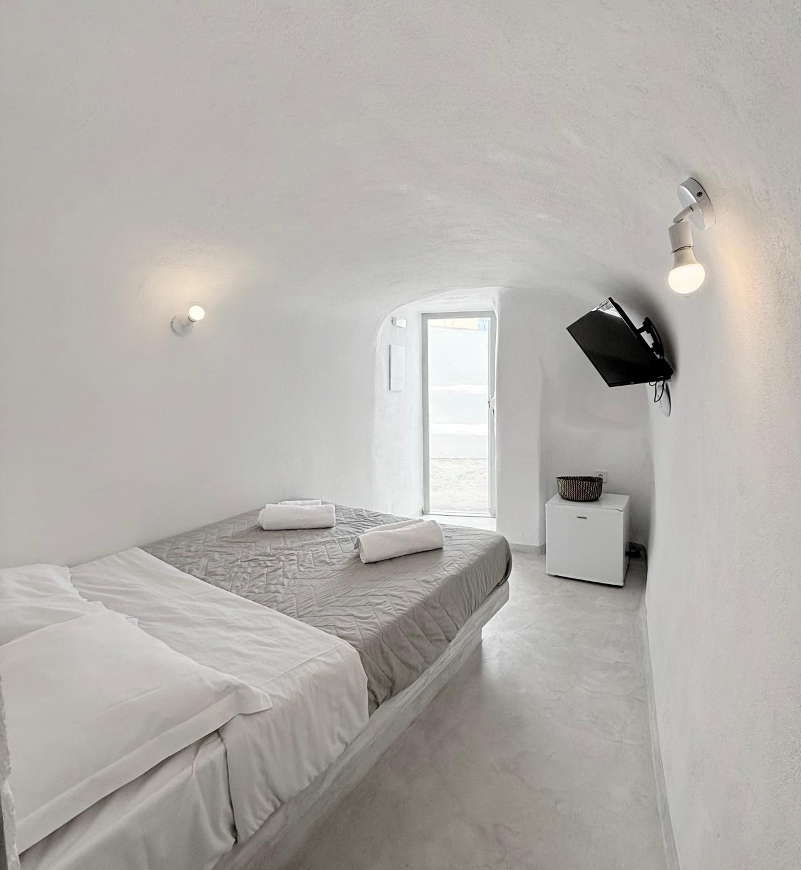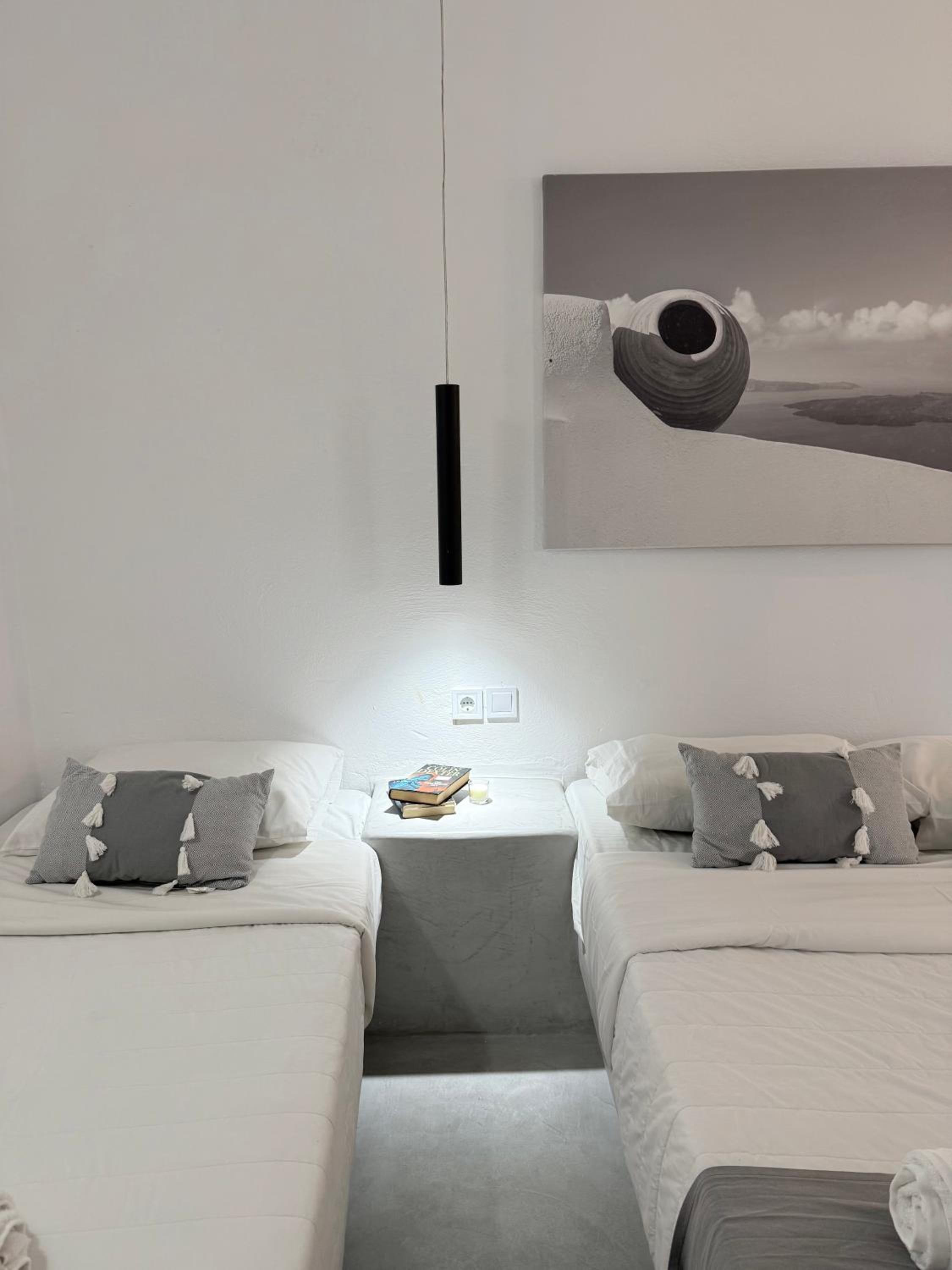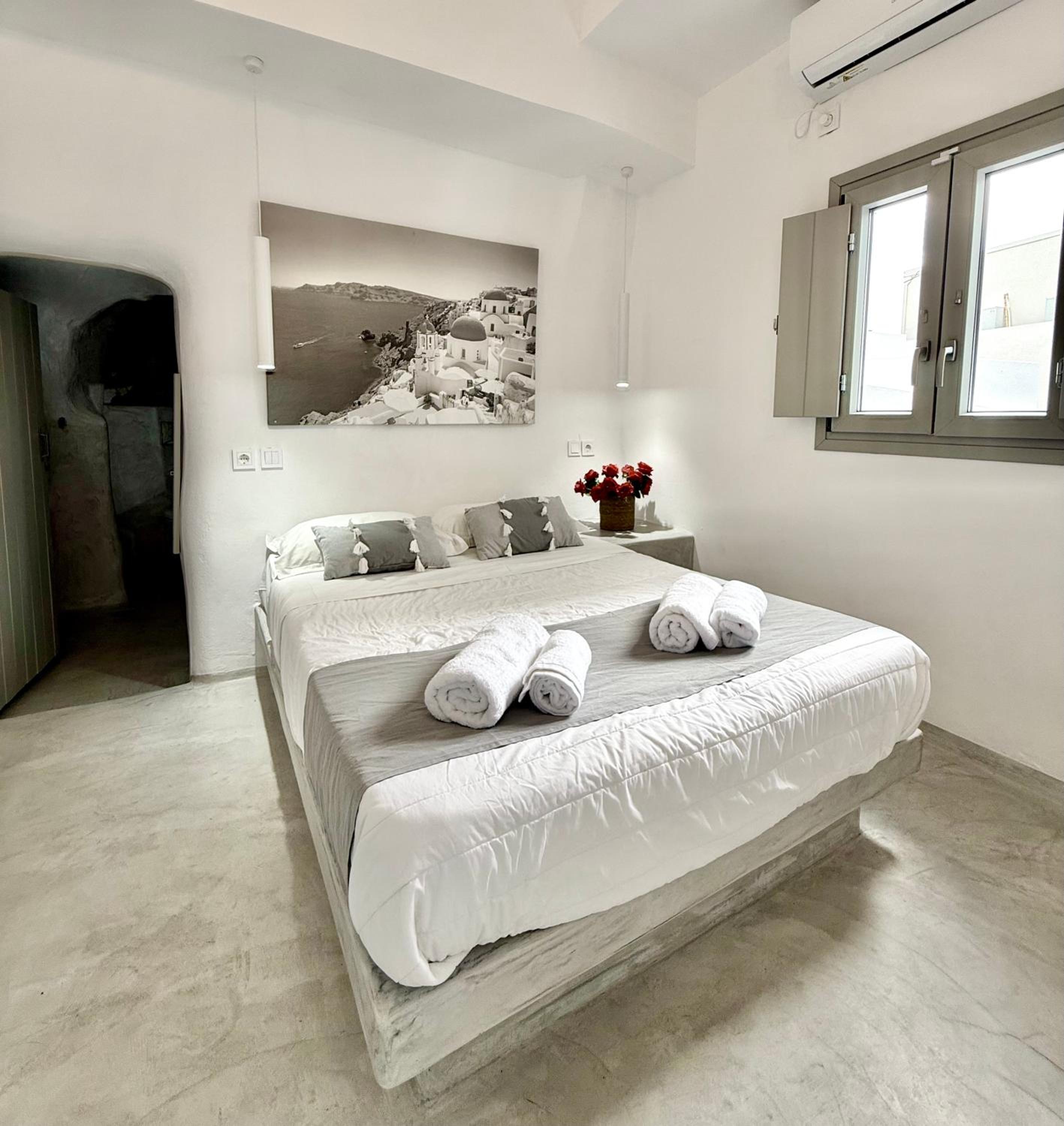 The room itself was clean and the bed is comfortable. The location is good- only 5–10 minutes from the center of Fira, shops, and services, on a quiet street.