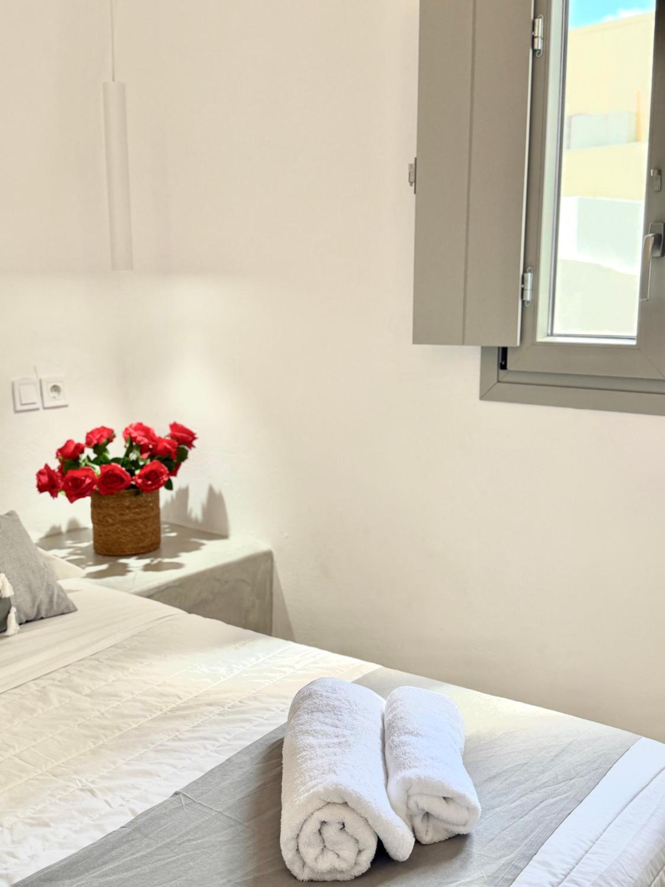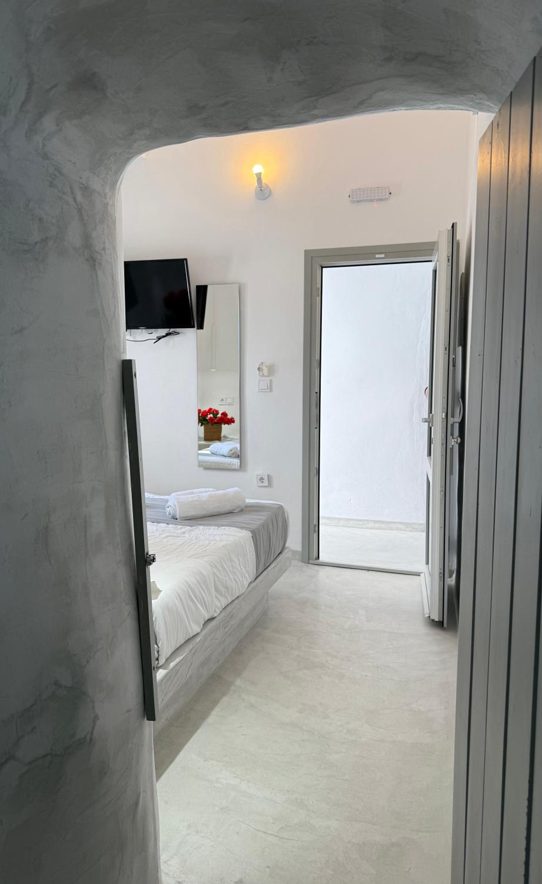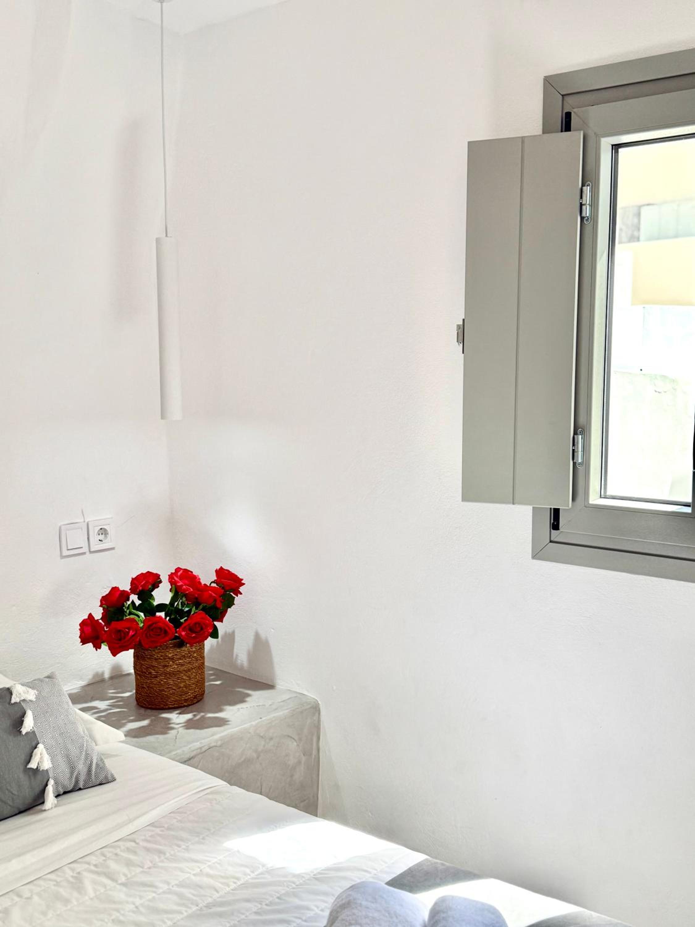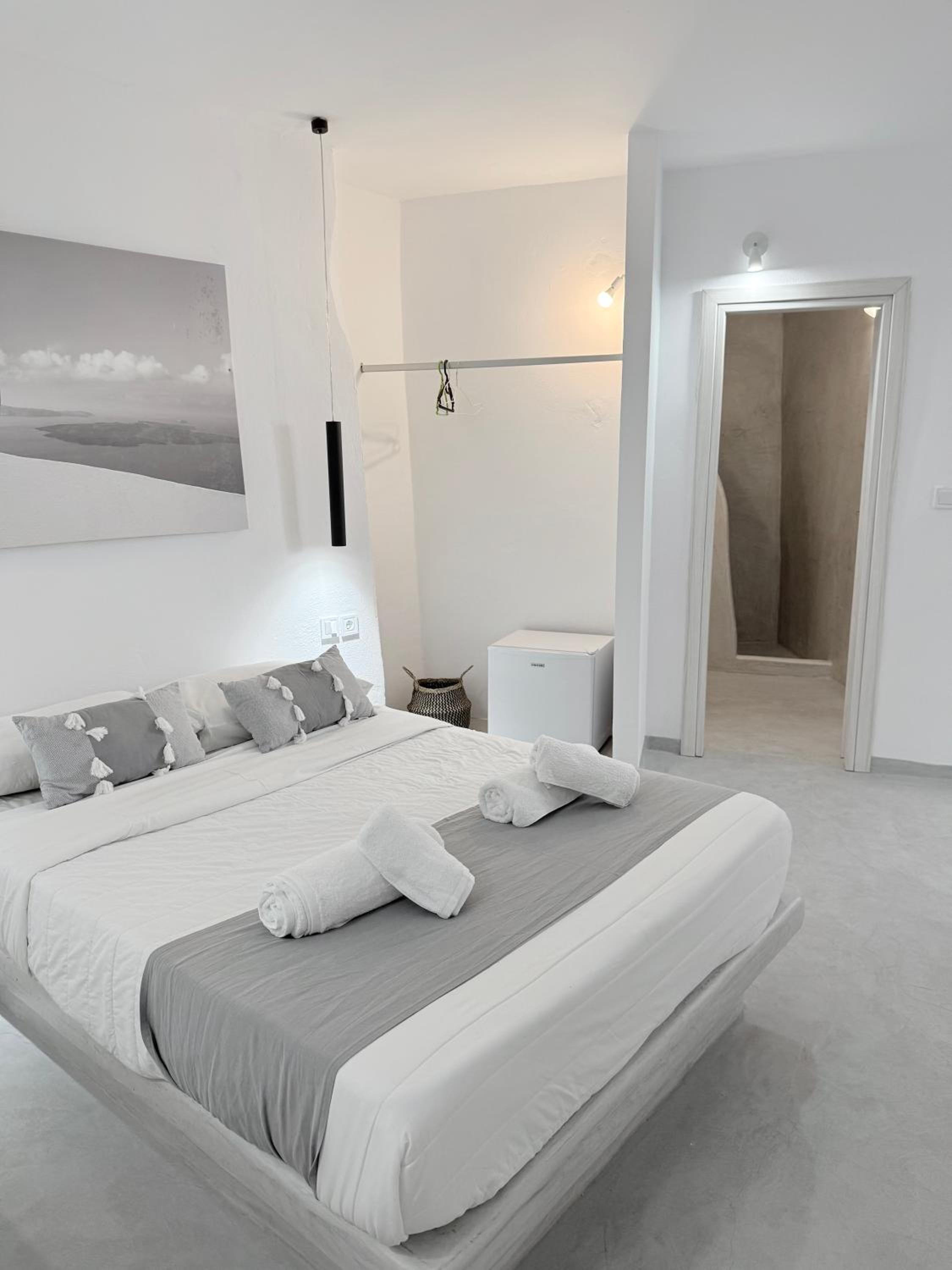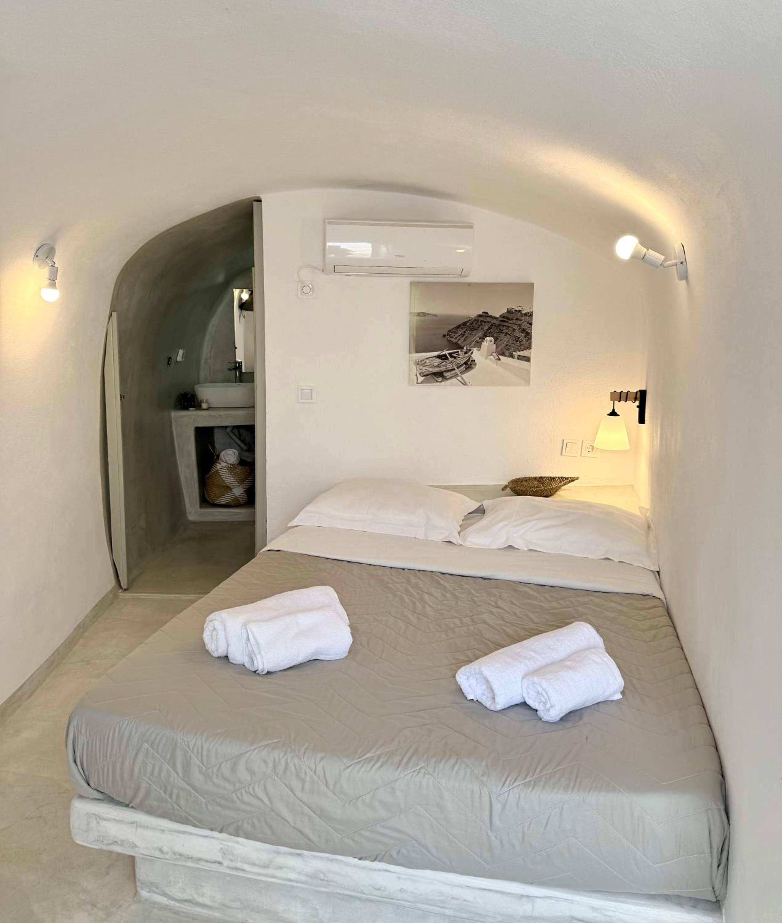 The room itself was clean and the bed is comfortable. The location is good- only 5–10 minutes from the center of Fira, shops, and services, on a quiet street.