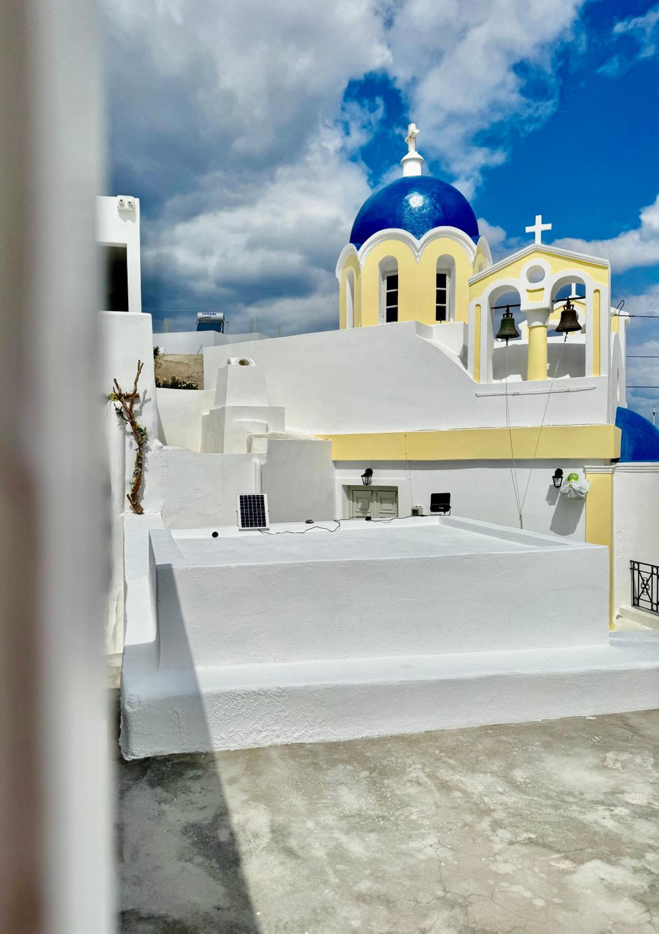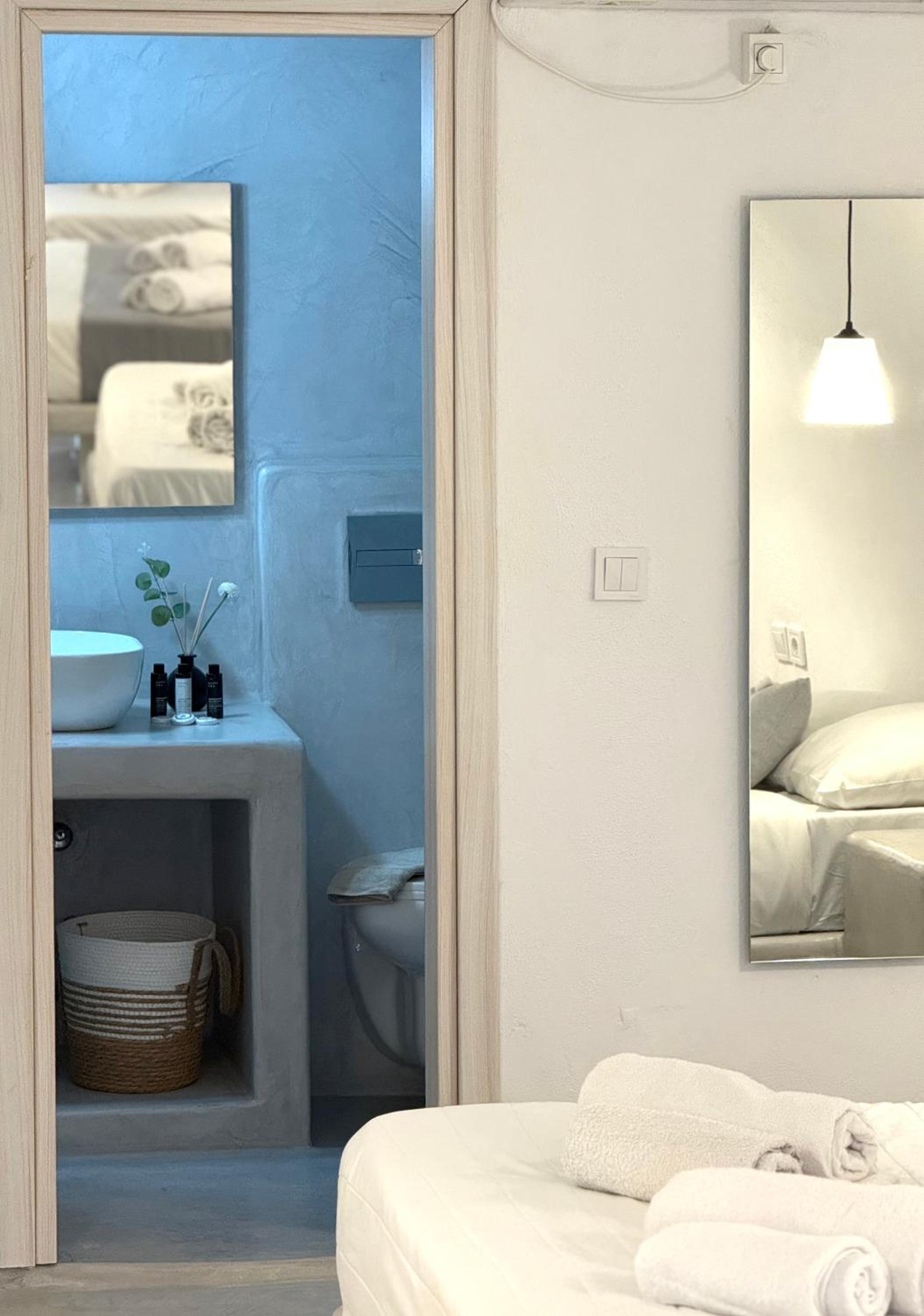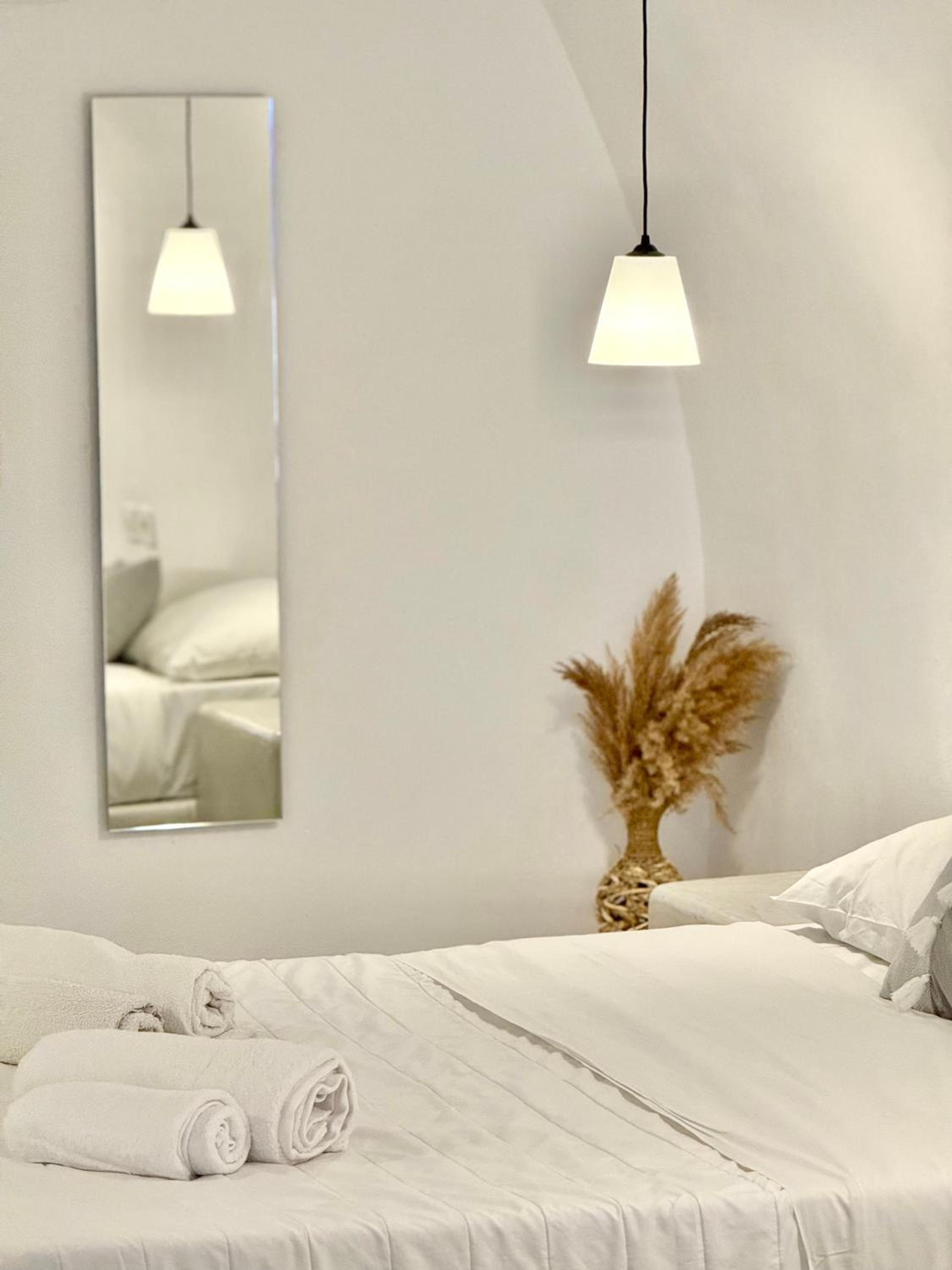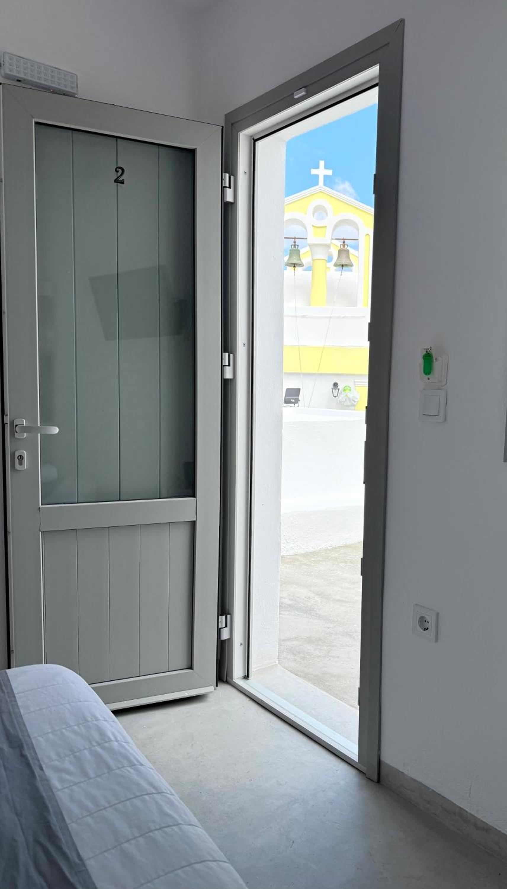 The room itself was clean and the bed is comfortable. The location is good- only 5–10 minutes from the center of Fira, shops, and services, on a quiet street.