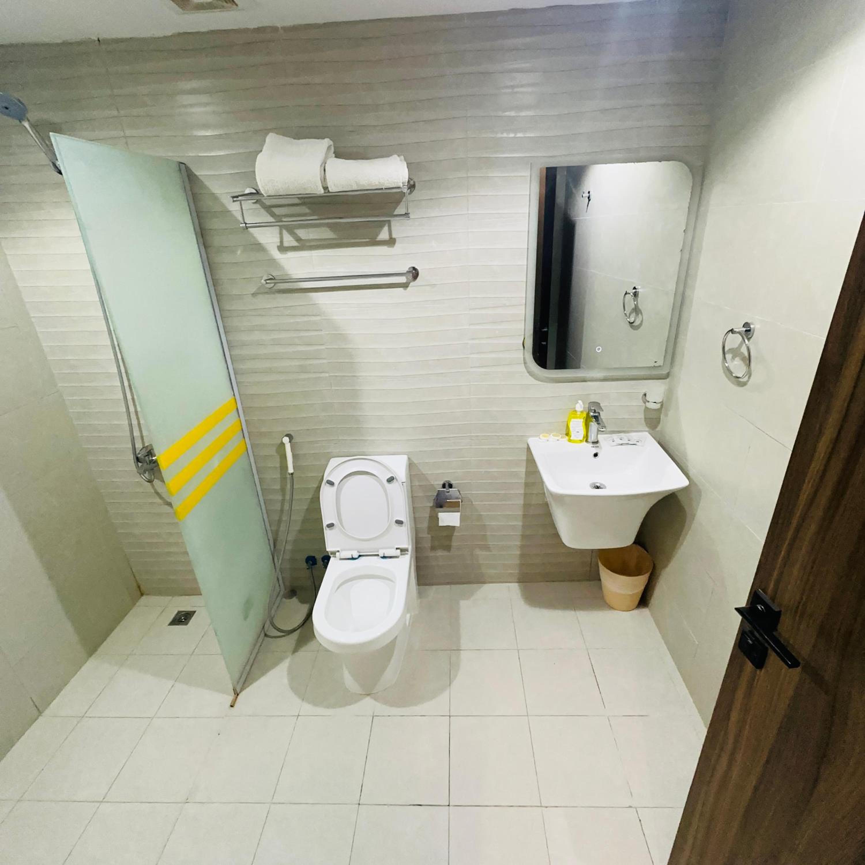 comfy beds, air conditioned, speedy elevators, no one bothered us. washroom was ok and clean, not much crowded lobby and some shops are very close to buy gifts and other stuff.