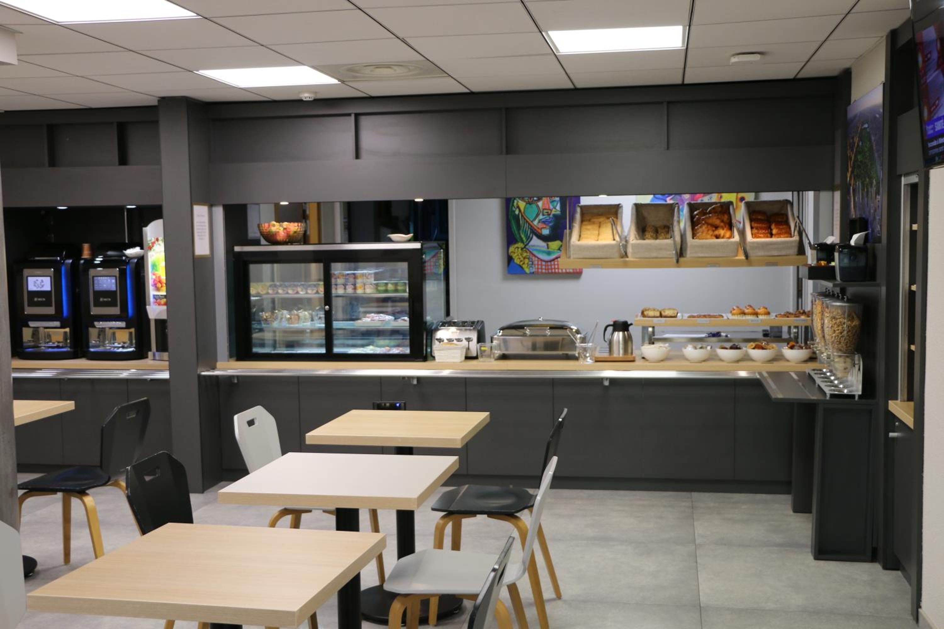 La gentillesse de personnel a l’accueil. Buffet avec un choix sympa. En revanche limite en place (il ne restait qu’une table de 2 lorsque je suis arrivée. Chambre correcte. Proximité de mon lieu de formation