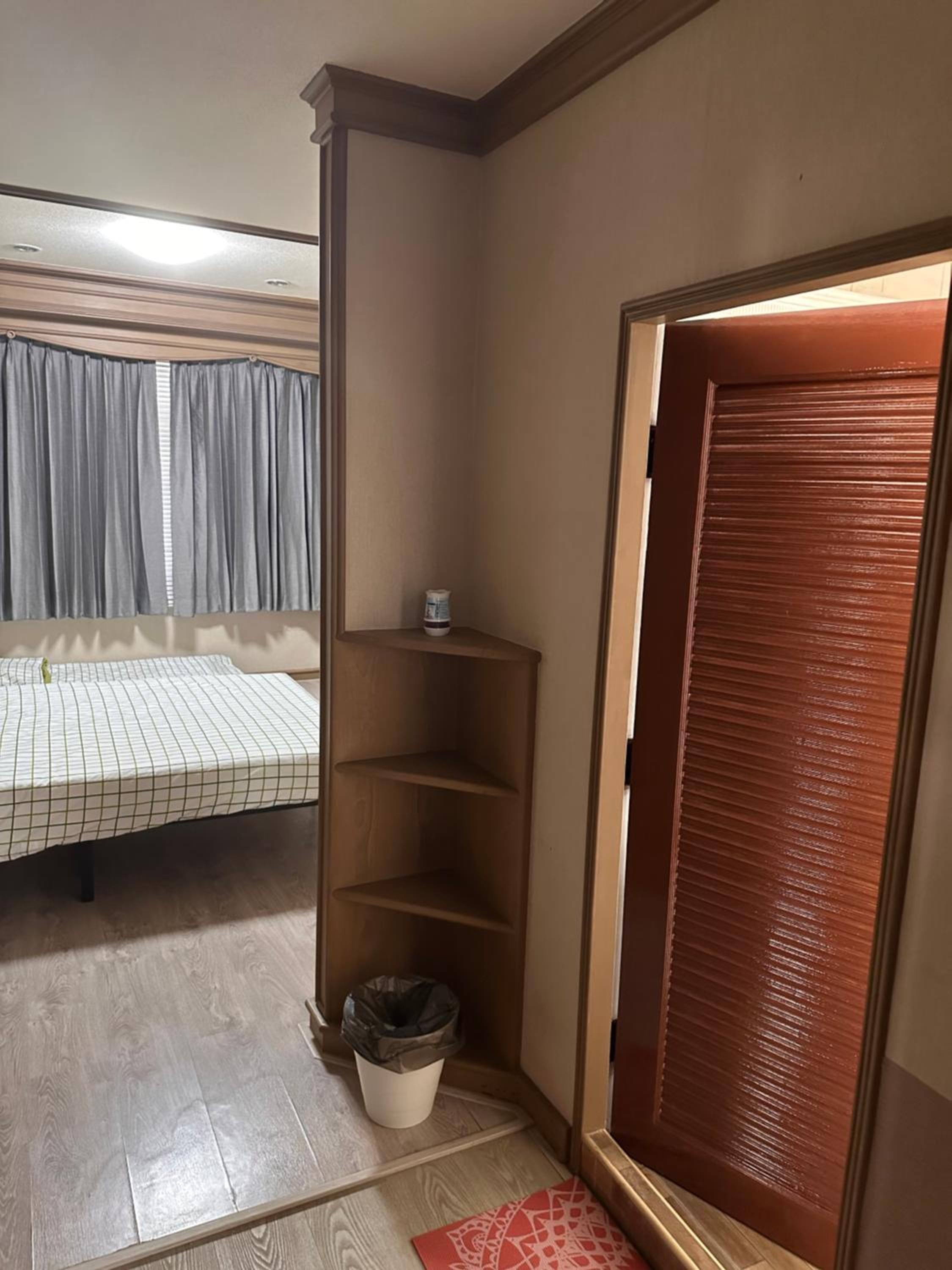 Si la chambre est correcte, dehors c'est le débarras avec linge et produits d'entretien.