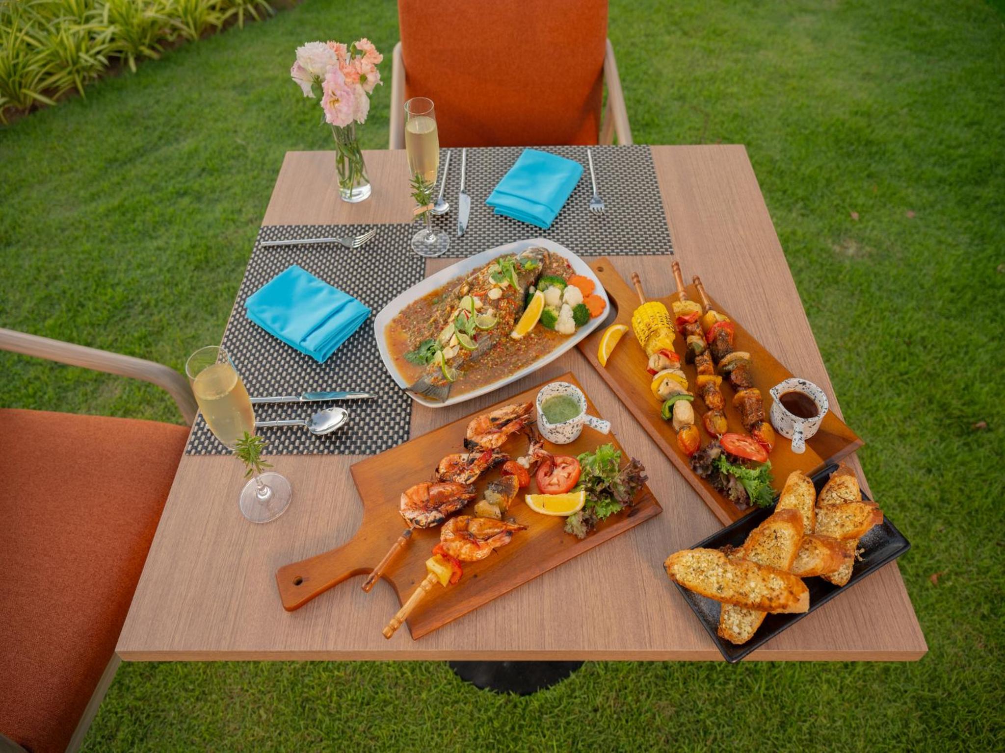 Experience a culinary journey at our on-site restaurant, offering a tantalizing selection of buffet, à la carte, and American breakfast options. Unwind at our bar with refreshing drinks as you savor the moments.
