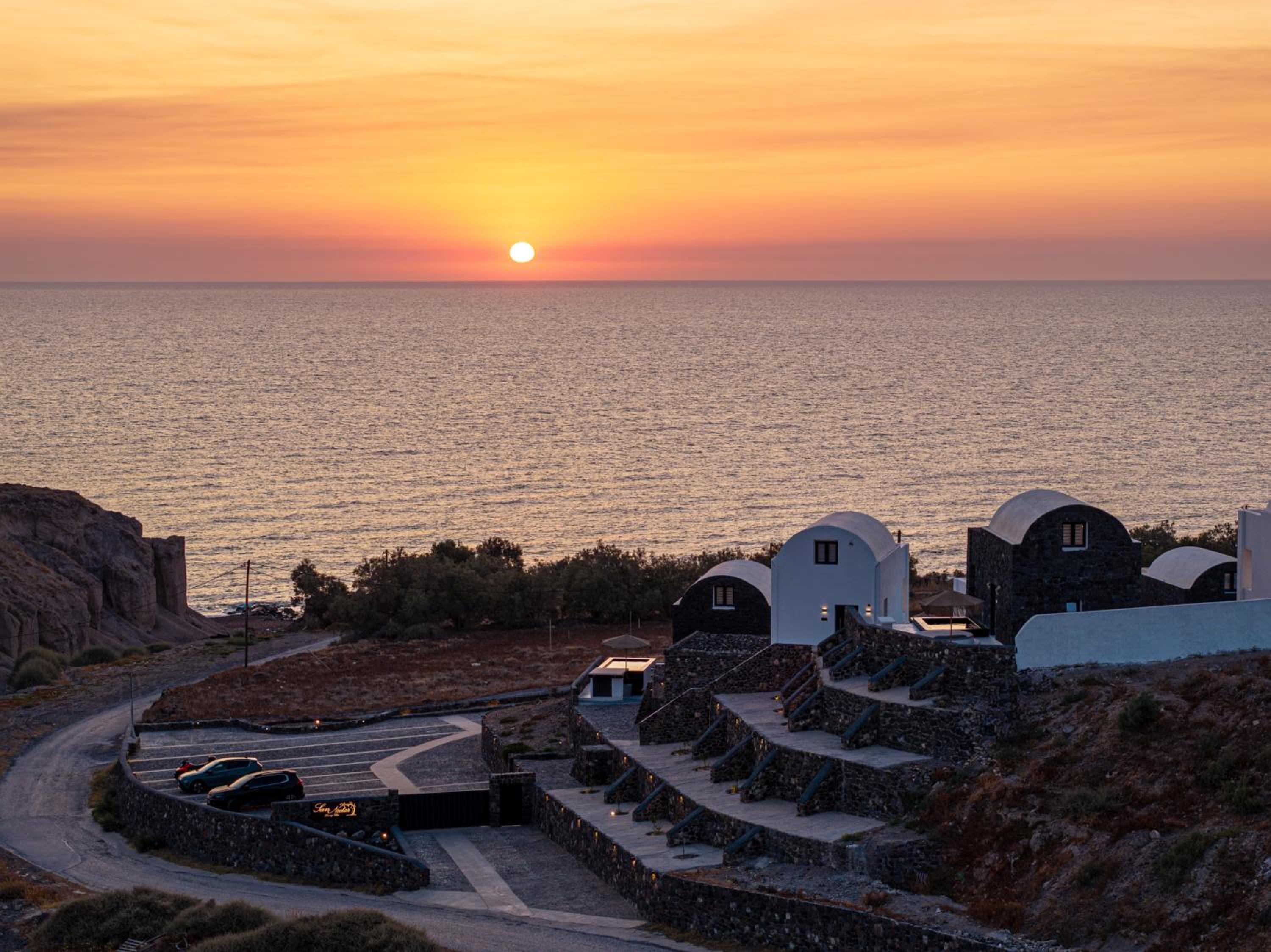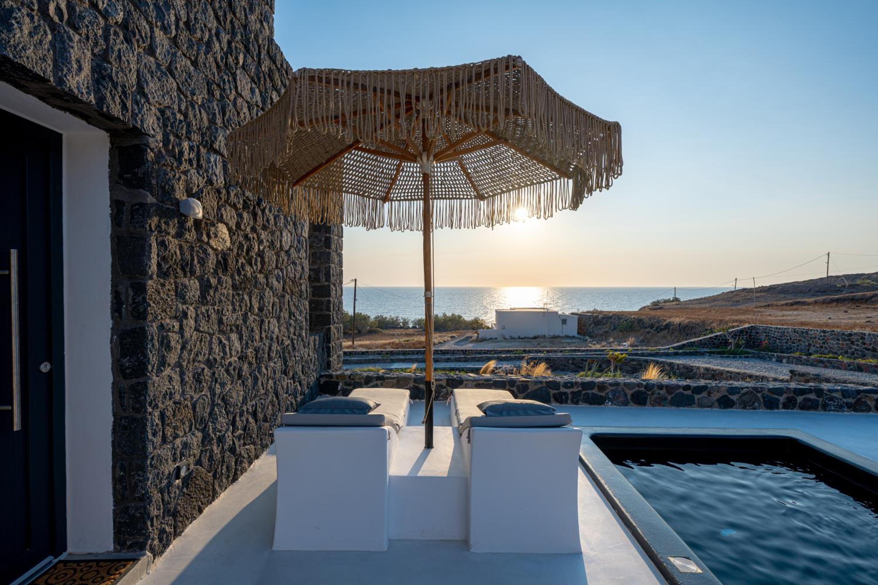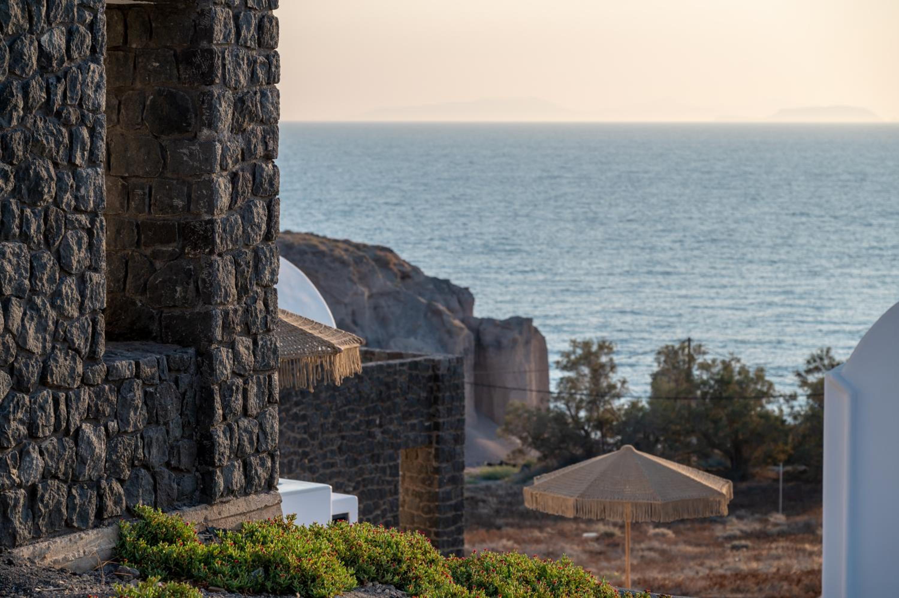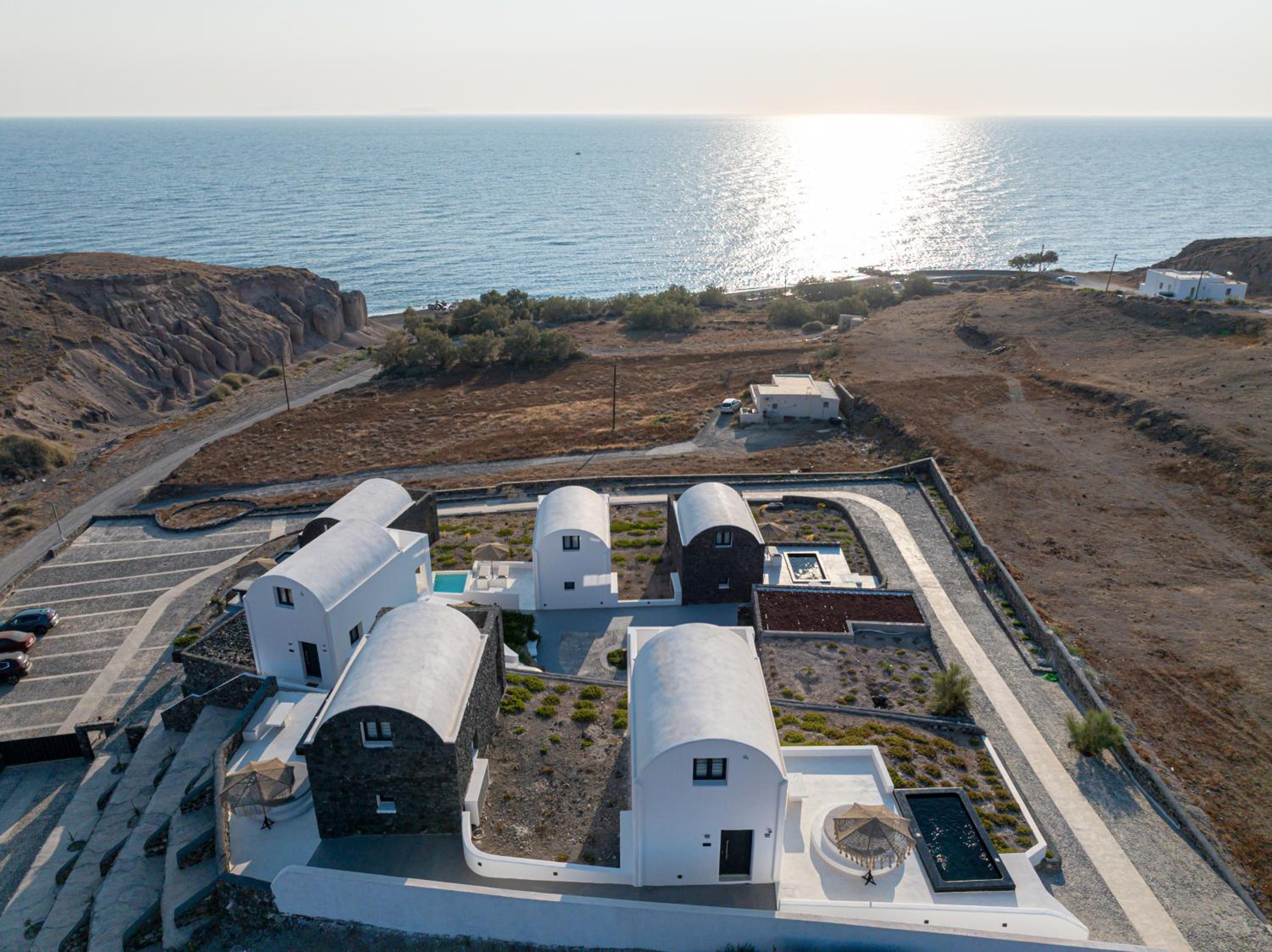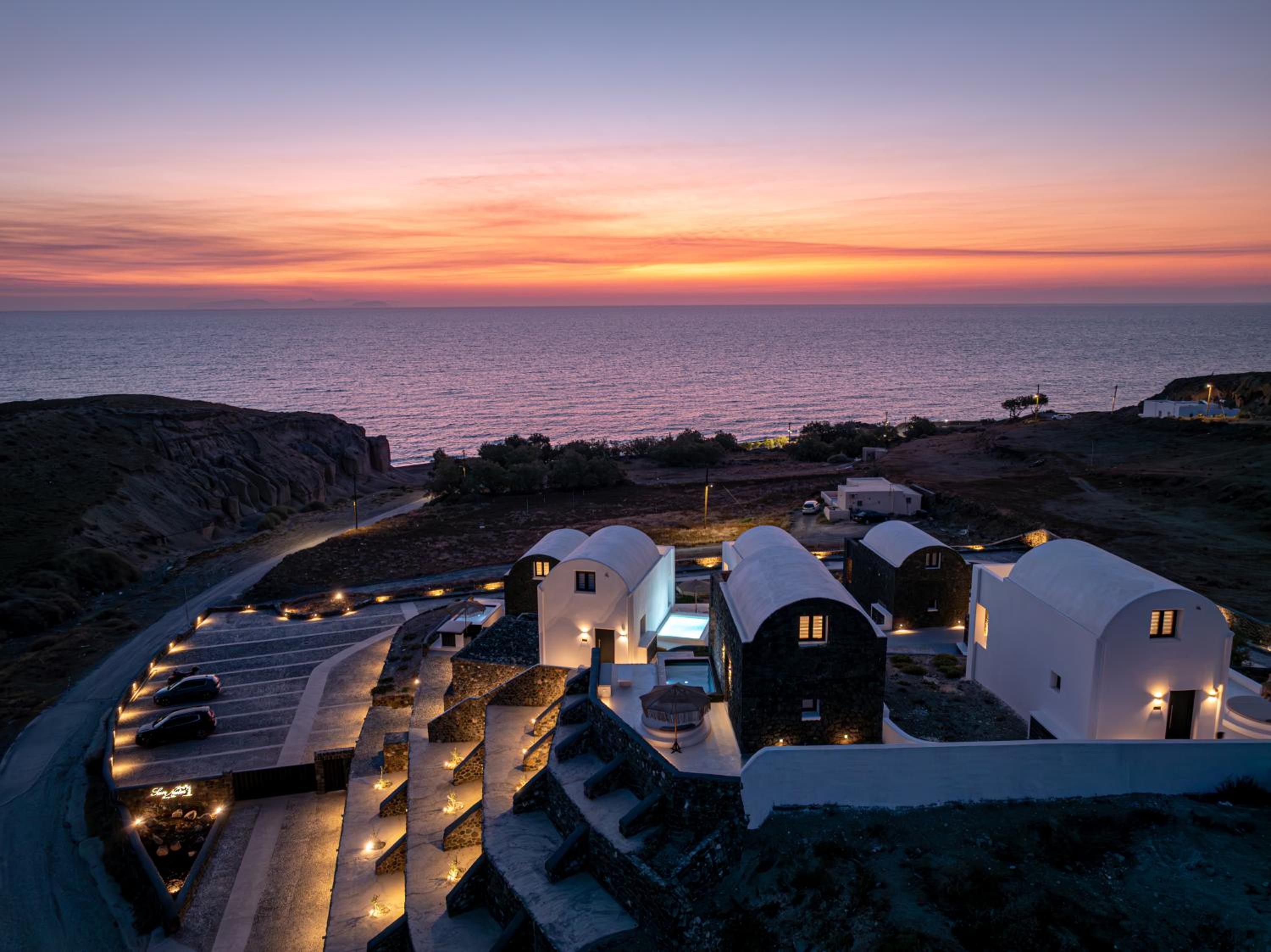 The accommodation is located on the quiet East Coast of Santorini, away from the cruise ship crowds, offering only the soothing sound of the sea at night.