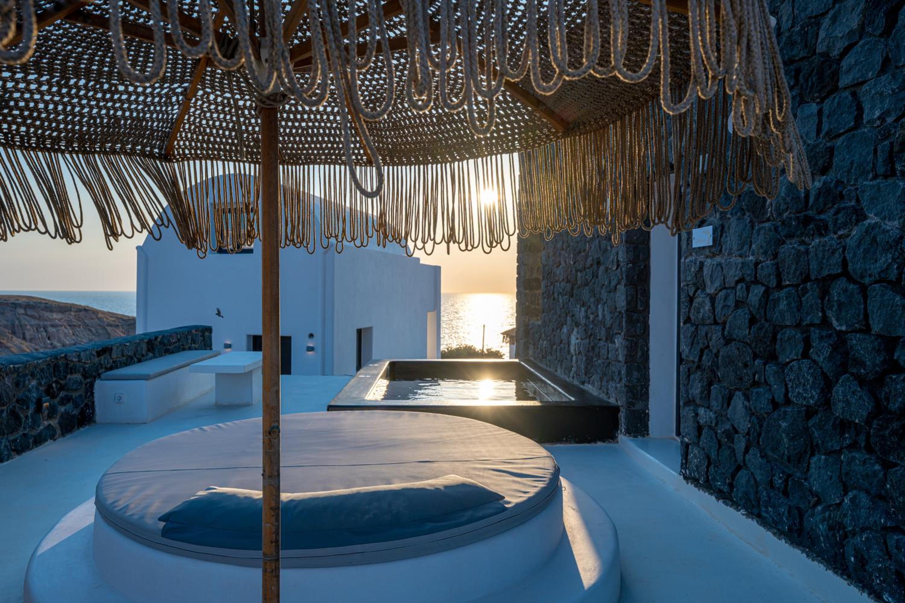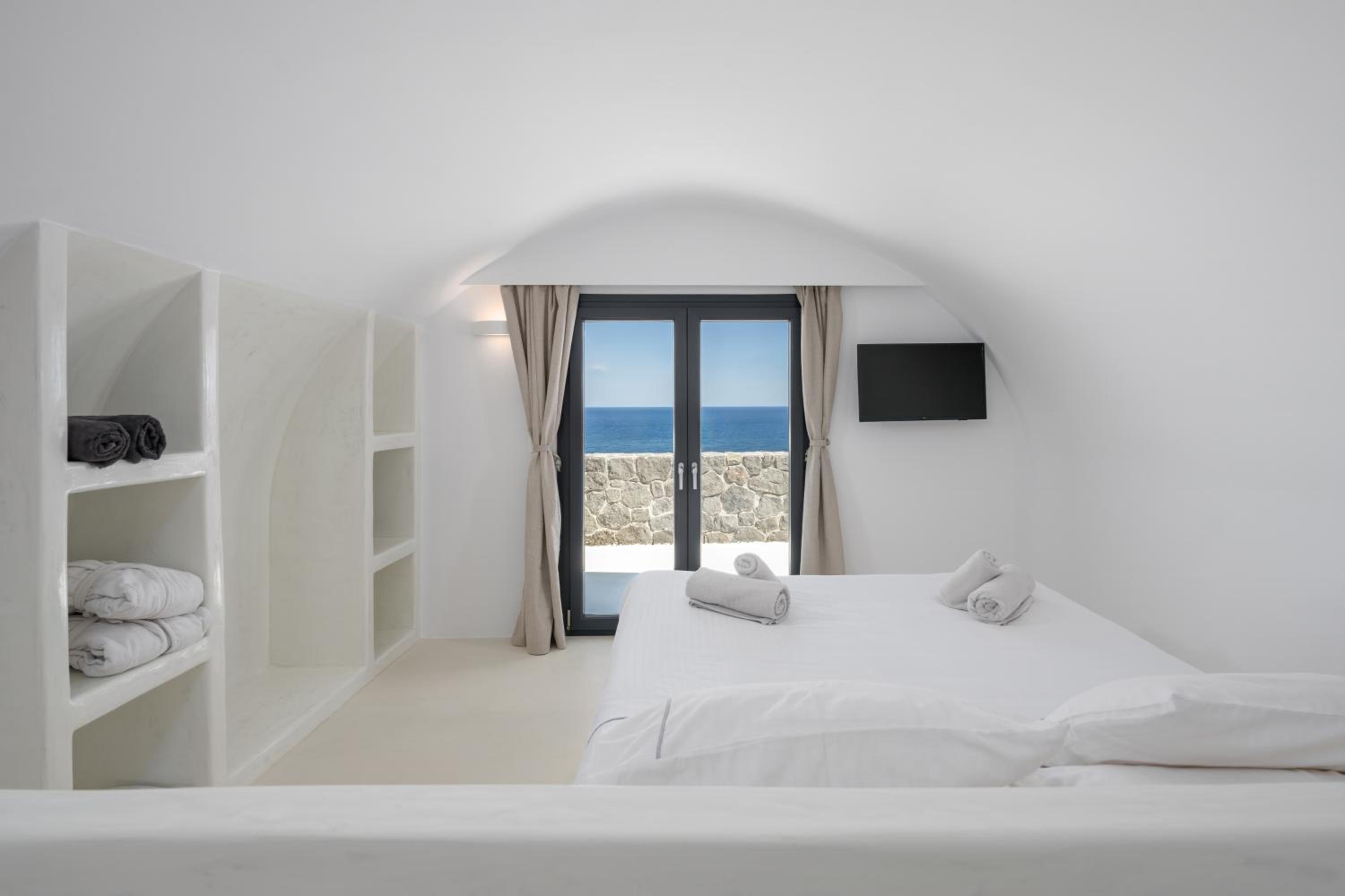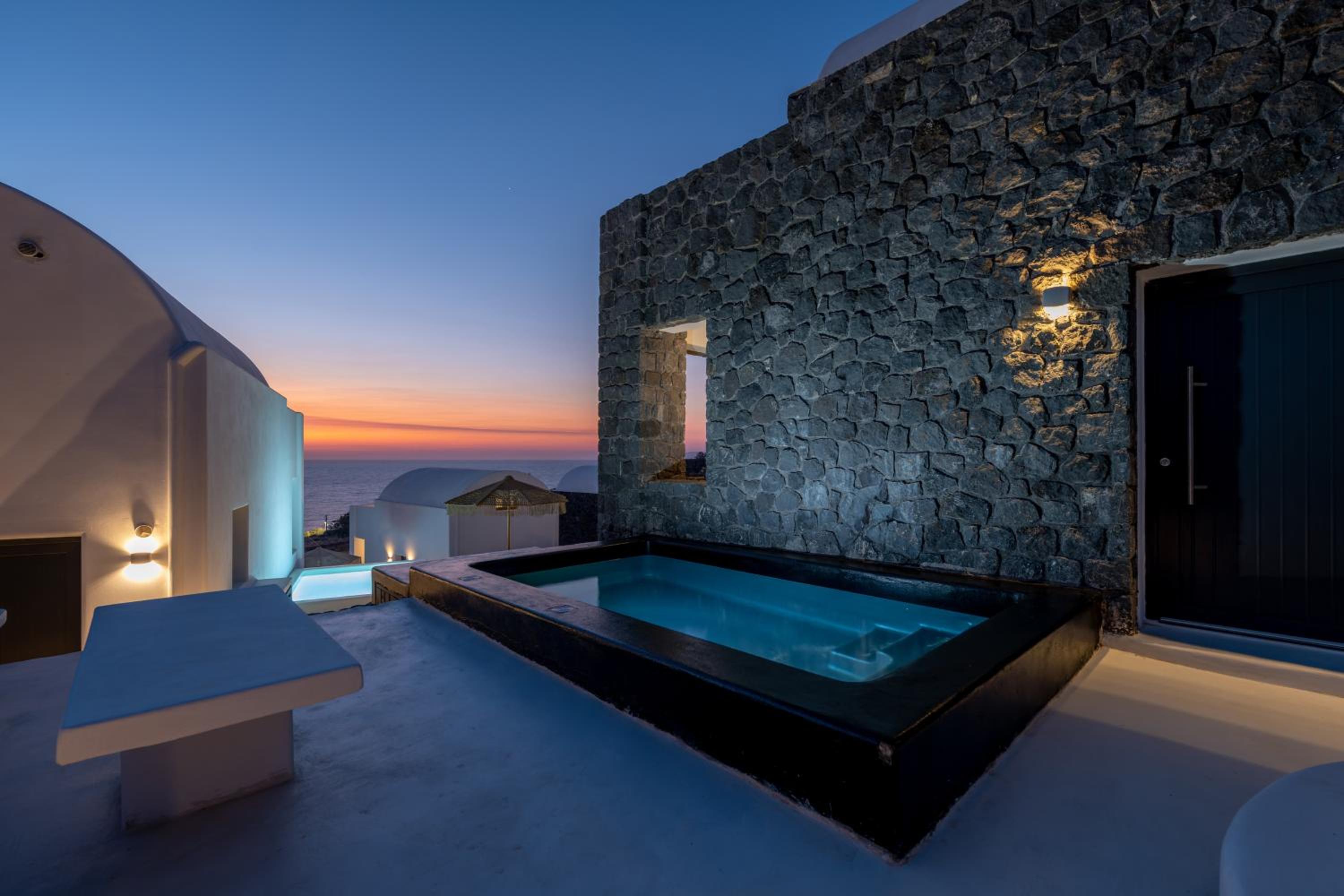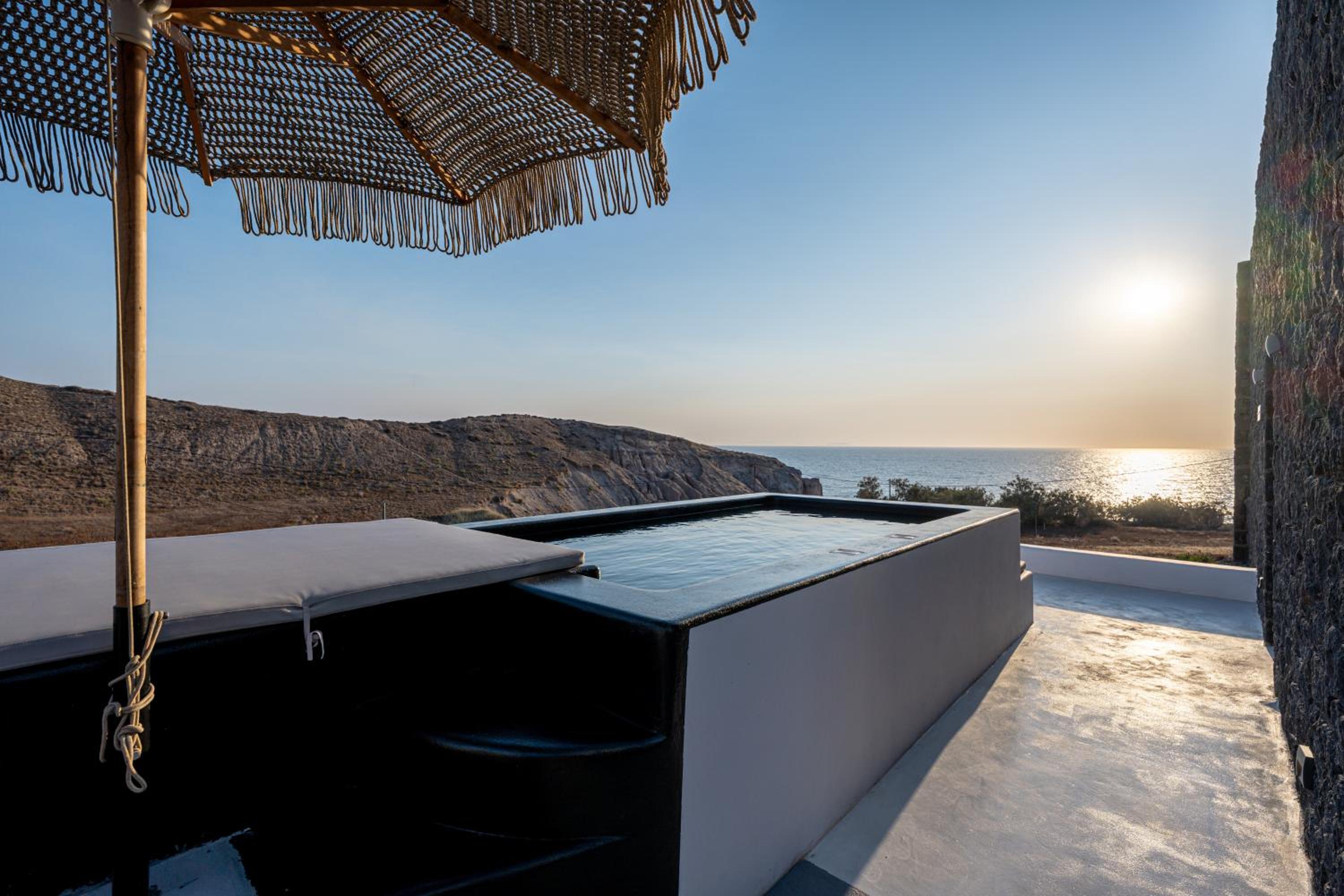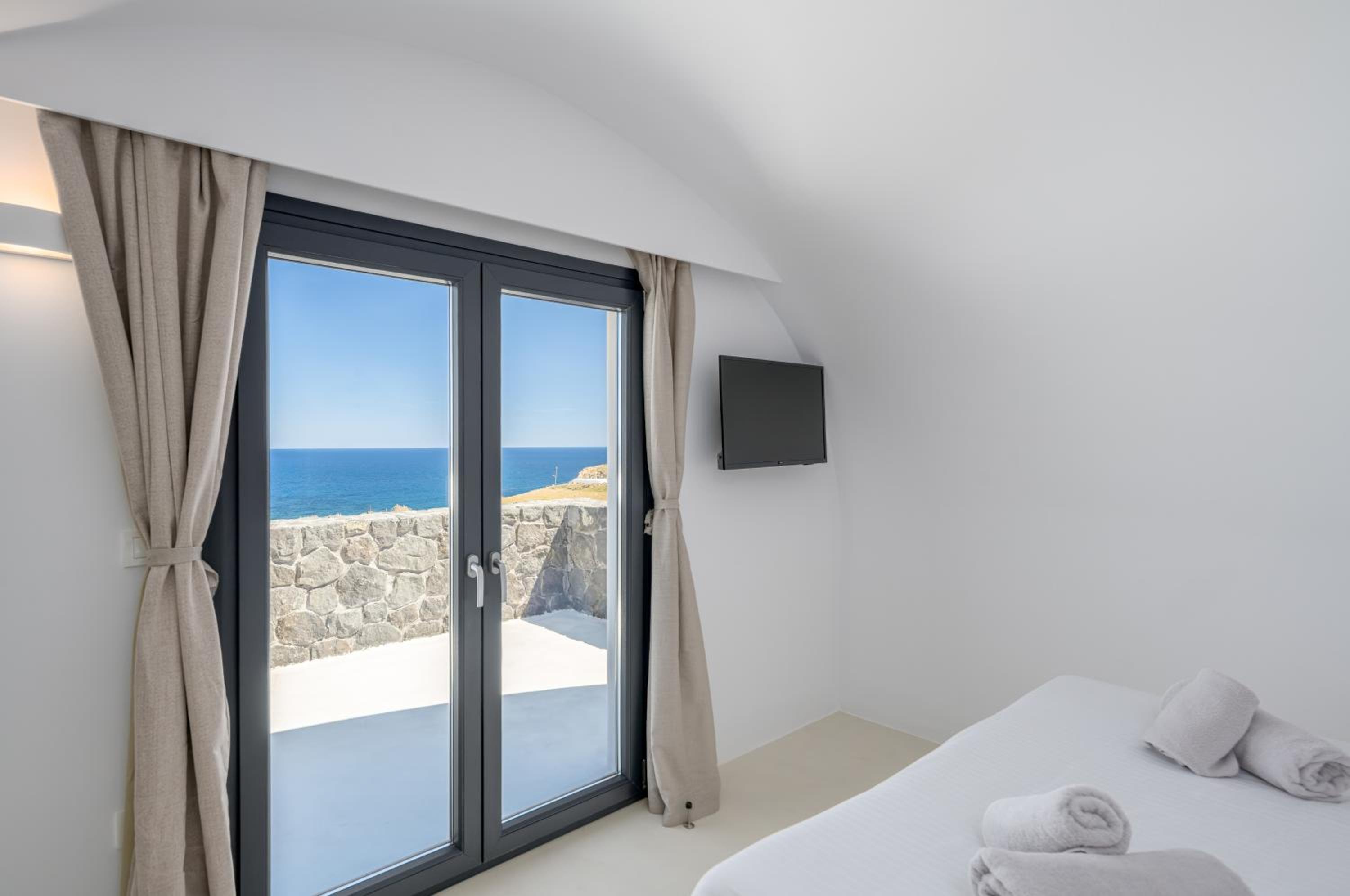 The location was fantastic – peaceful and serene, perfectly situated between Oia and Fira. The view of the sea, both at sunrise and sunset, was simply breathtaking. At night, we could hear the sound of the waves, creating a truly relaxing atmosphere.