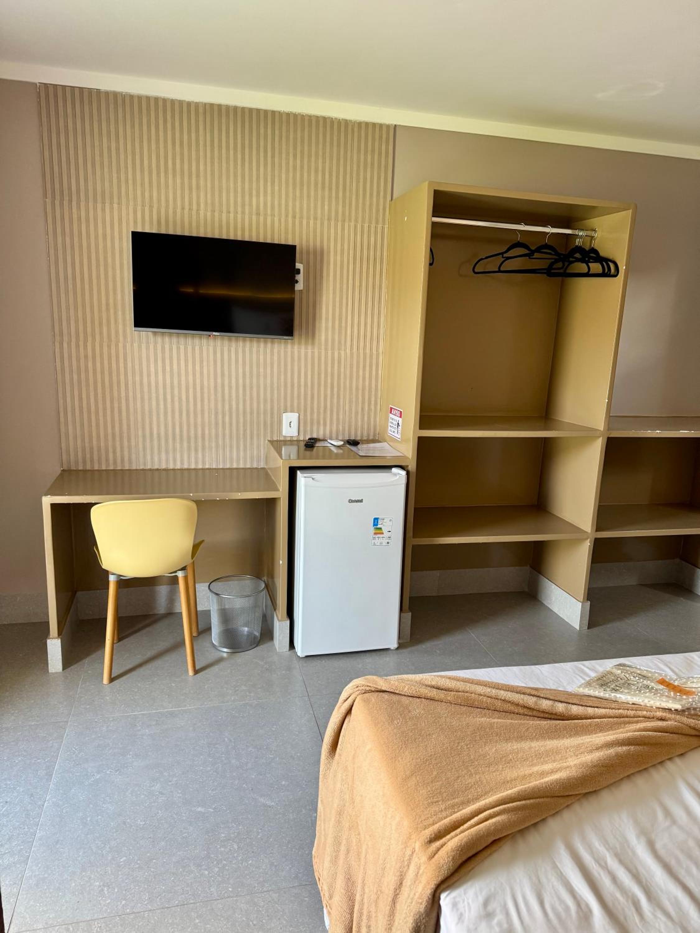 A localização. É bom para quem está de carro. Não tem um restaurante perto. Da para ouvir tudo no quarto do lado e já tem limpeza de quartos 6:30 da matina.