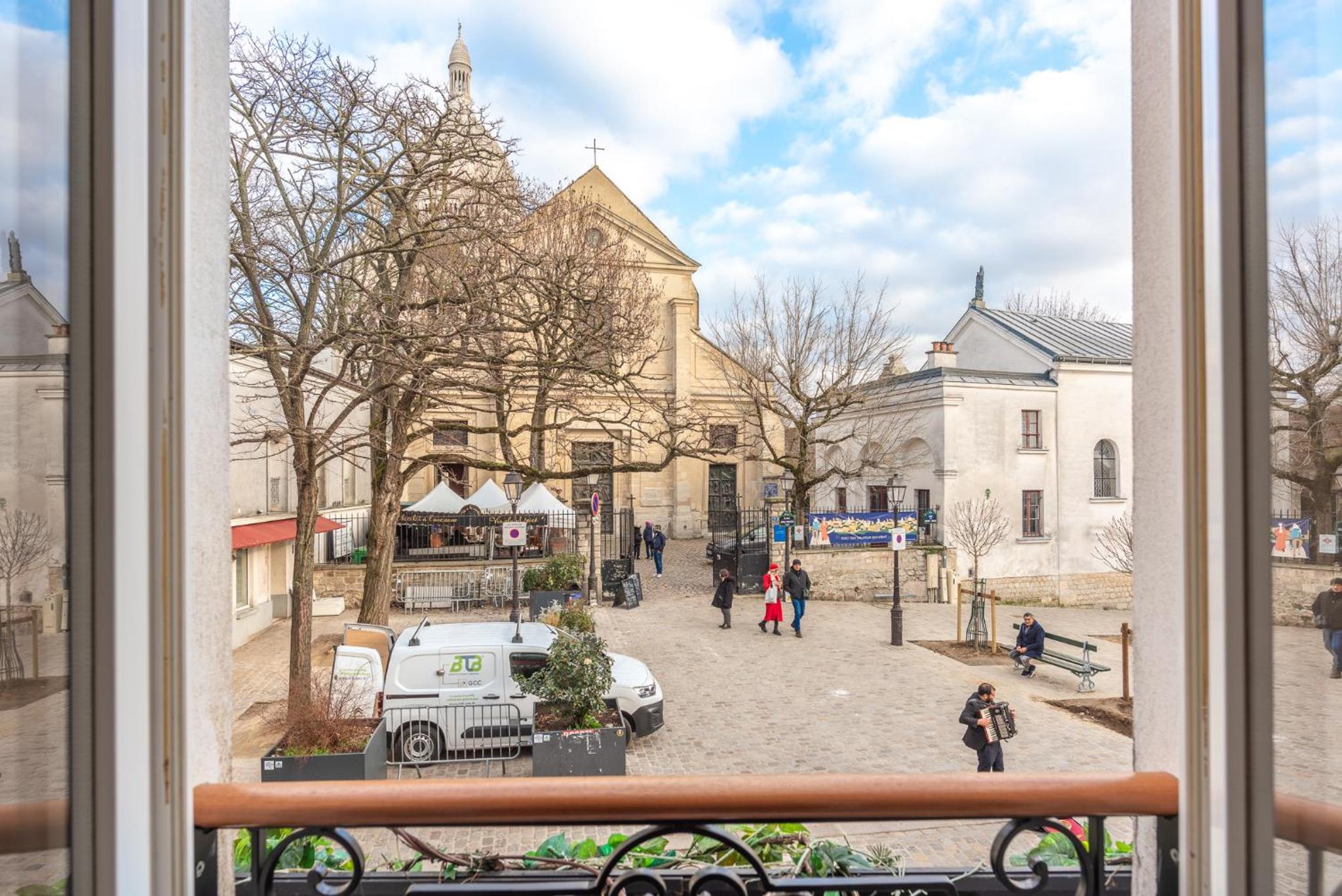 L'emplacement est exceptionnel, sur la Place du Tertre avec pleins de Restaurants et à 1 min à pied du Sacré-Cœur.