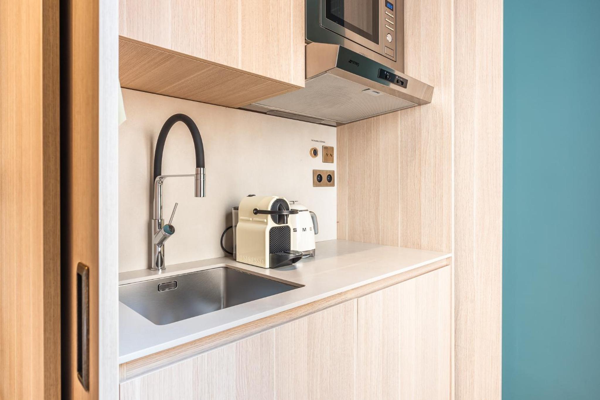 Indulge in our air-conditioned studios and apartments, thoughtfully renovated to provide comfort and style. Each unit features a wardrobe, a coffee machine, a flat-screen TV, and complimentary WiFi to ensure a pleasurable stay.