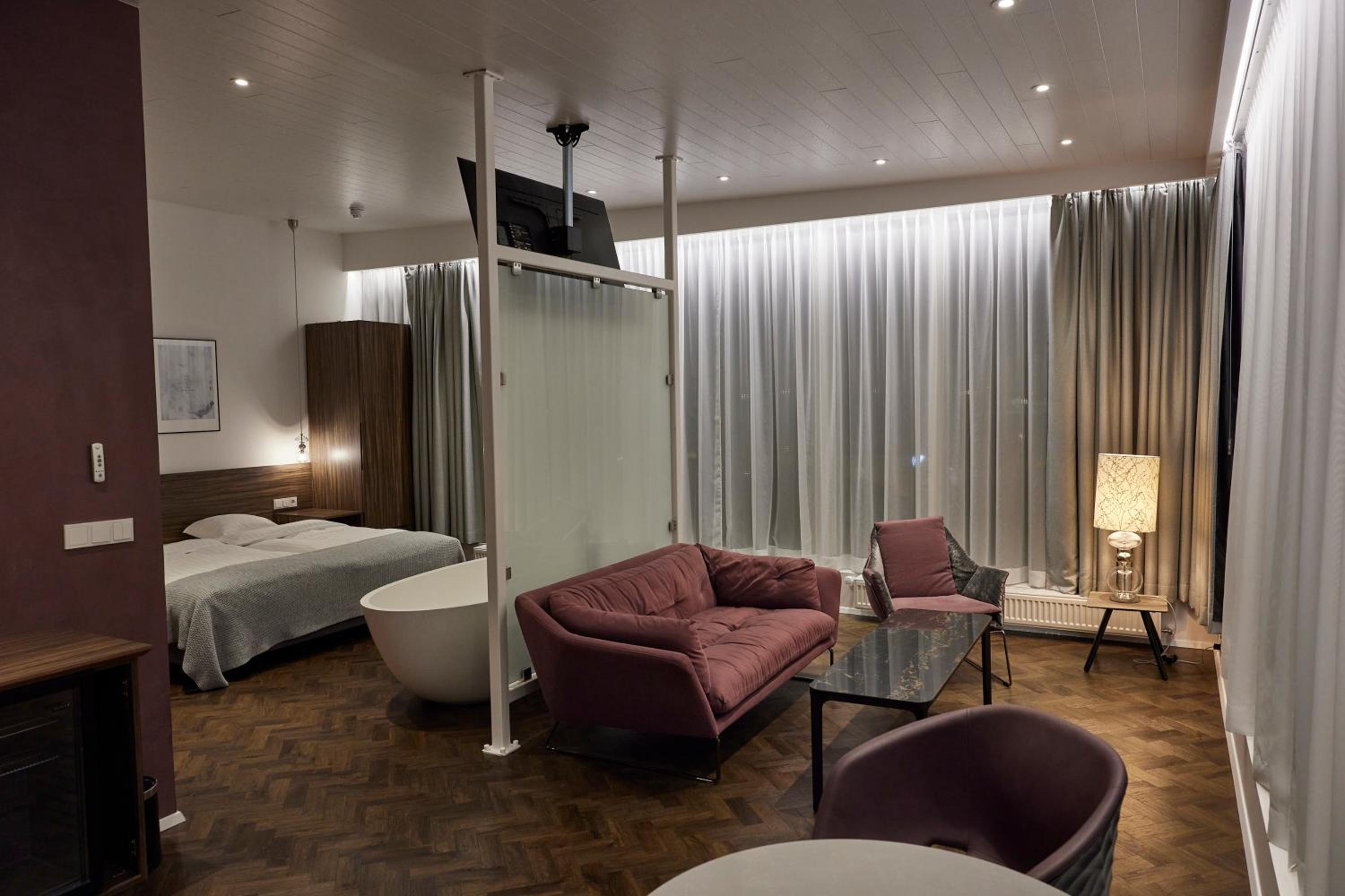 Pöntuðum hjónaherbergi en rúmið var tvískipt og á hjólum þannig það rann stöðugt í sundur. Mjög óþægilegt. Kvörtuðum en fengum þá lím til að líma fæturna saman. Virkaði ekki. Vorum mjög ósátt með rúmið en allt annað frábært.
