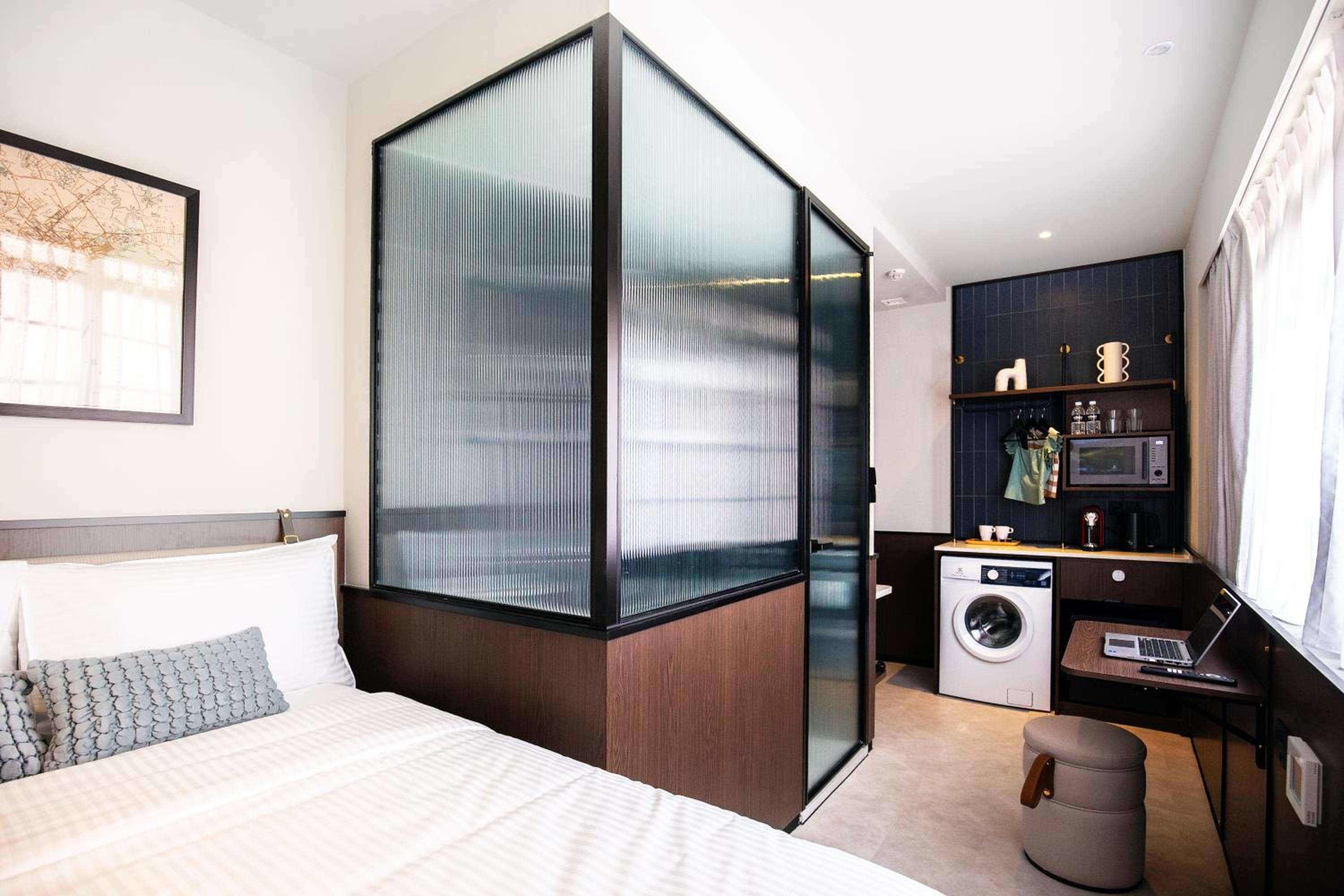房間很乾淨,雙層窗戶隔音很好。 有洗衣機很方便